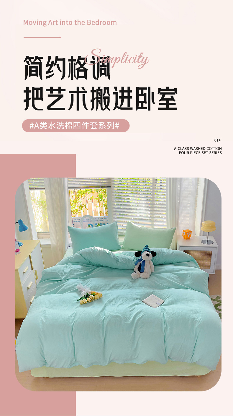 当前位置: 91家纺网 > 商品网购 > 床品套件 > 四件套 > 水洗棉四件套 > 艾特你 2024新款A类ins风水洗棉四件套纯色四件套混搭素色四件套 混搭-水绿藻绿