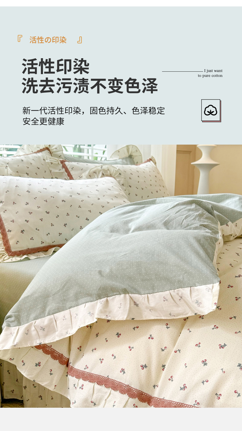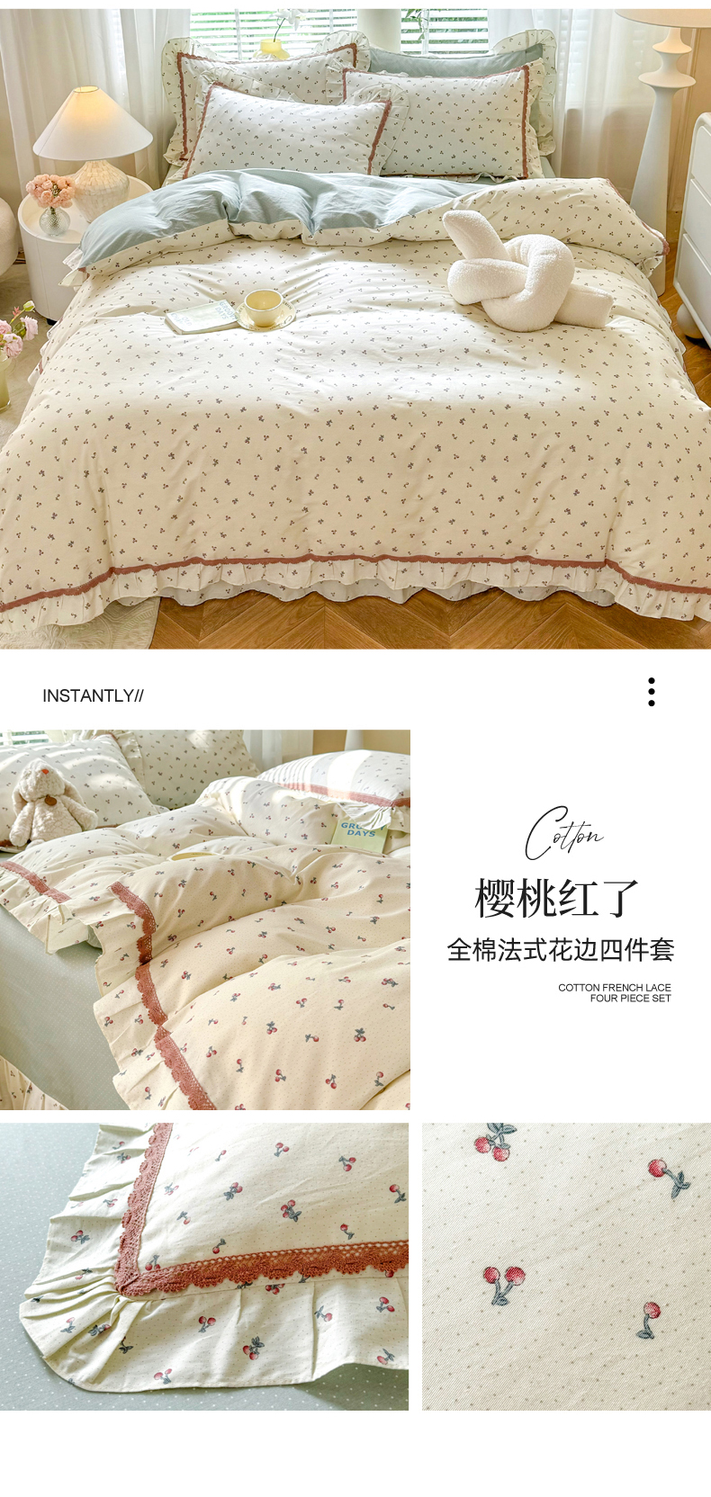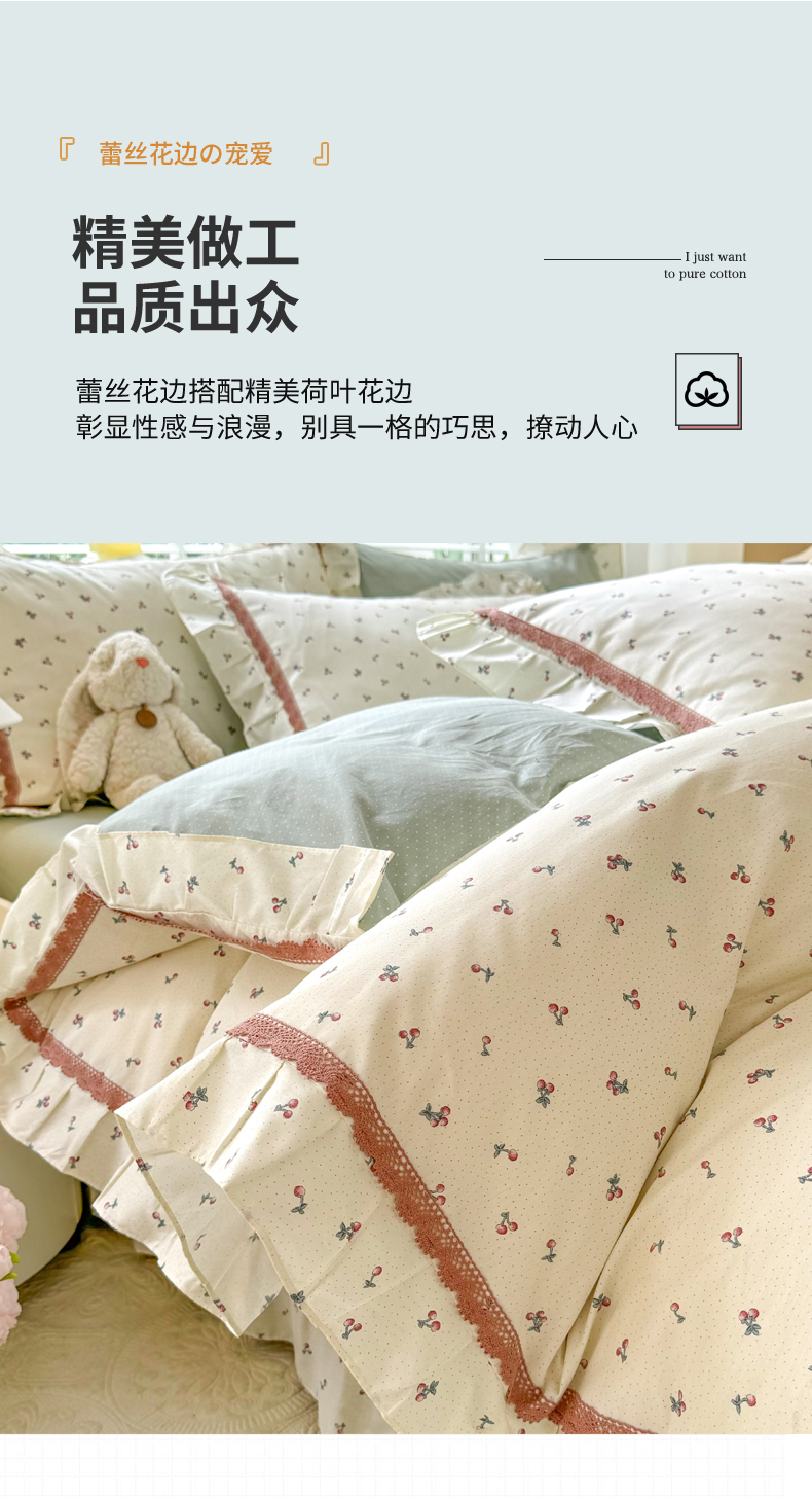 商品名称:艾唯希家纺 2024新款全棉法式花边四件套 樱桃红了