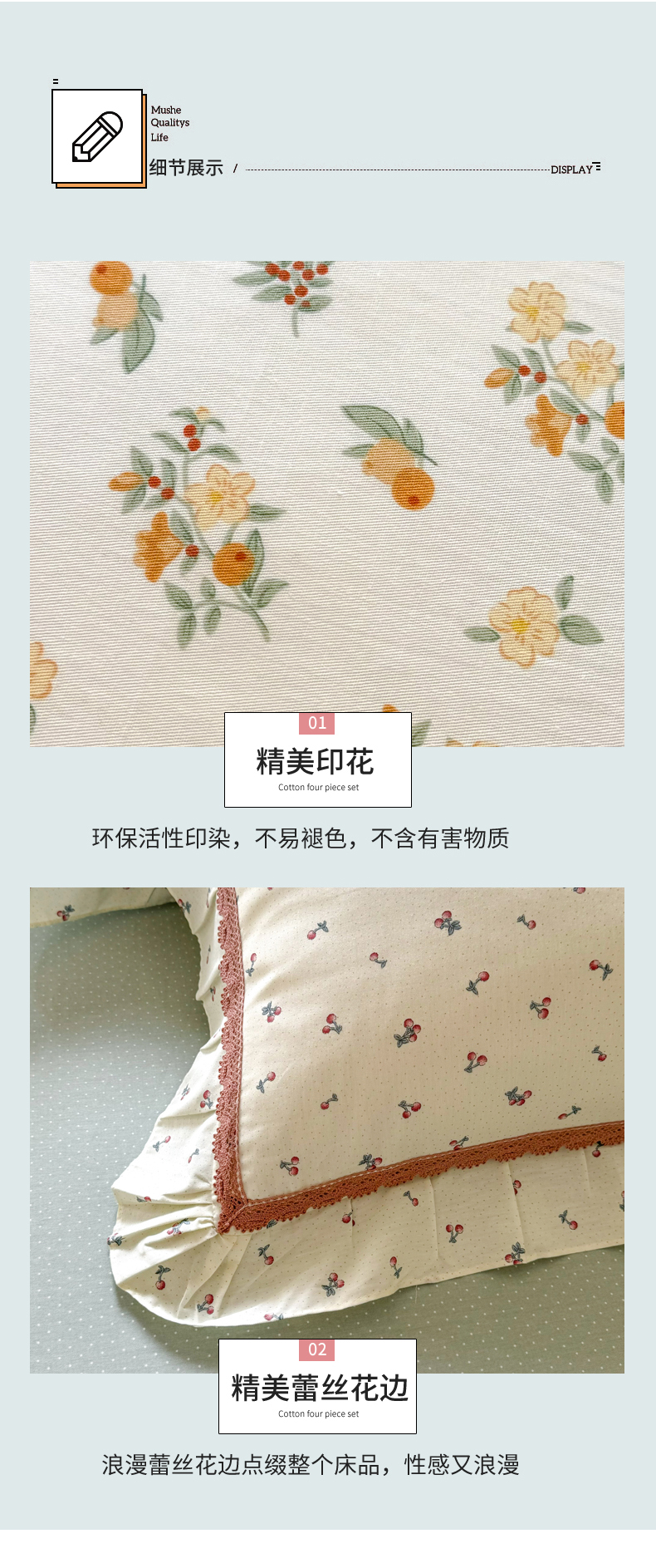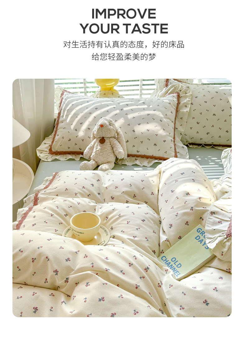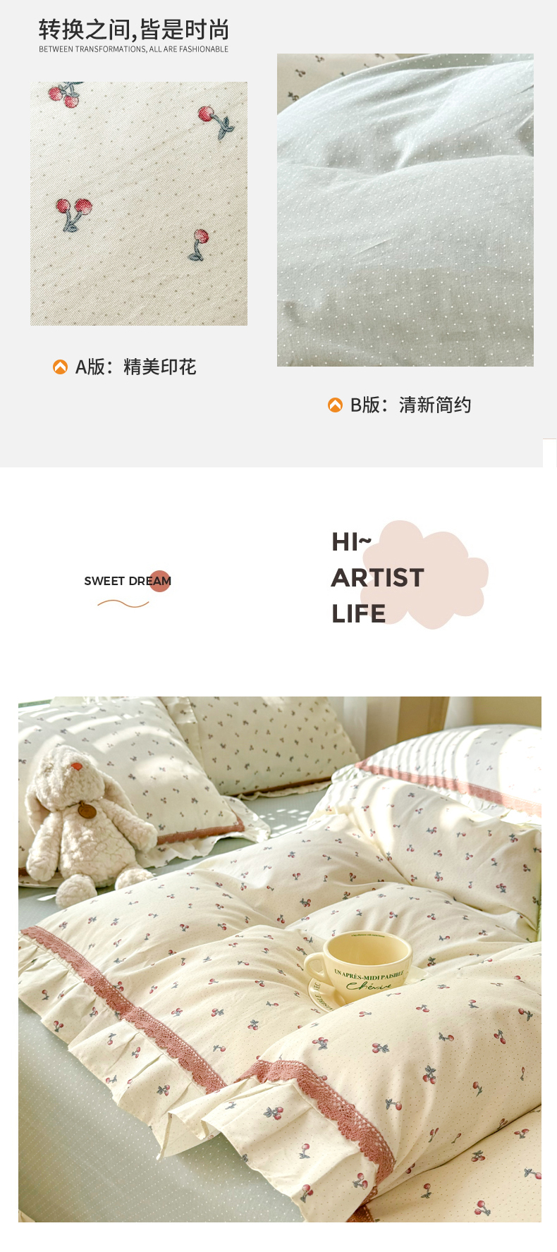 商品名称:艾唯希家纺 2024新款全棉法式花边四件套 樱桃红了