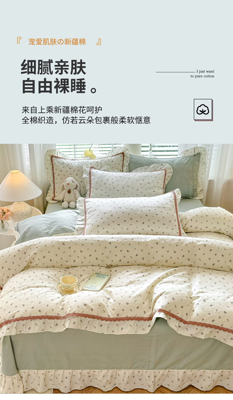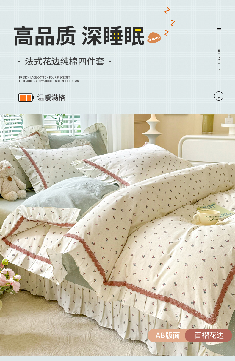 (总)艾唯希家纺 2025新款全棉双层花边四件套纯棉小碎花10个花型-花边系列,春意萌,恋之晴空,奶芙蓉-绿,奶芙蓉-粉,林间物语-绿,林间物语-紫,花冉,花艺漫漫,梳璃,雾里花