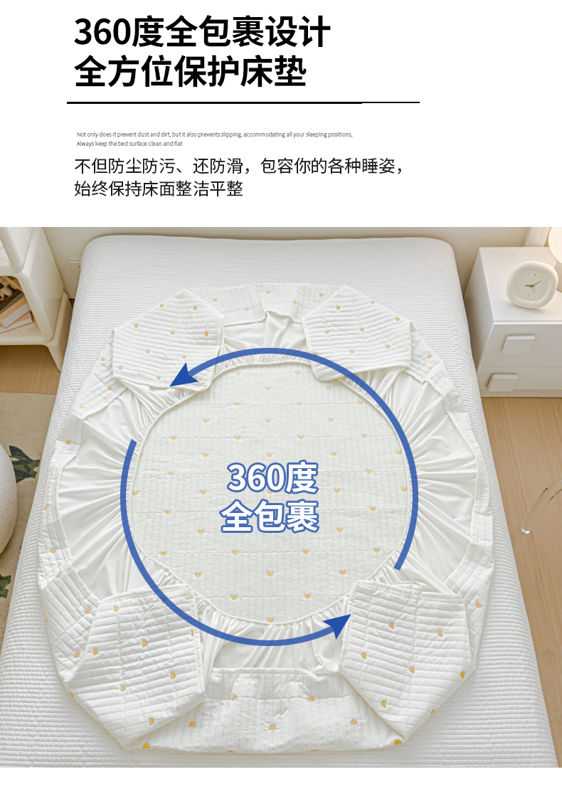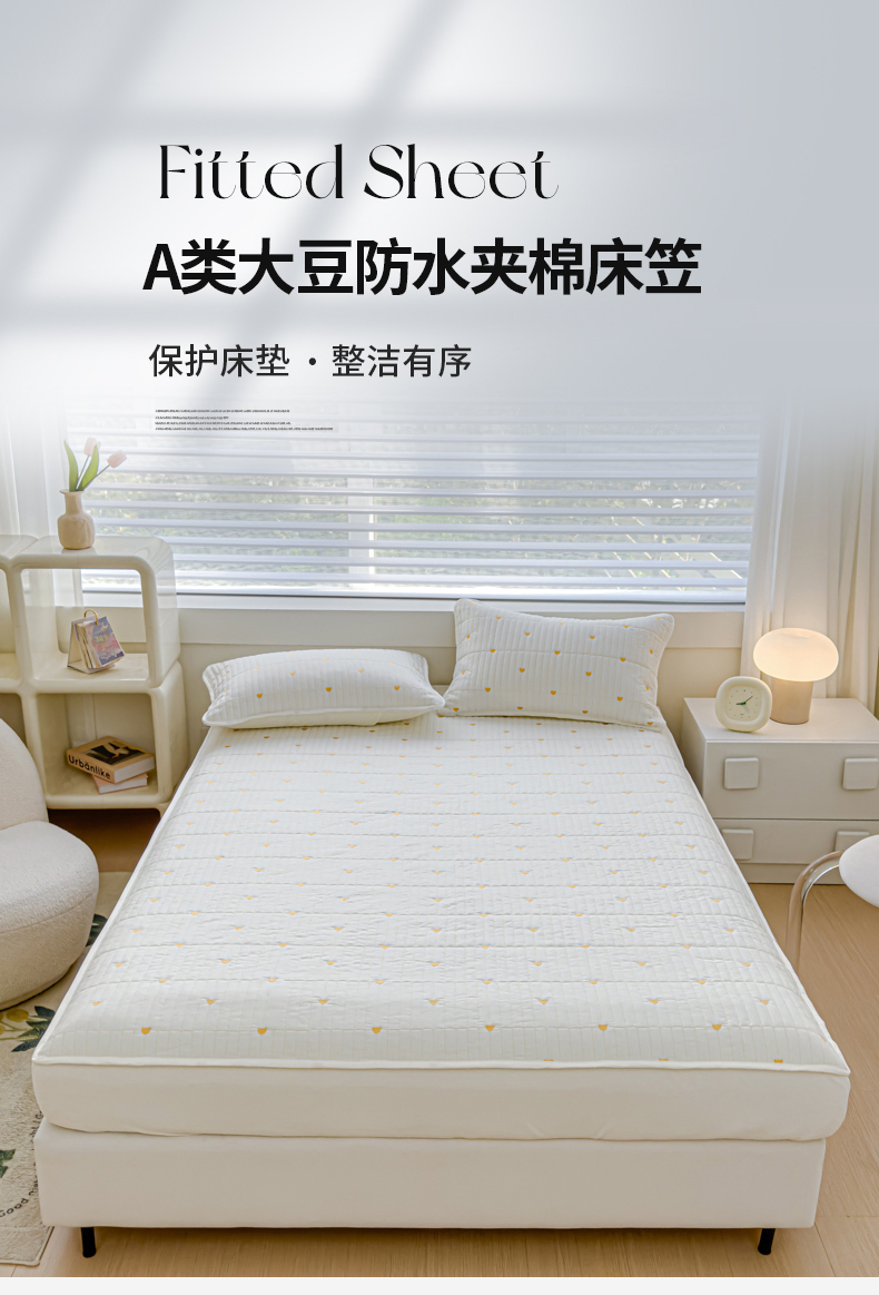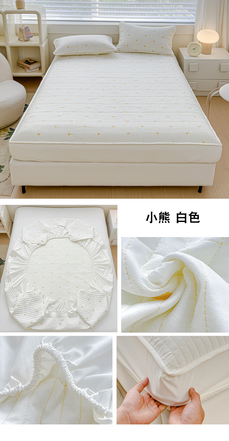 • 91家纺网 家纺一手货源 找家纺 金丝鸟家纺 2024新款2024新款A类磨毛大豆防水夹棉床笠-小熊 小熊 白色