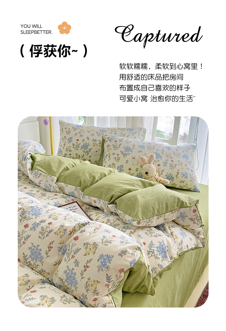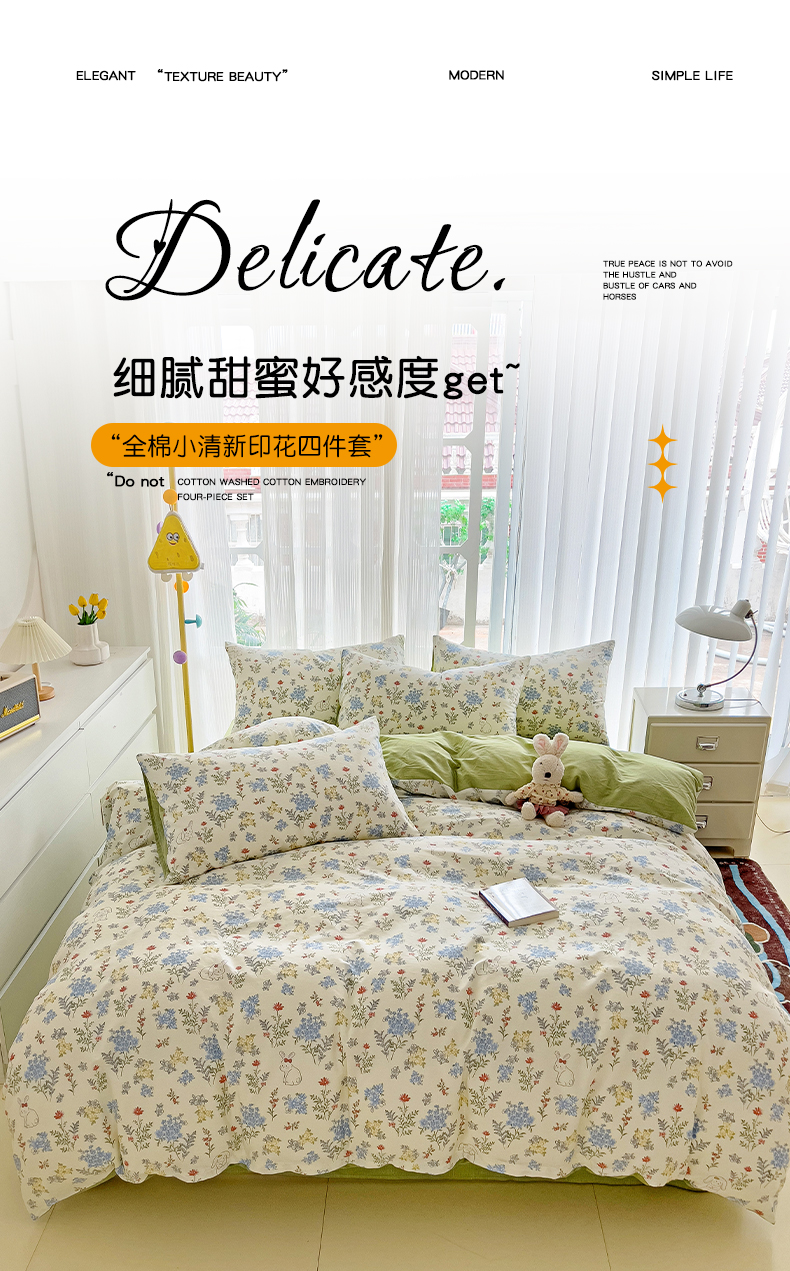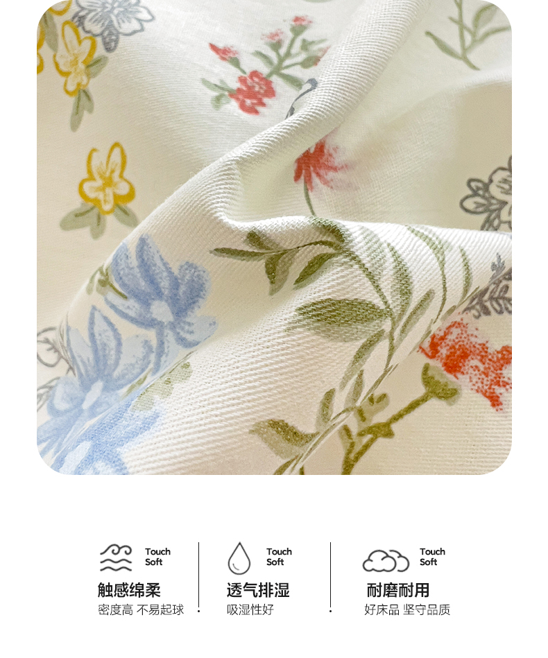 当前位置: 91家纺网 > 商品网购 > 床品套件 > 四件套 > 全棉普通四件套 > 优选良品 2025直播爆款全棉12868印花四件套纯棉学生三件套床笠 青春花朵