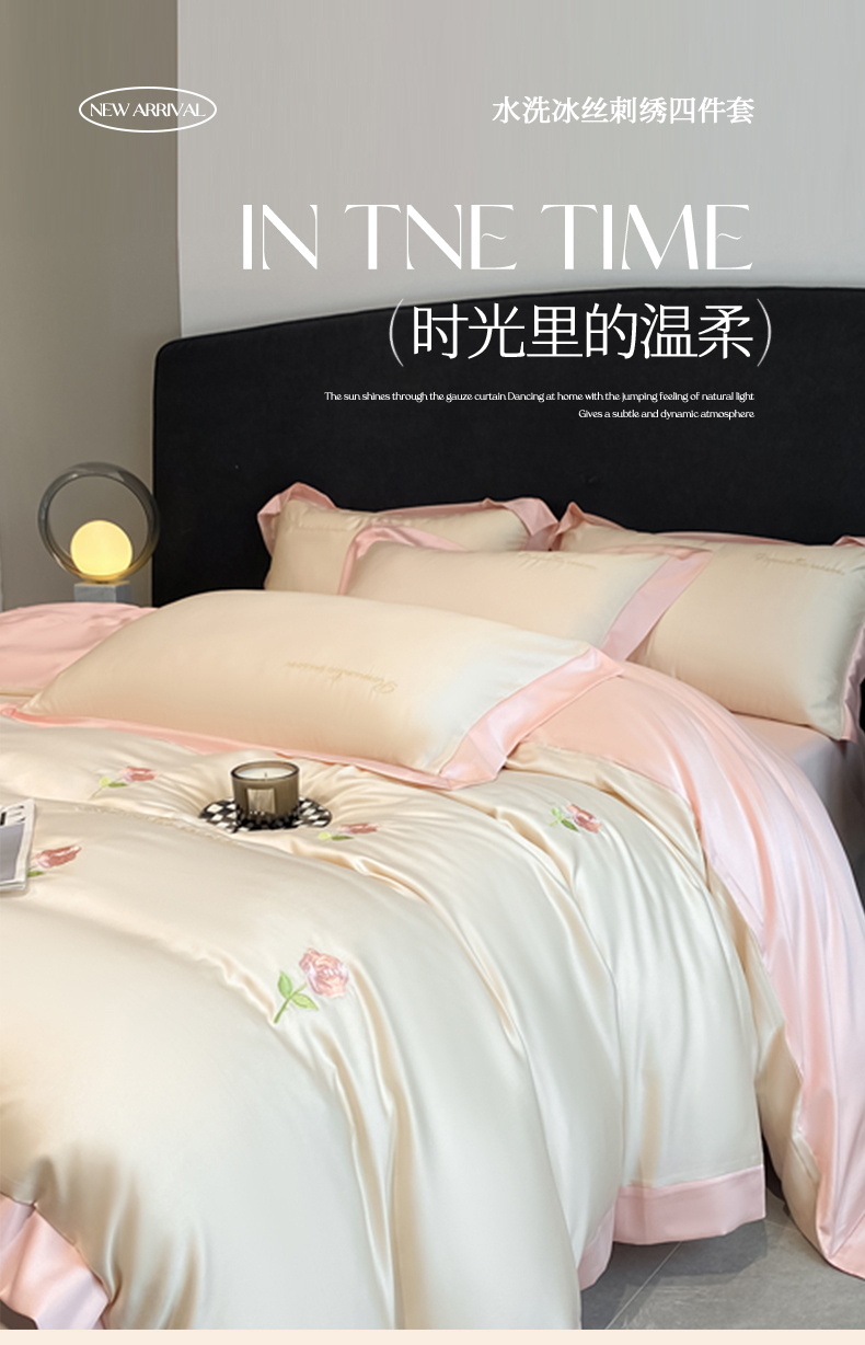 当前位置: 91家纺网 > 商品网购 > 床品套件 > 四件套 > 其它四件套 > 眷恋家纺 2024新款水洗冰丝刺绣四件套-花卉系列 手捧花-梧桐杏+奶油粉