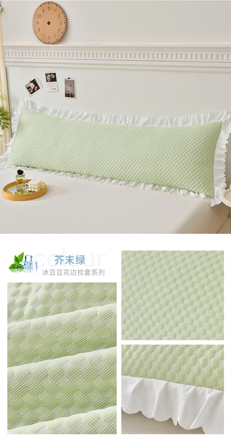 商品名称:艾兜坊 2024新款针织冰豆豆花边枕套 芥末绿