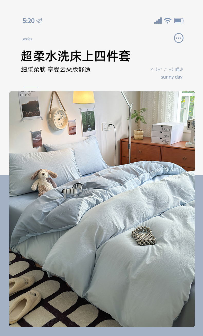 当前位置: 91家纺网 > 商品网购 > 床品套件 > 四件套 > 水洗棉四件套 > 沐芷 2024新款超柔105g纯色水洗棉四件套-柔雅系列 柔雅-冰蓝雾灰