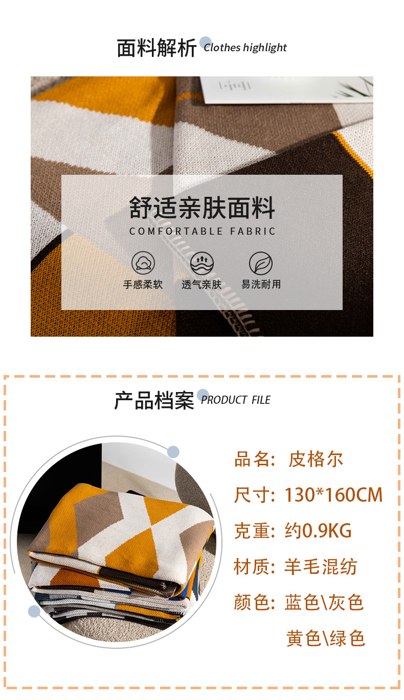 商品名称:暖绵绵家纺 2025新款羊毛混纺盖毯-皮格尔 皮格尔-黄色