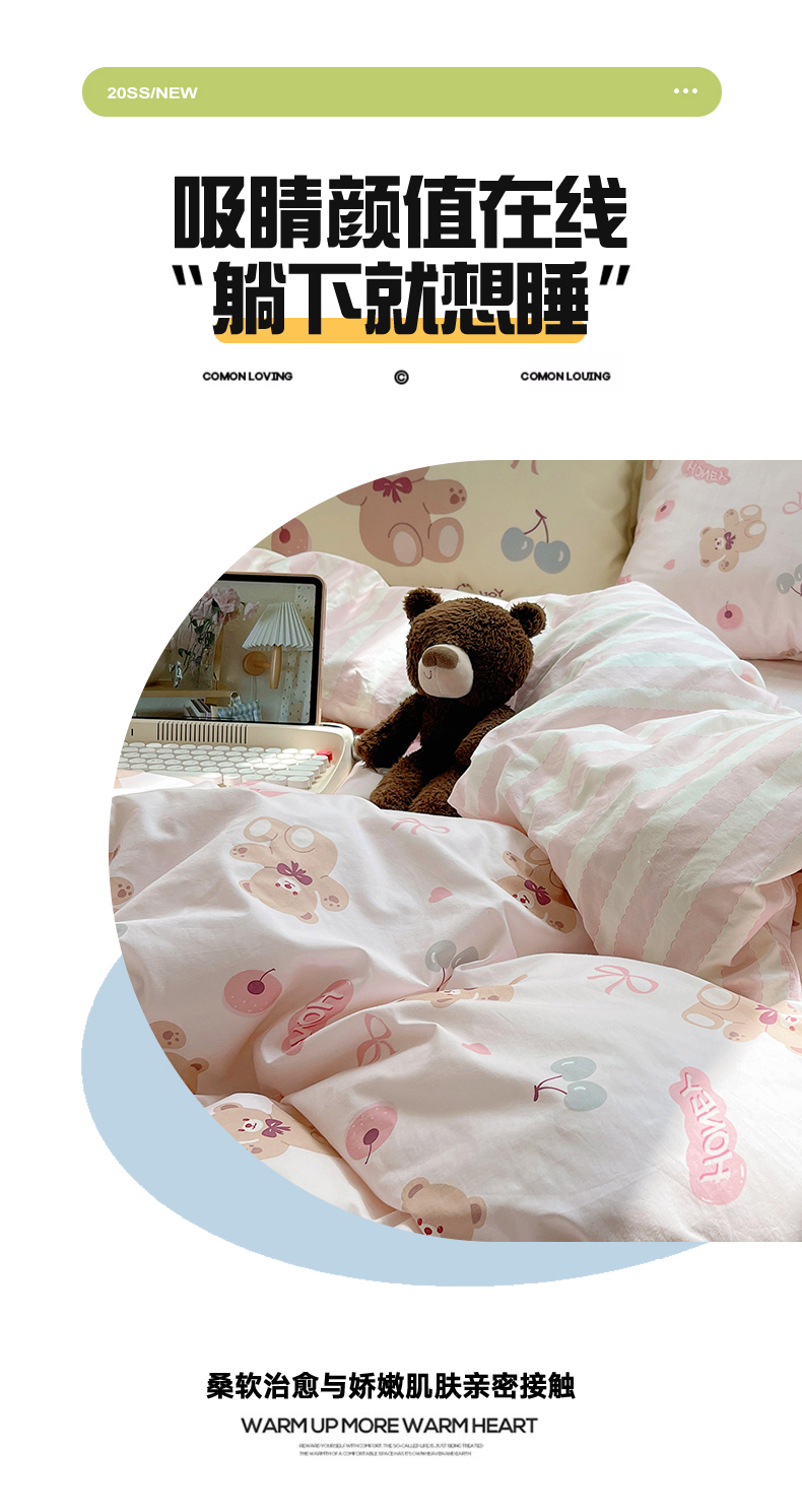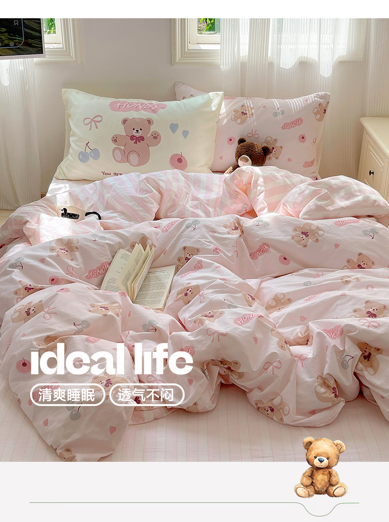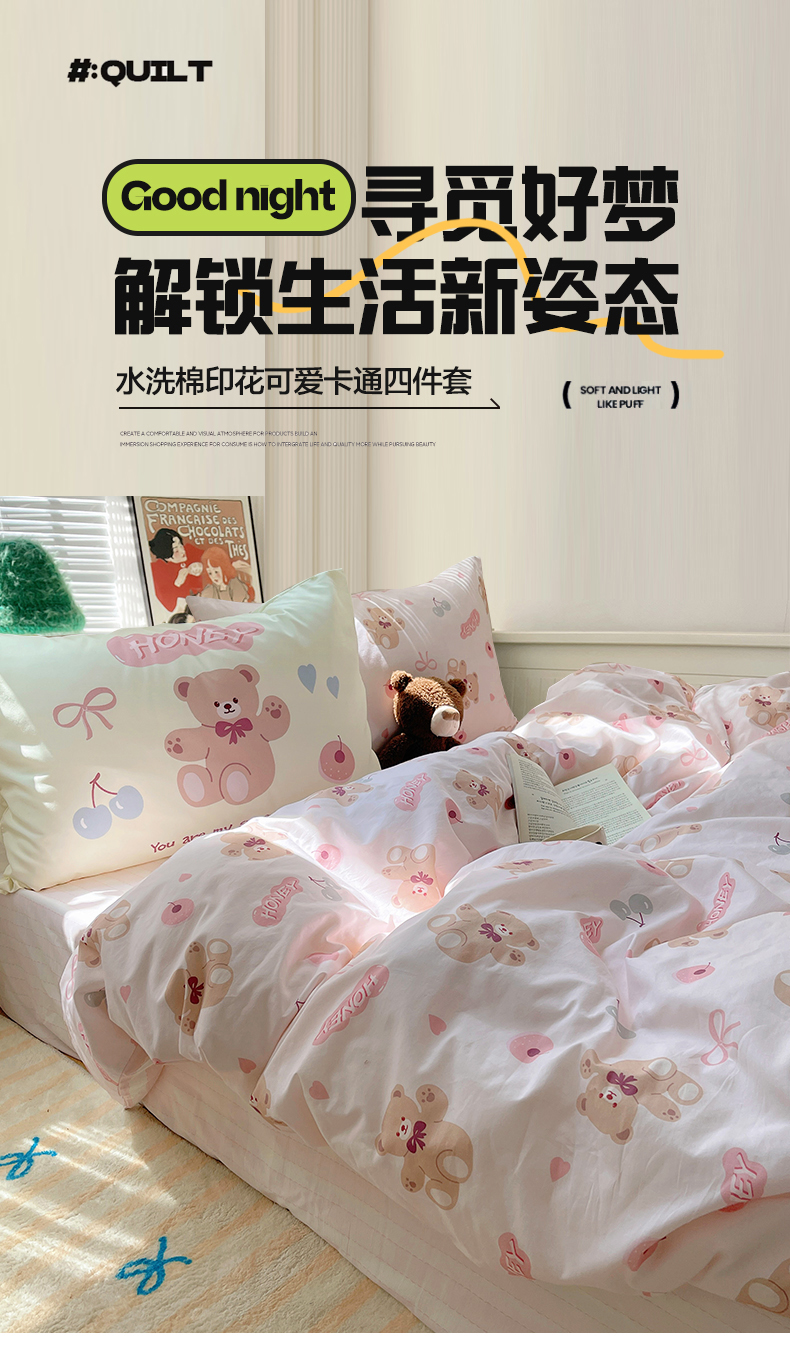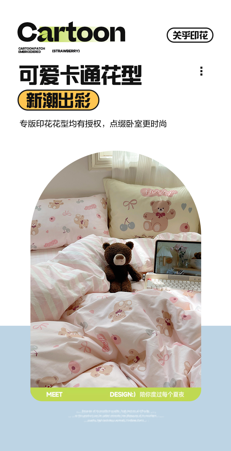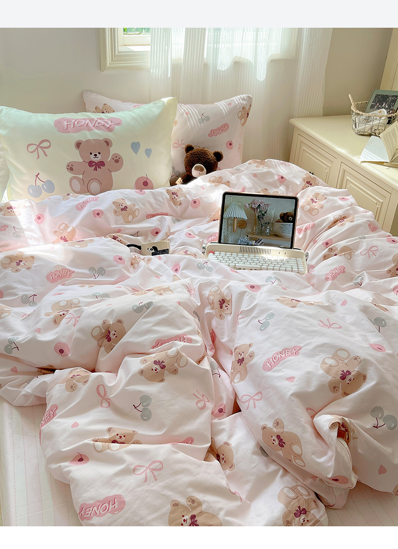 当前位置: 91家纺网 > 商品网购 > 床品套件 > 四件套 > 水洗棉四件套 > 轻奢坊 2024新款水洗棉可爱卡通四件套 可爱熊