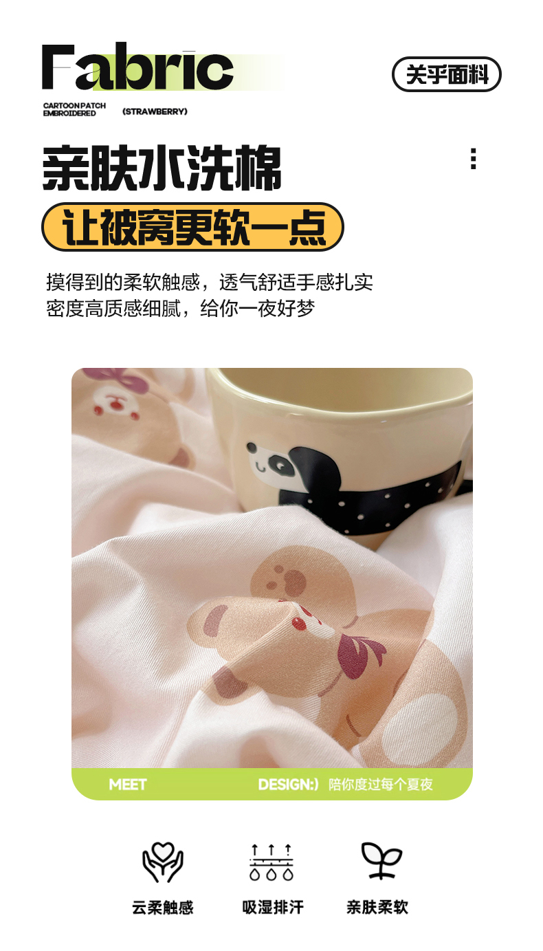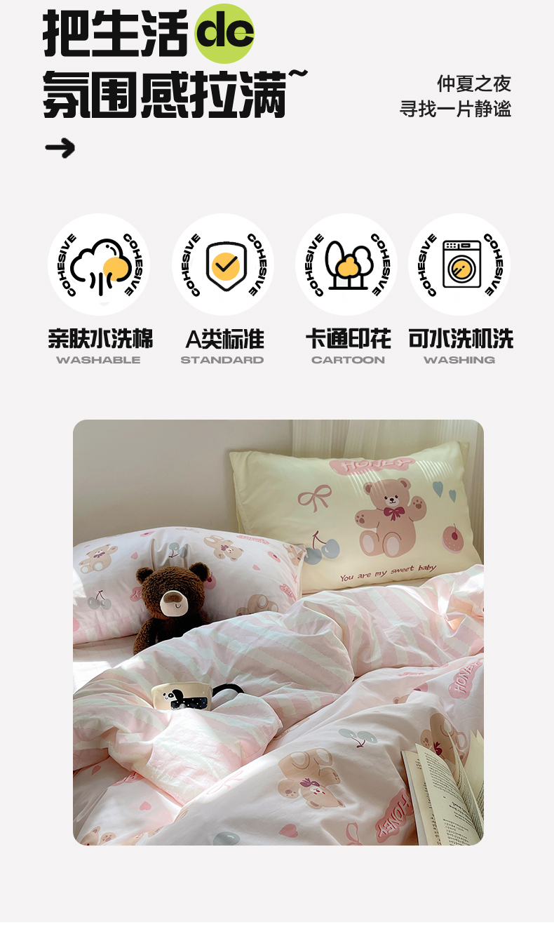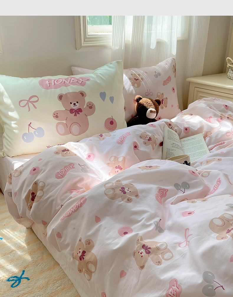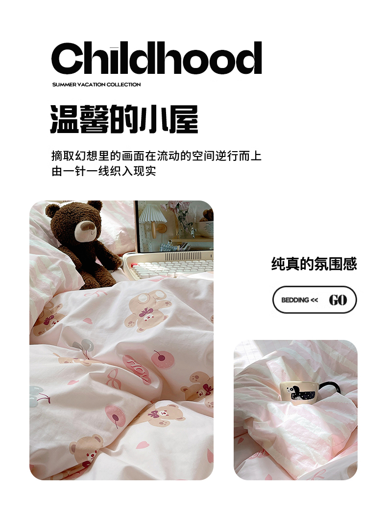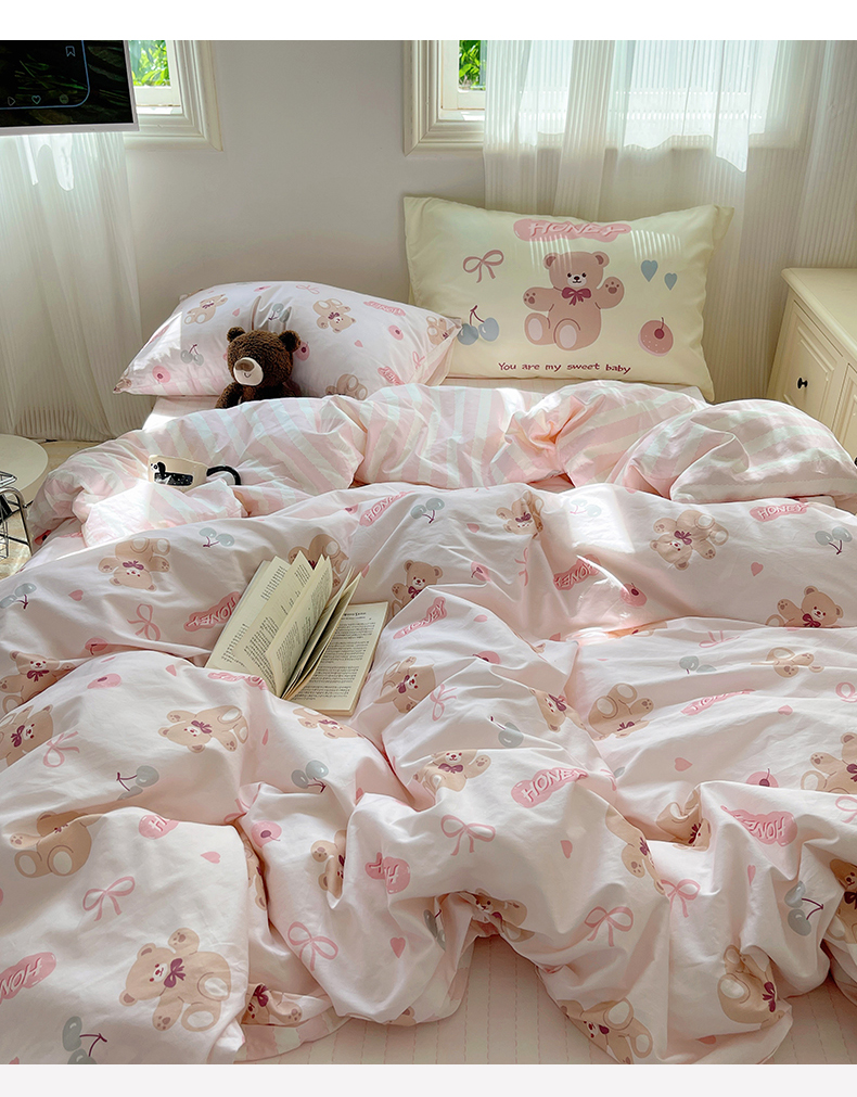 当前位置: 91家纺网 > 商品网购 > 床品套件 > 四件套 > 水洗棉四件套 > 轻奢坊 2024新款水洗棉可爱卡通四件套 可爱熊