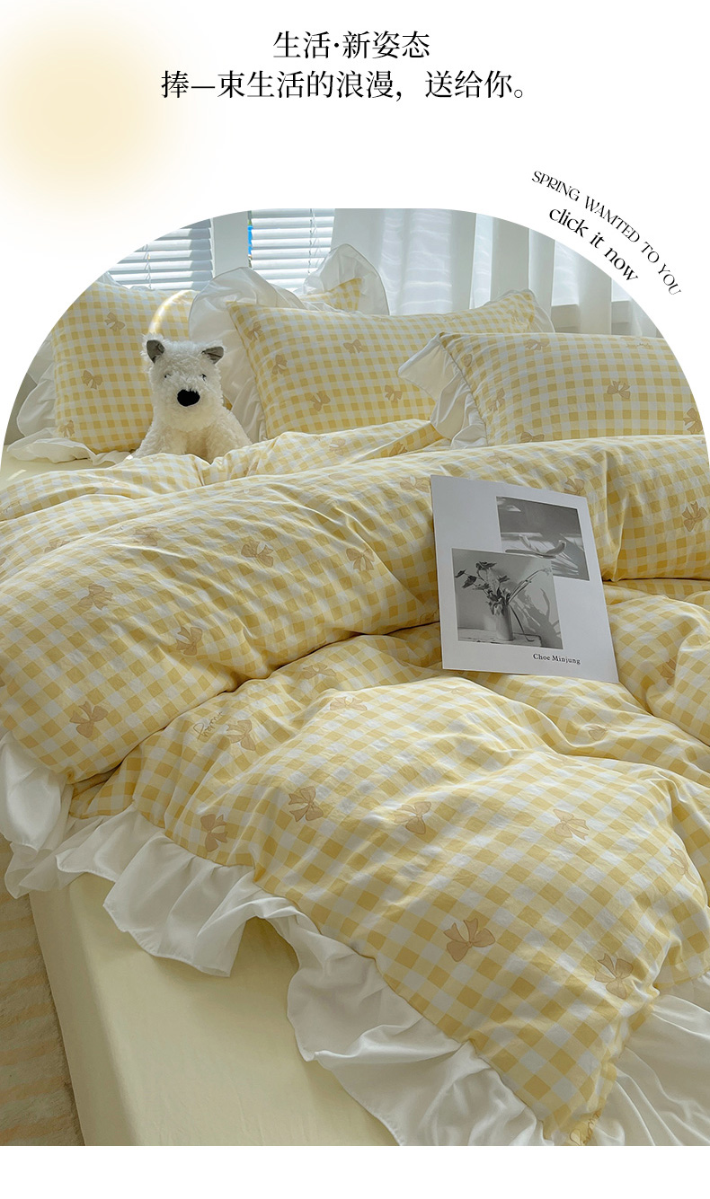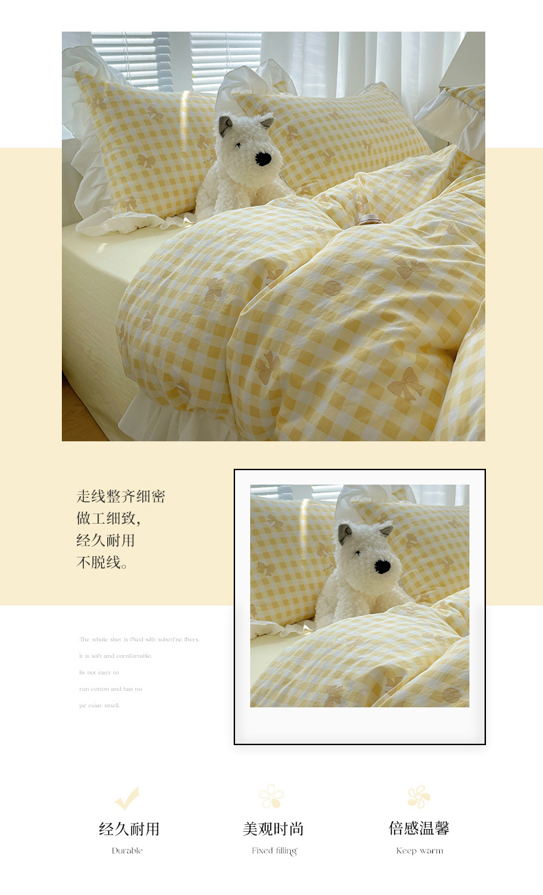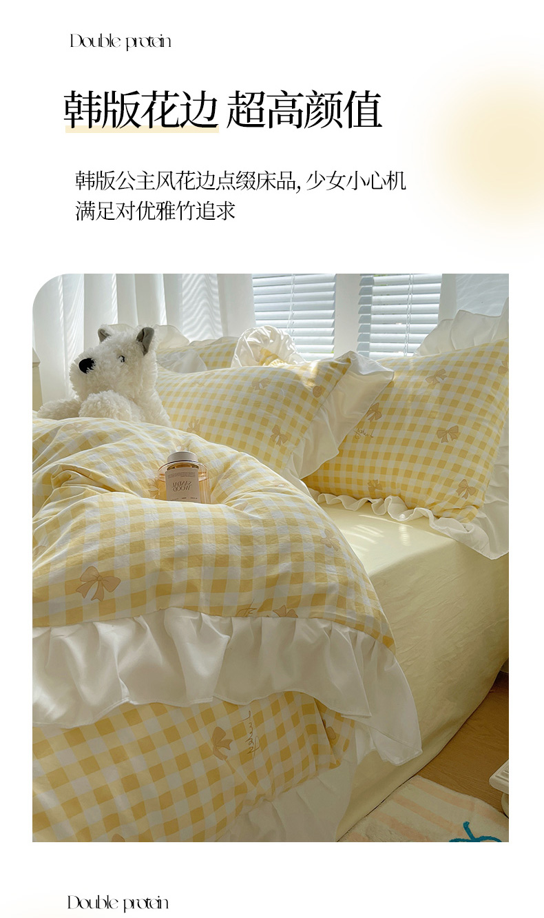 当前位置: 91家纺网 > 商品网购 > 床品套件 > 四件套 > 其它四件套 > 韩都家居 2024新款ins可爱风云朵棉韩系四件套【奈香】 【奈香】-蝴蝶结-黄黄