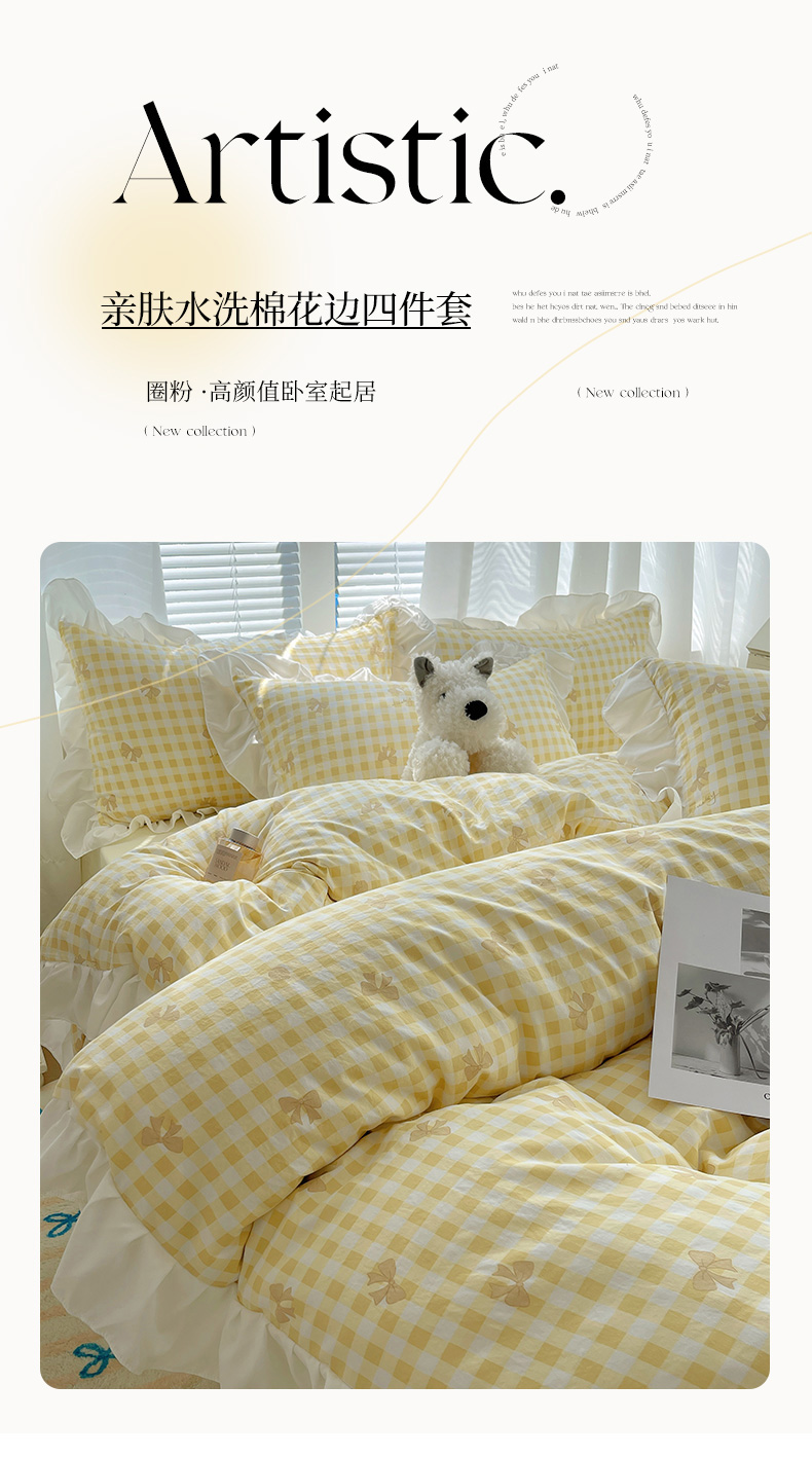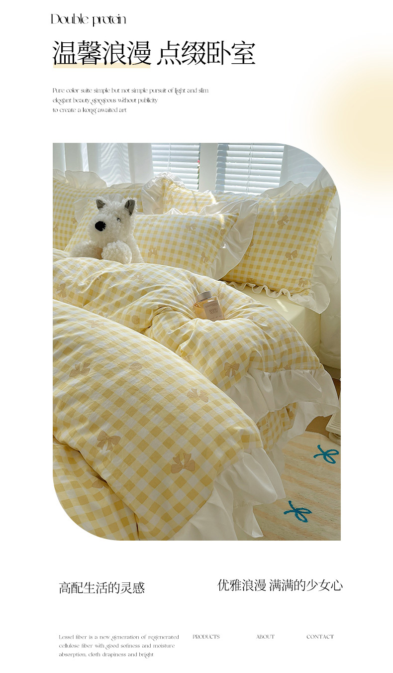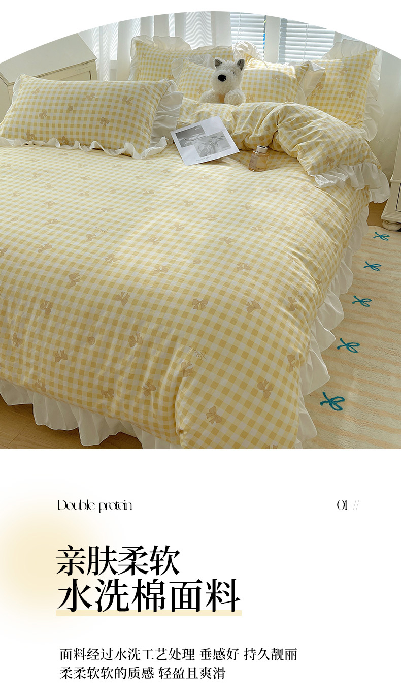 当前位置: 91家纺网 > 商品网购 > 床品套件 > 四件套 > 其它四件套 > 韩都家居 2024新款ins可爱风云朵棉韩系四件套【奈香】 【奈香】-蝴蝶结-黄黄