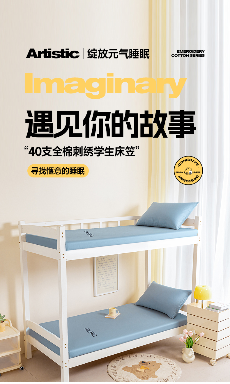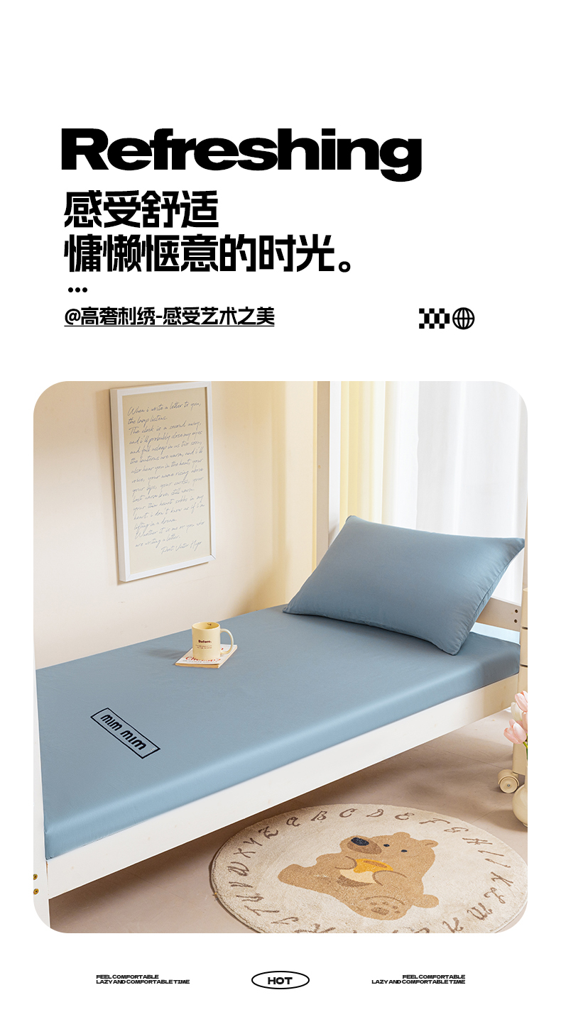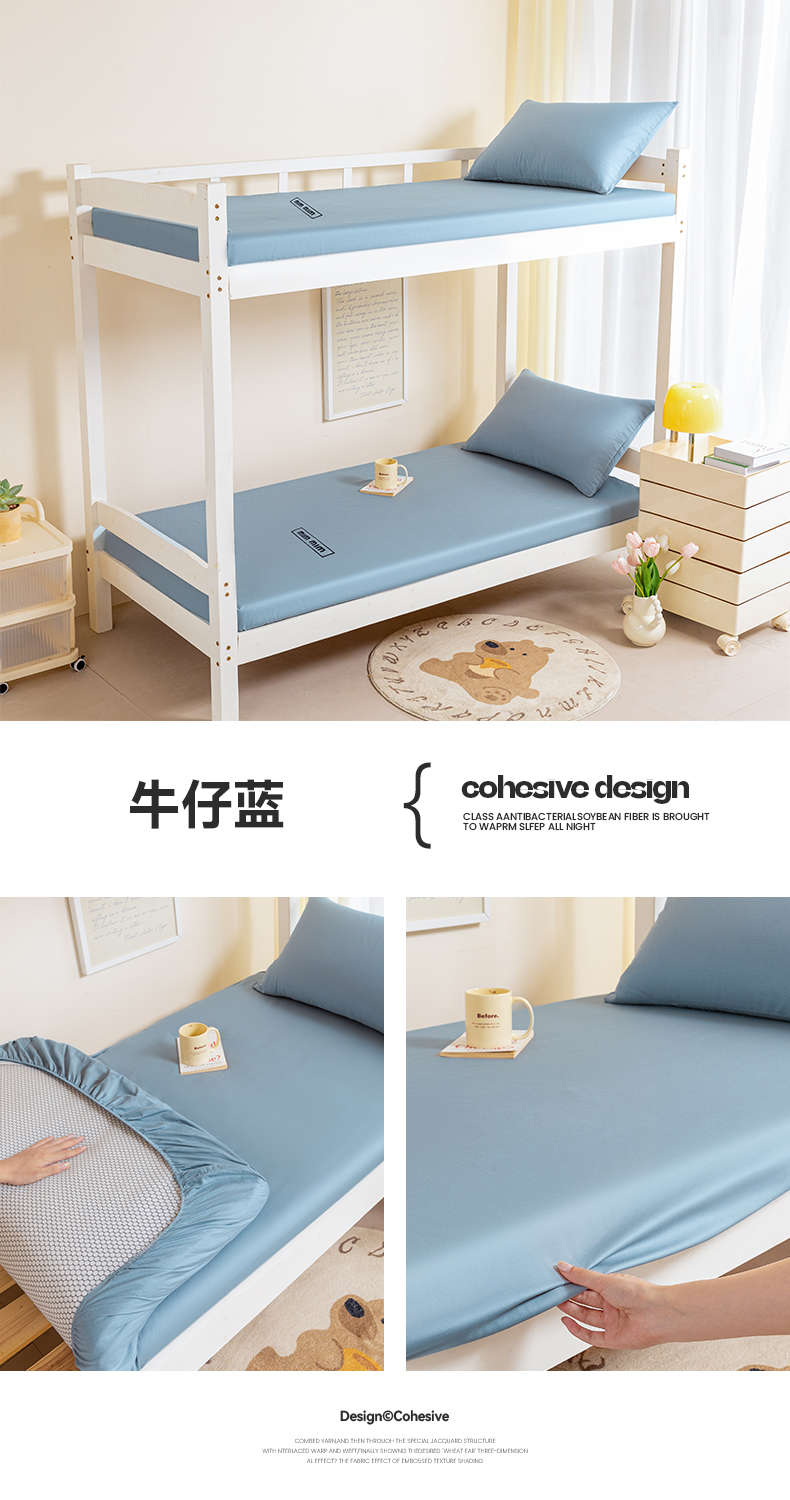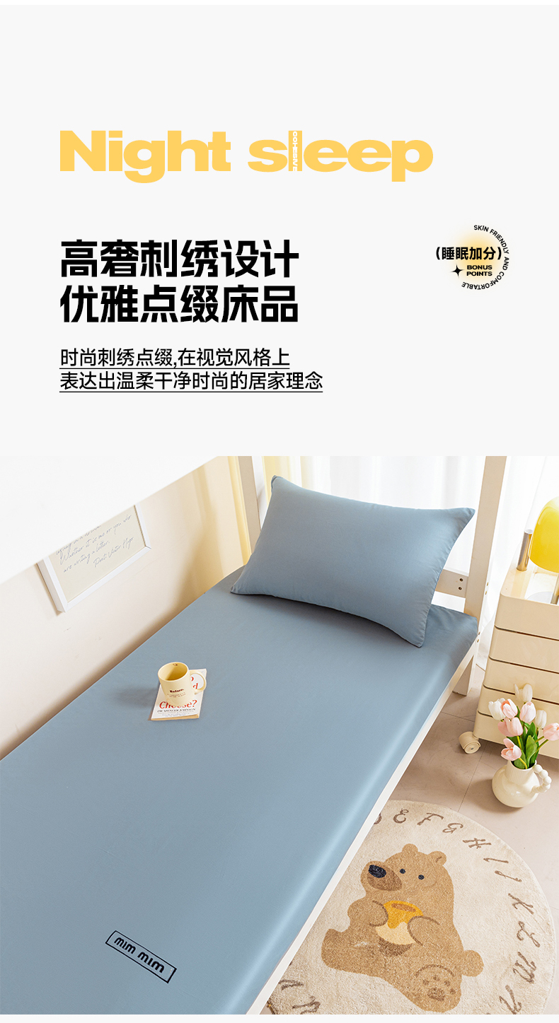 商品名称:寐眠 2024新款40支全棉刺绣学生床笠 牛仔蓝