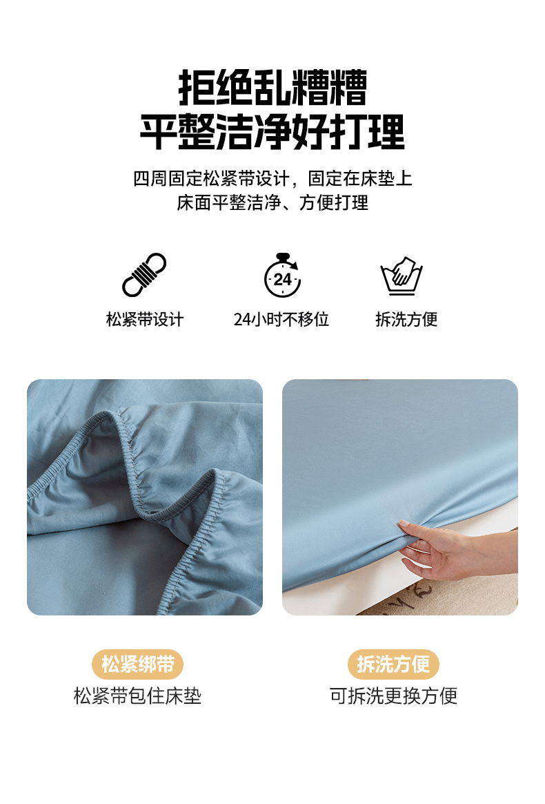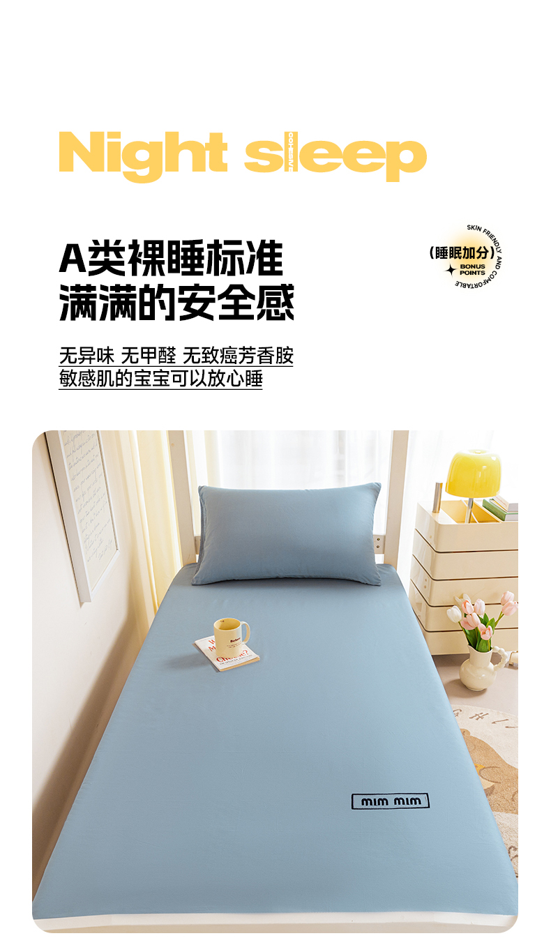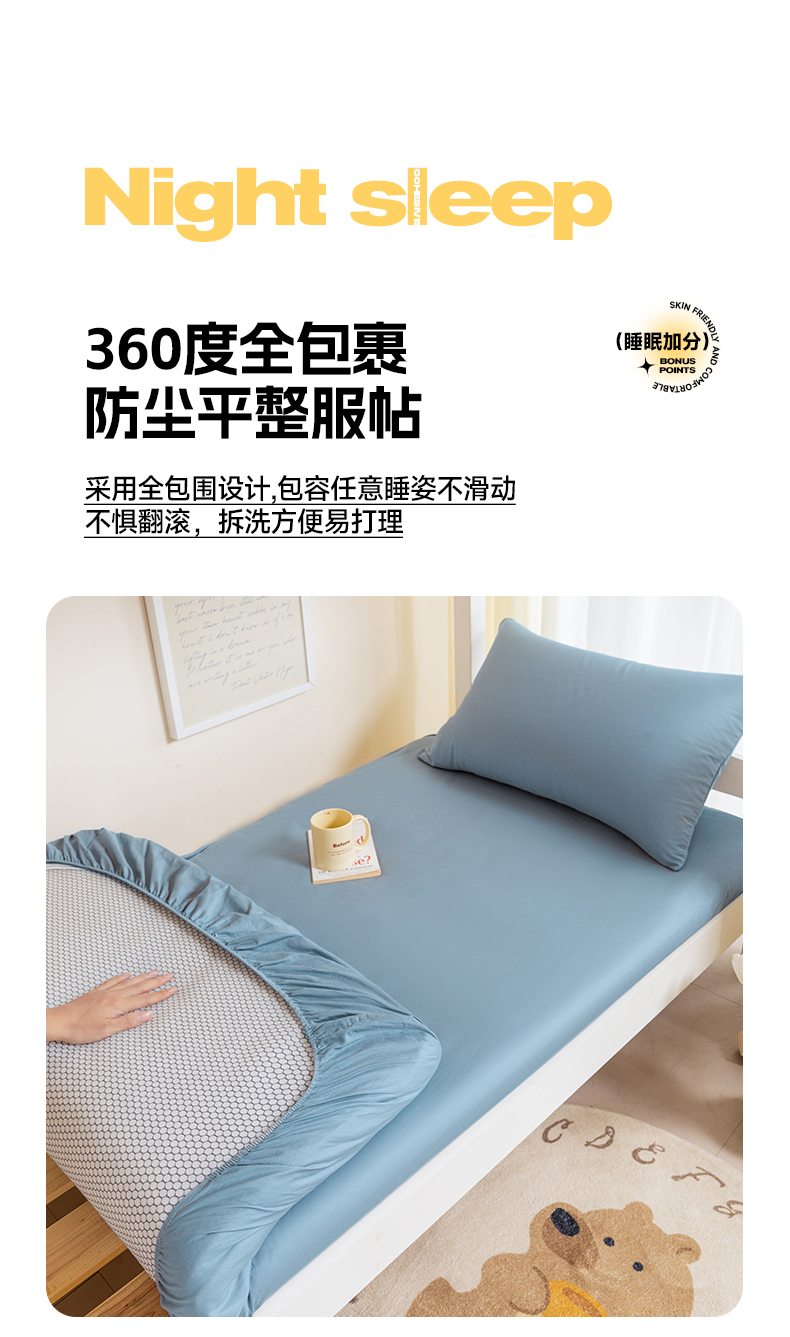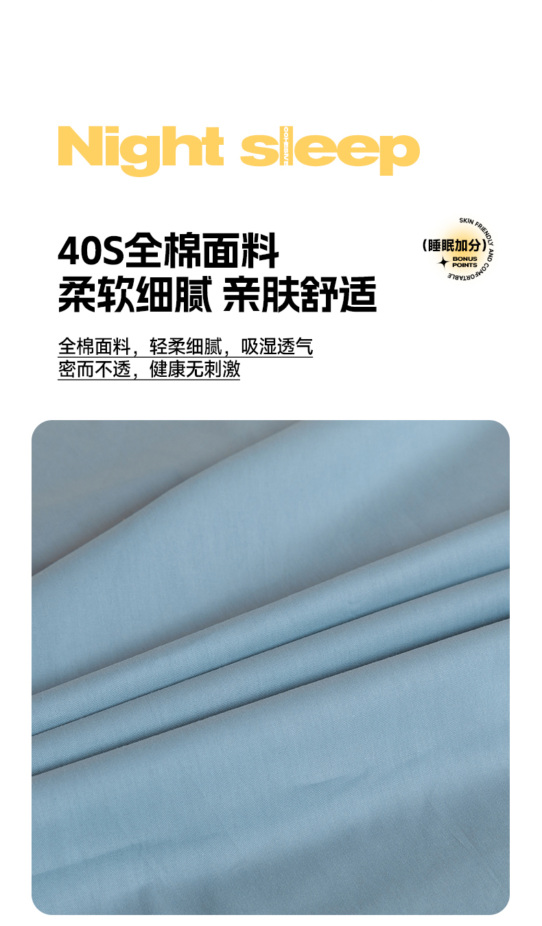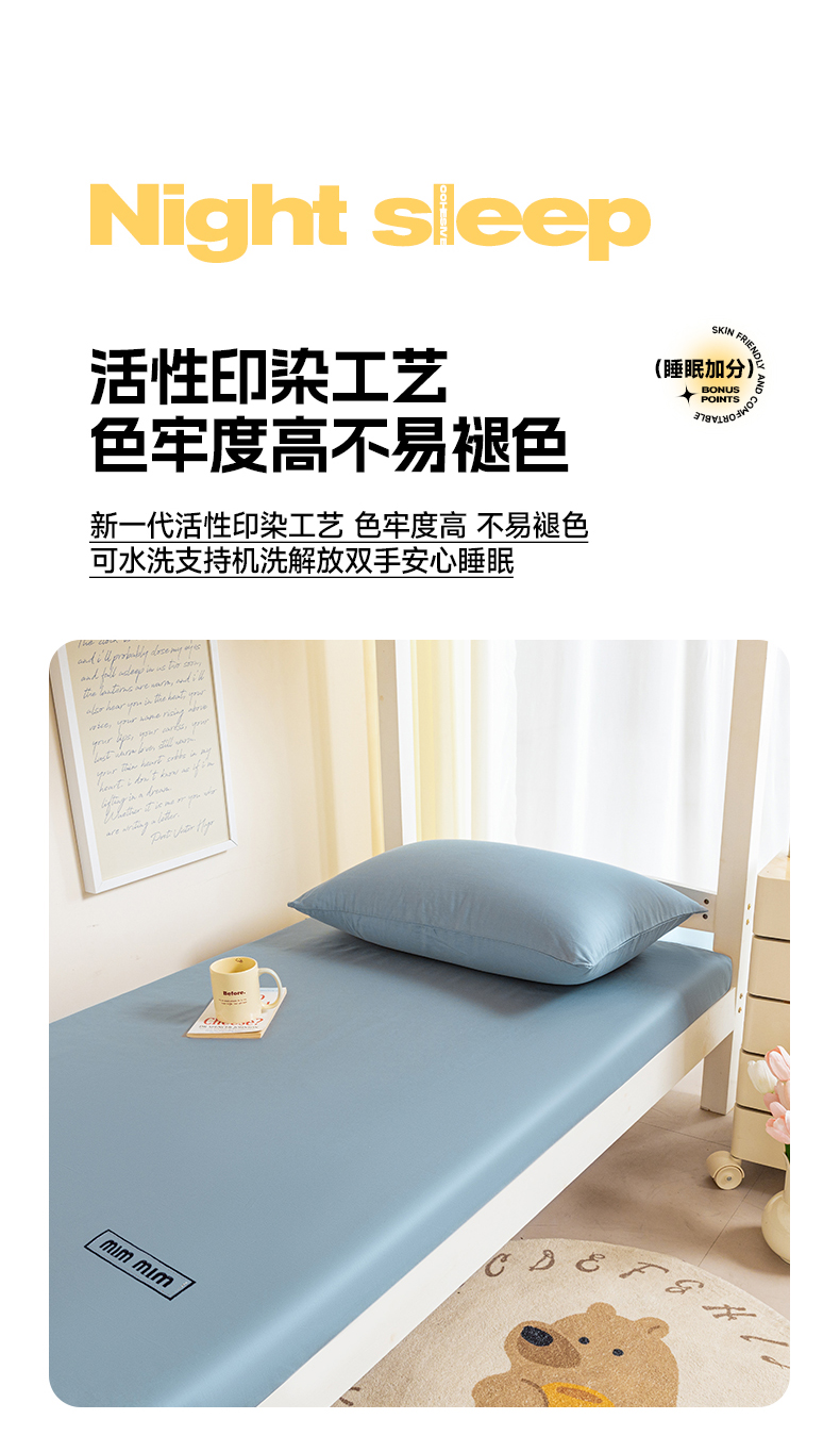 商品名称:寐眠 2024新款40支全棉刺绣学生床笠 牛仔蓝