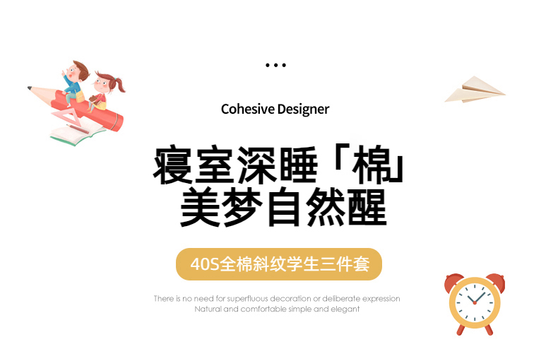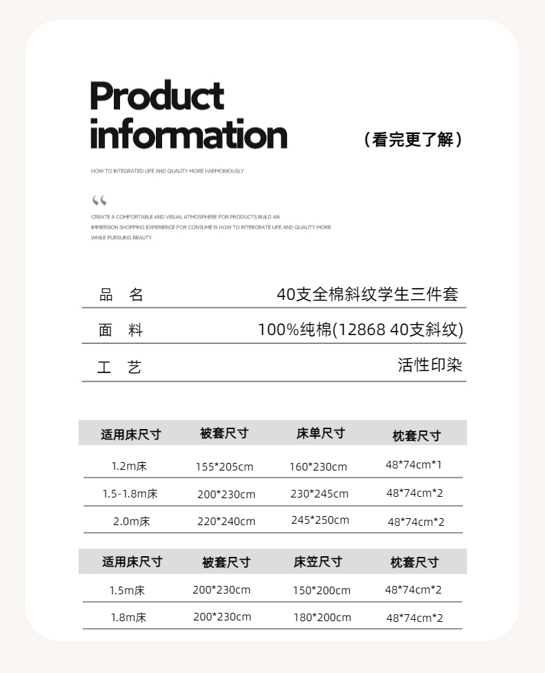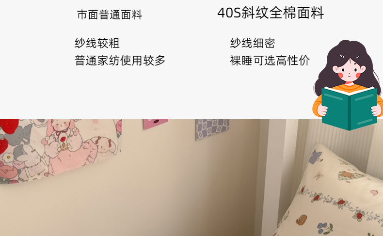 商品名称:简宜家居 2025新款40支全棉斜纹学生宿舍三件套 悦琳