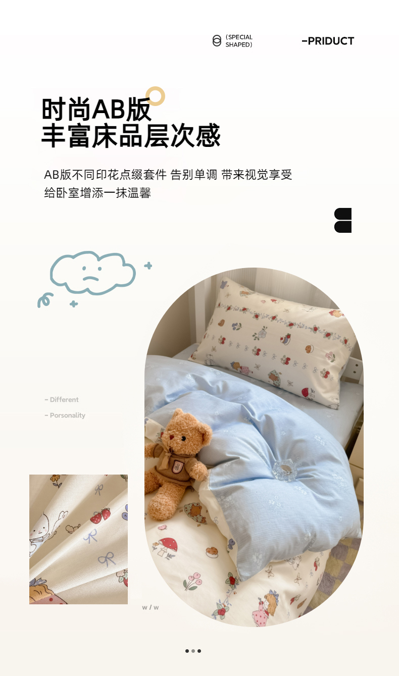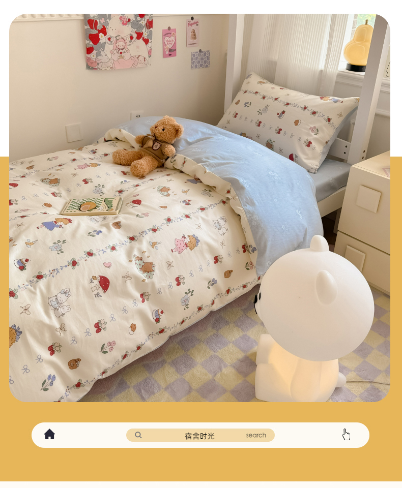 (总)简宜家居 2023新款小清新卡通纯棉全棉斜纹四件套,贩卖美好,蓝彩,蓝色心愿,梦享,奇妙农场,星月童话