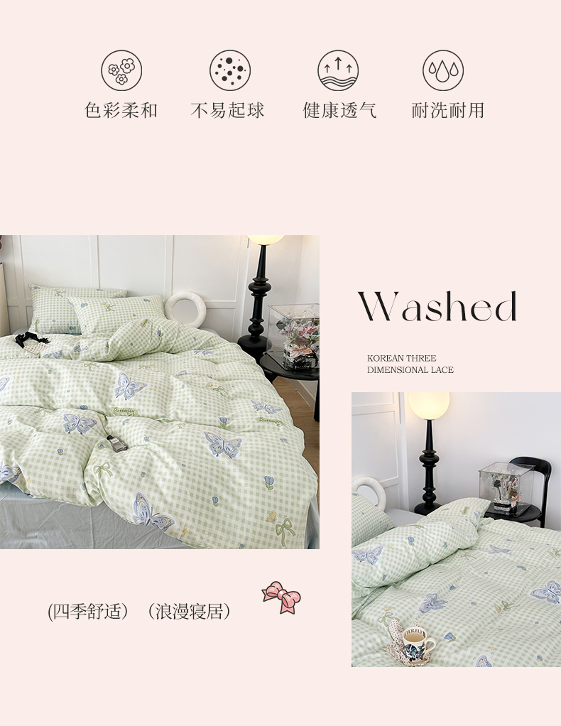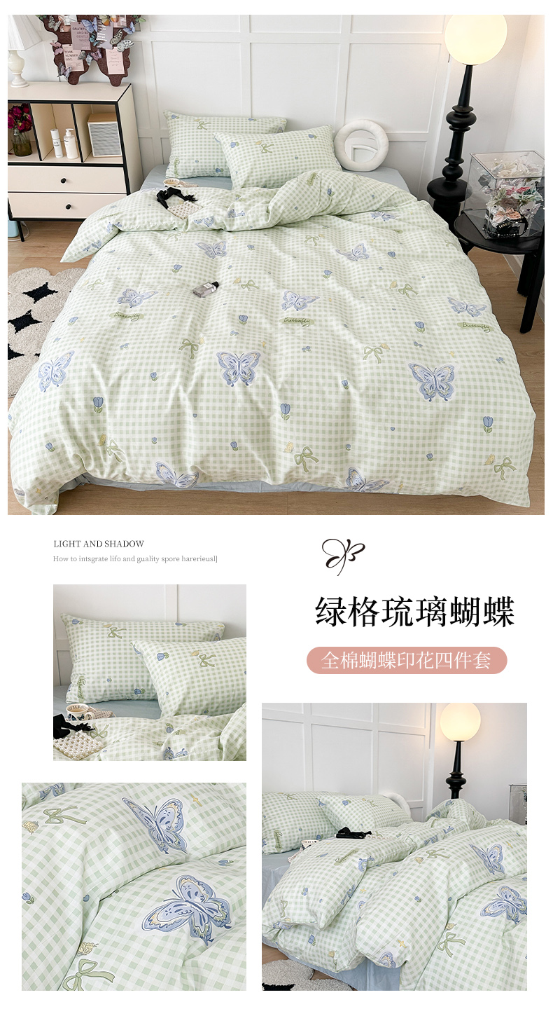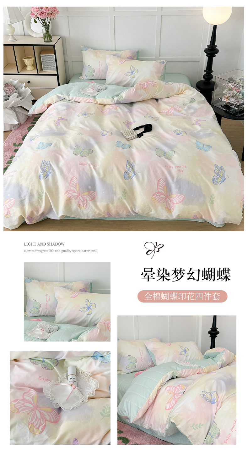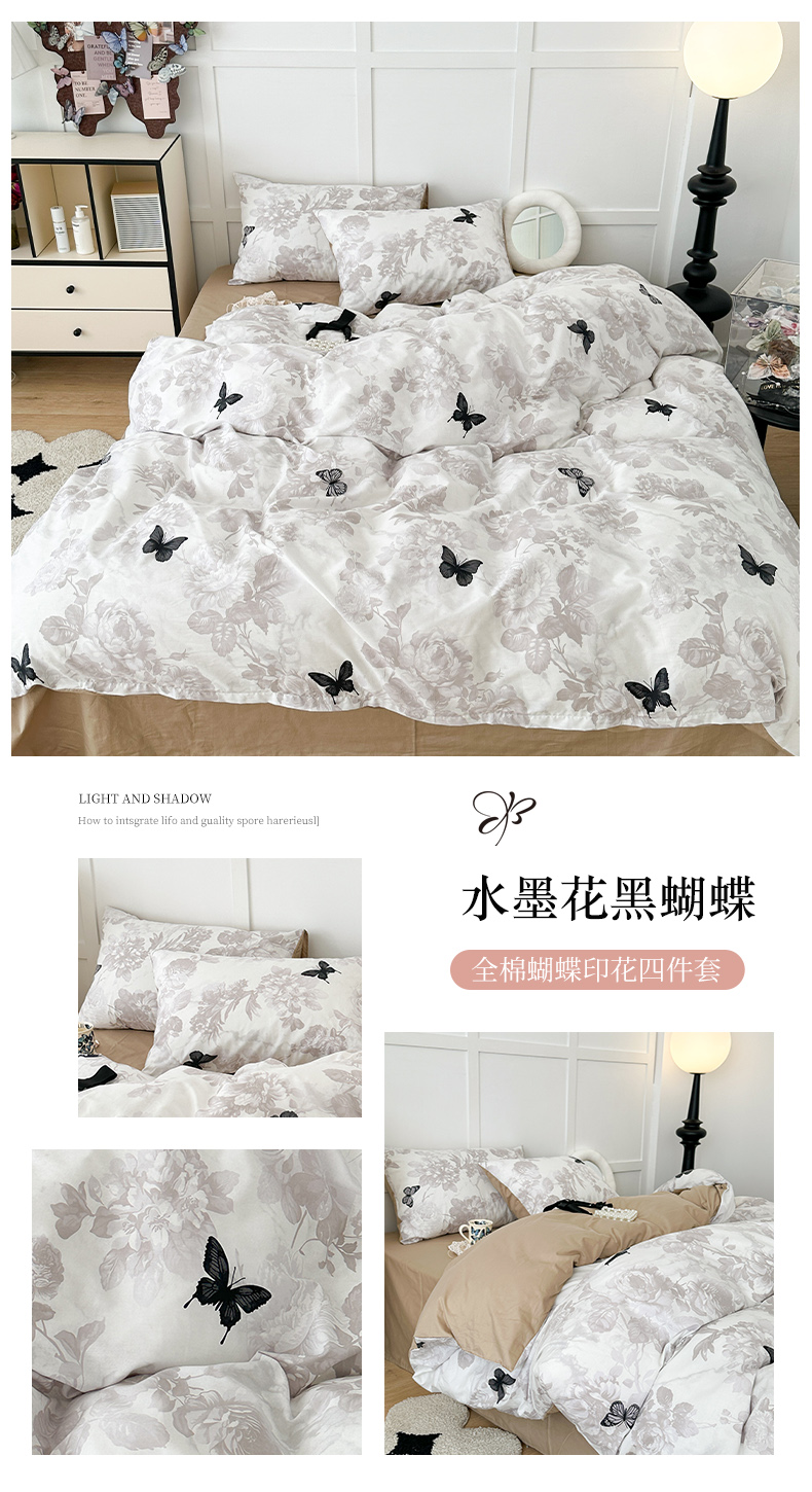 (总)昔可 2024新款全棉蝴蝶印花系列四件套