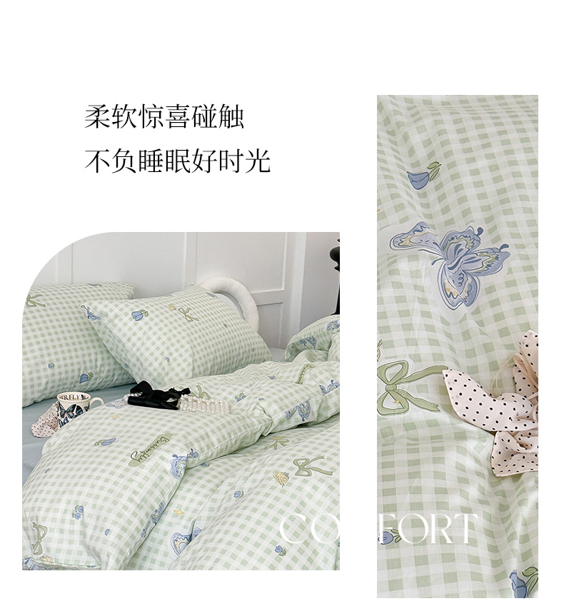 (总)昔可 2023新款全棉ins格子混搭系列四件套,ins简约绿格,粉蓝格,开心果格,学院格纹,粉绿格,海盐兰格,黄绿格,夏日蓝条,芝士黄条,紫芋泥芝士格