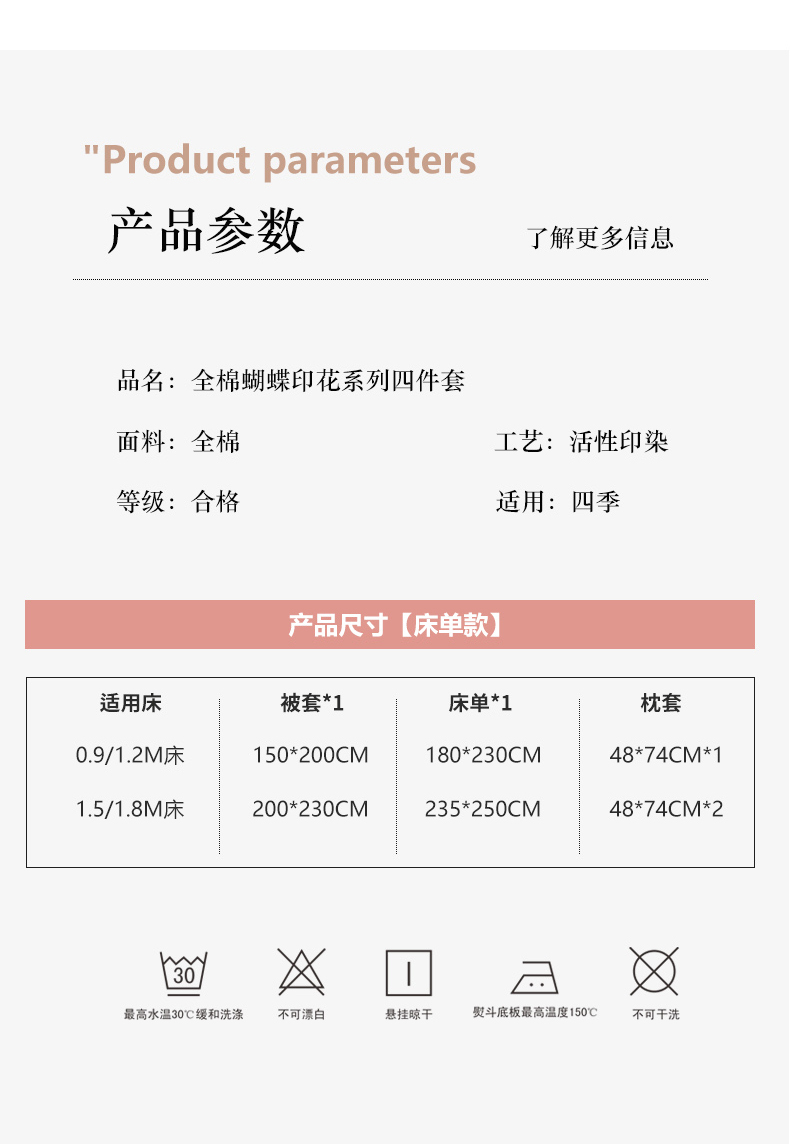 商品名称:(总)昔可 2024新款全棉蝴蝶印花系列四件套