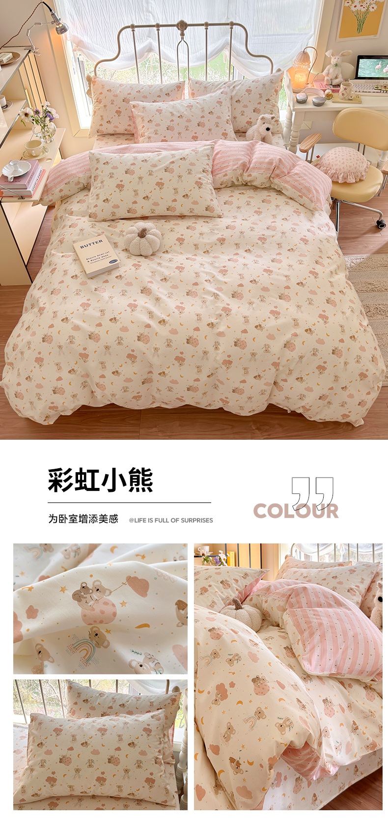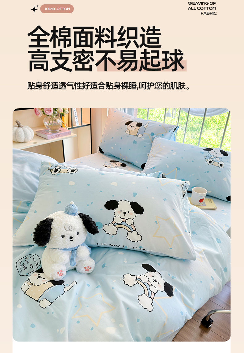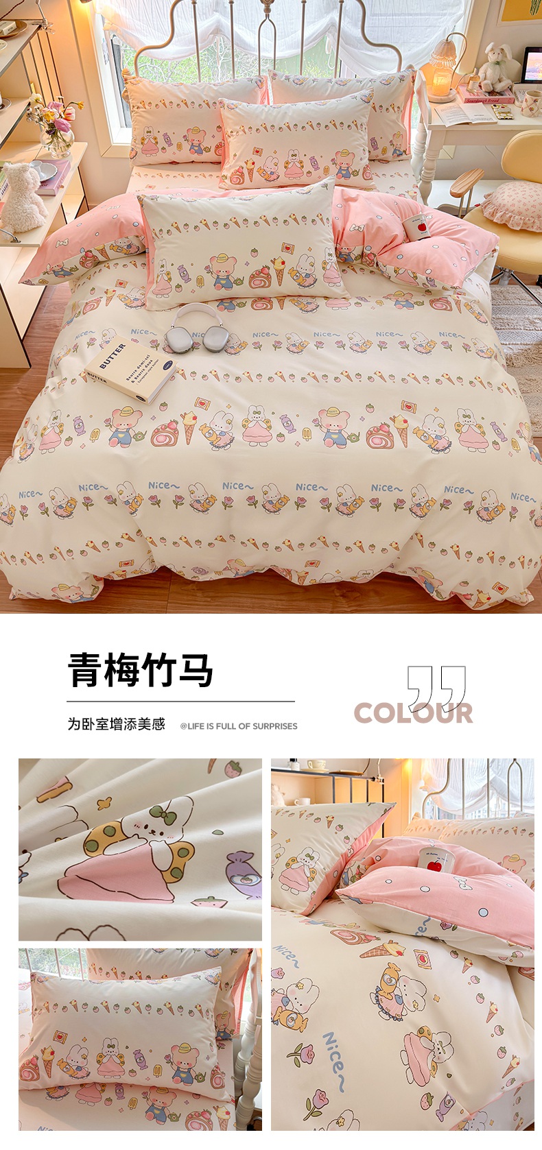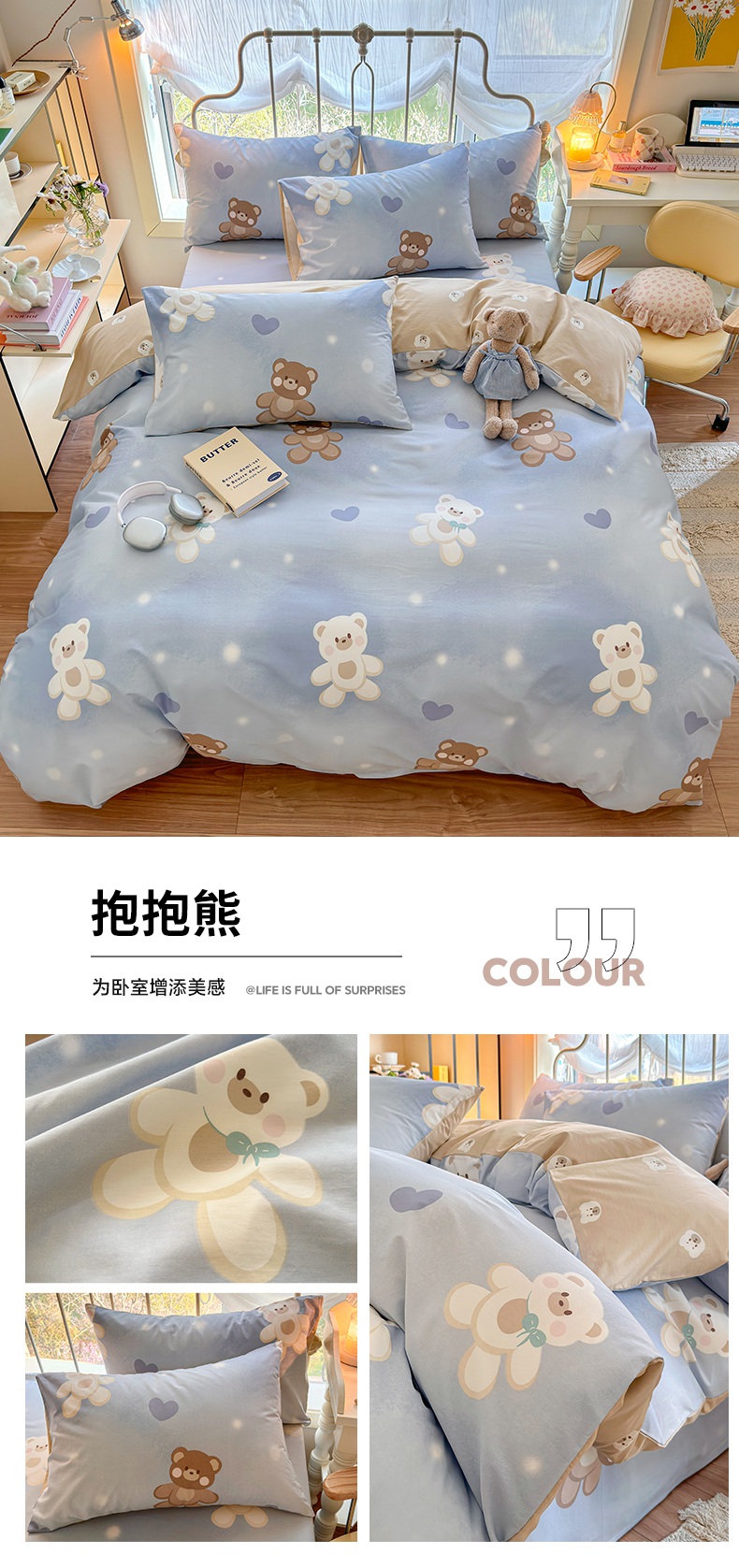 (总)名兮 2023新款全棉印花卡通风四件套,抱抱熊,波波熊,菲菲兔,机器小新,可爱萌宠,可爱兔