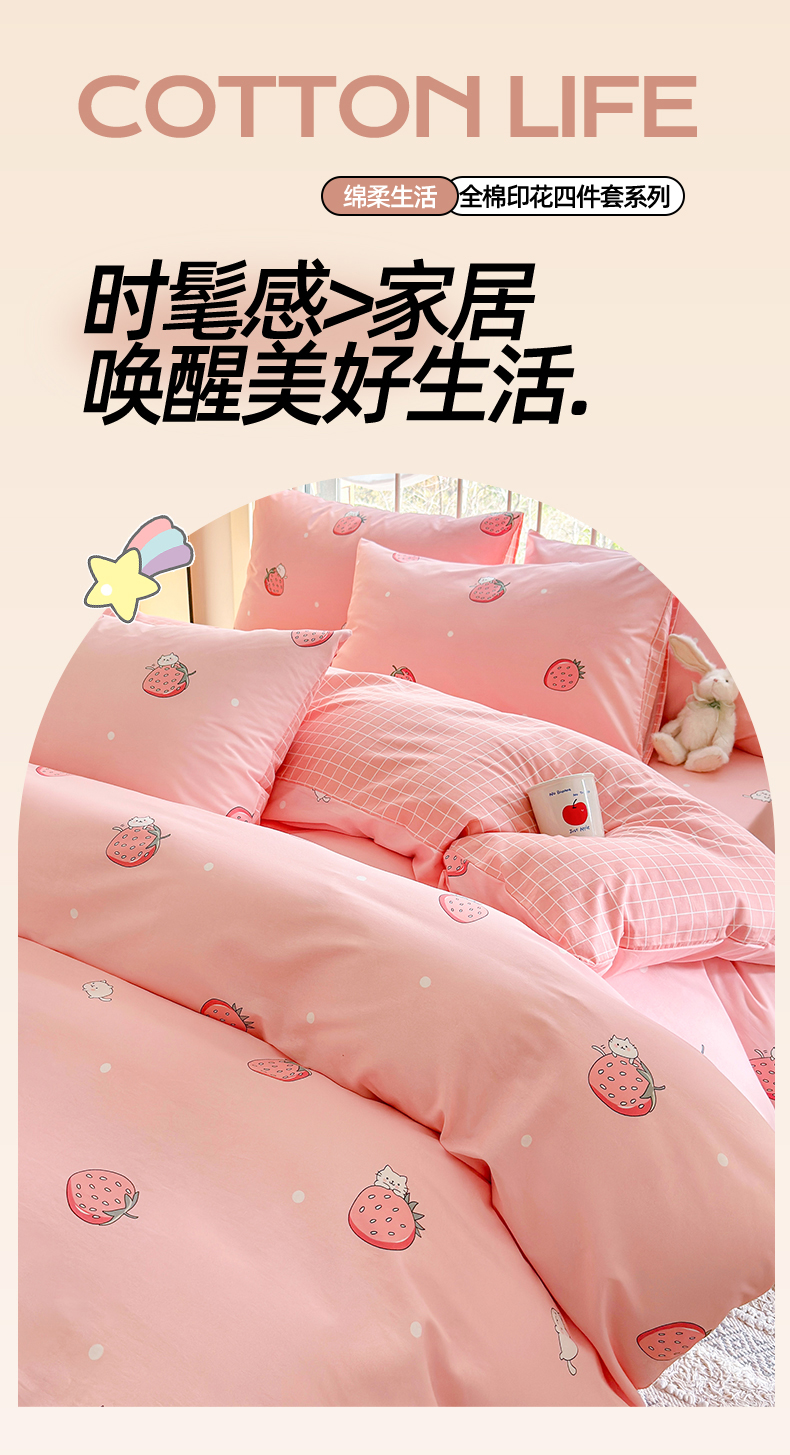 当前位置: 91家纺网 > 商品网购 > 床品套件 > 四件套 > 全棉普通四件套 > 名兮 2024新款全棉亲肤印花四件套 少女梦