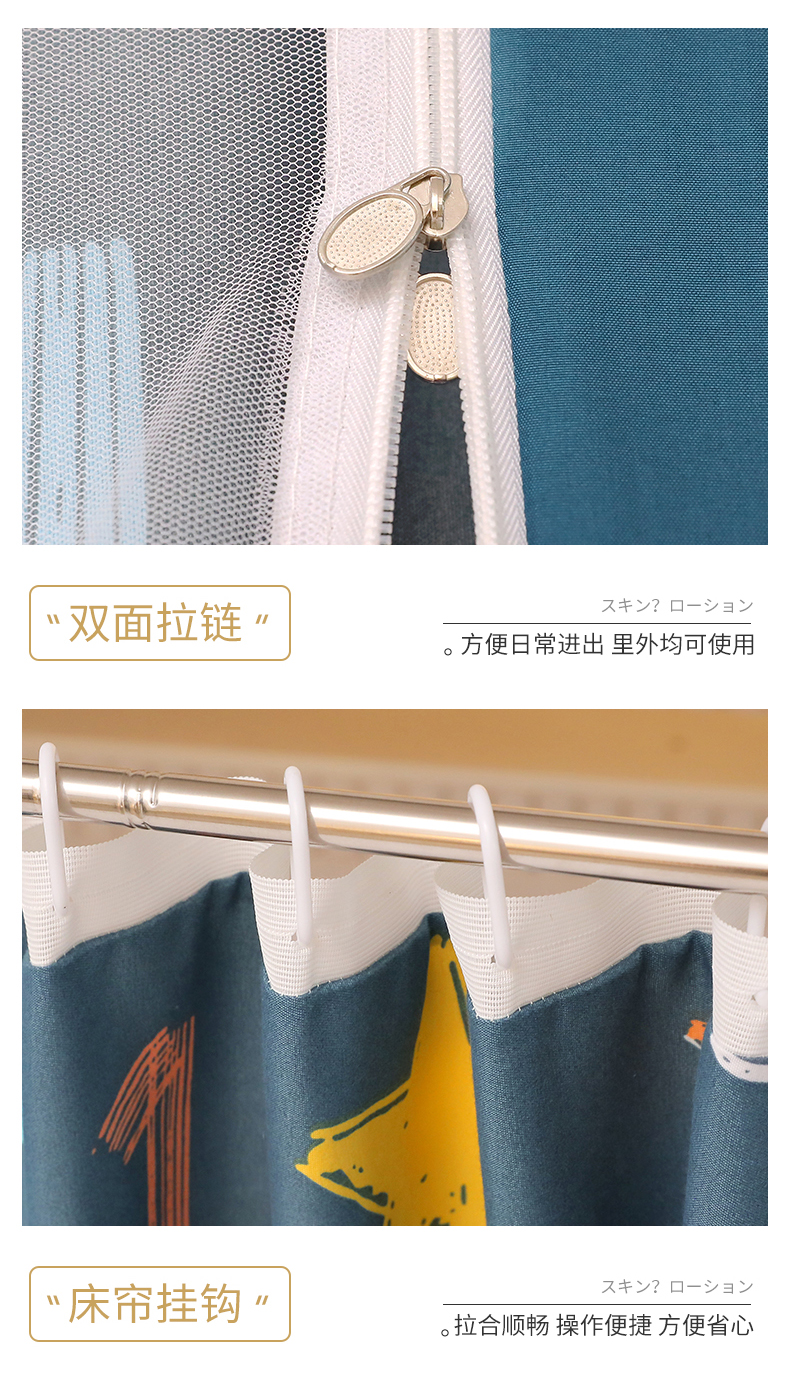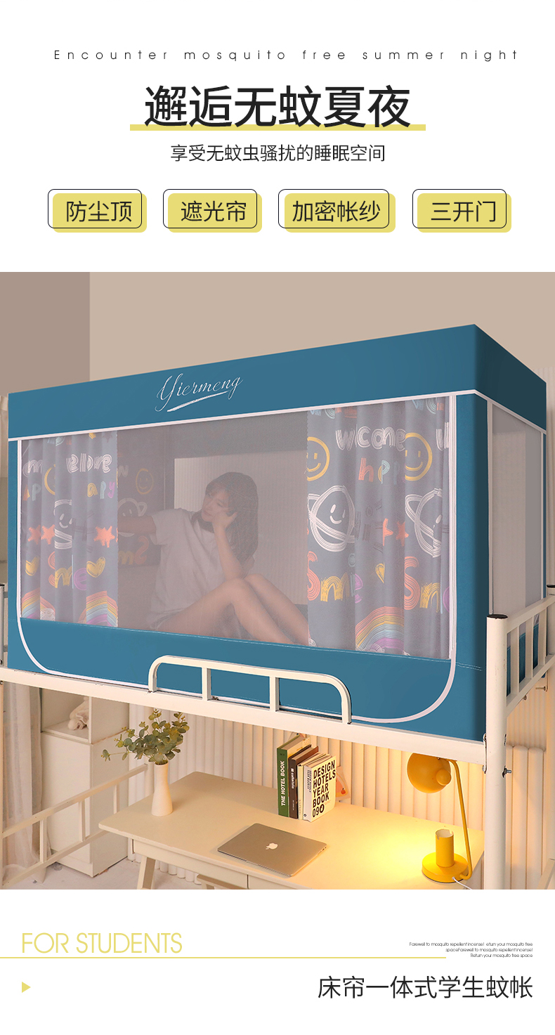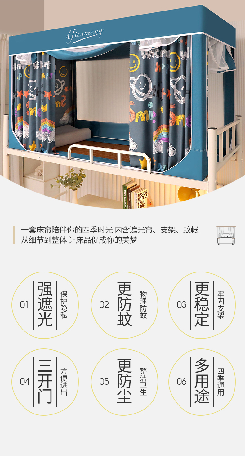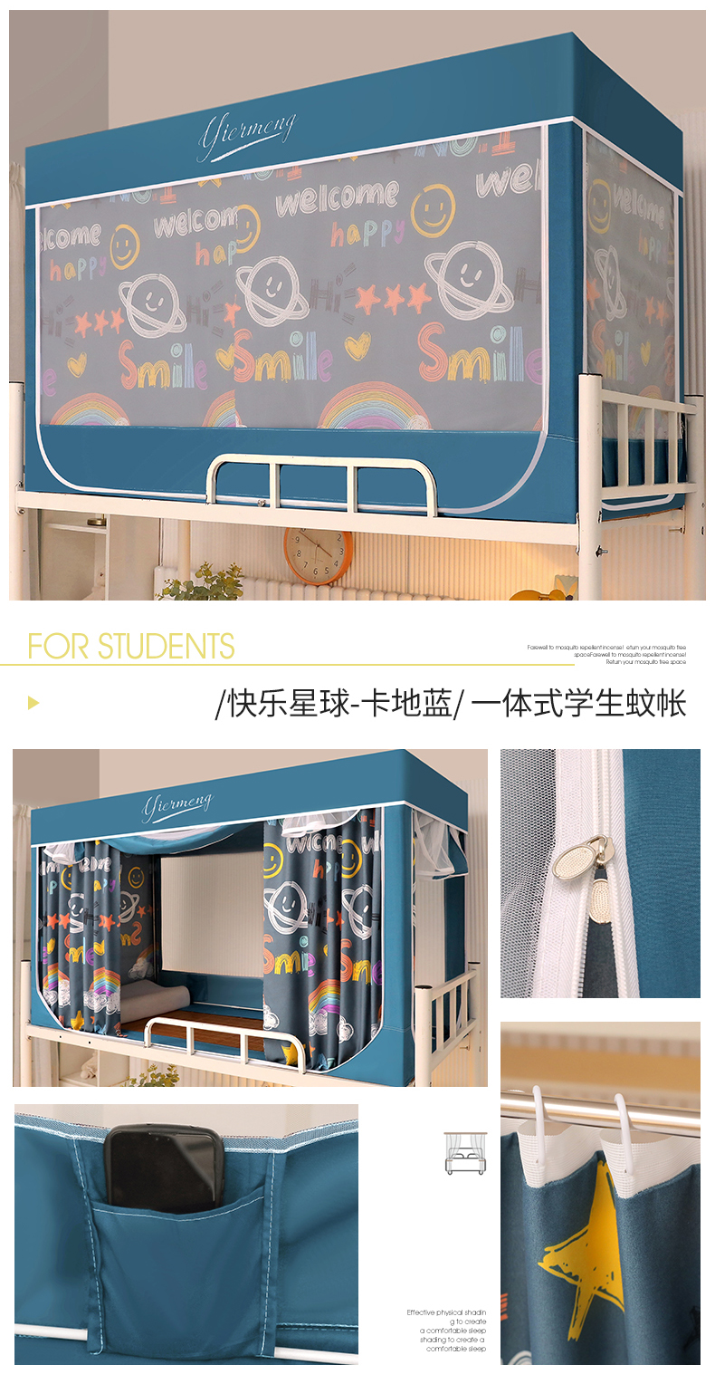 商品名称:伊而梦蚊帐 2025新款学生上下铺床帘一体式坐床蚊帐 快乐星球 卡地蓝