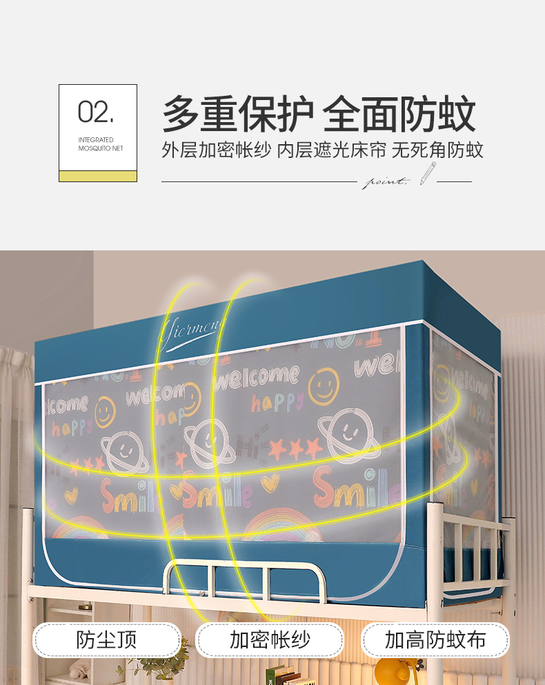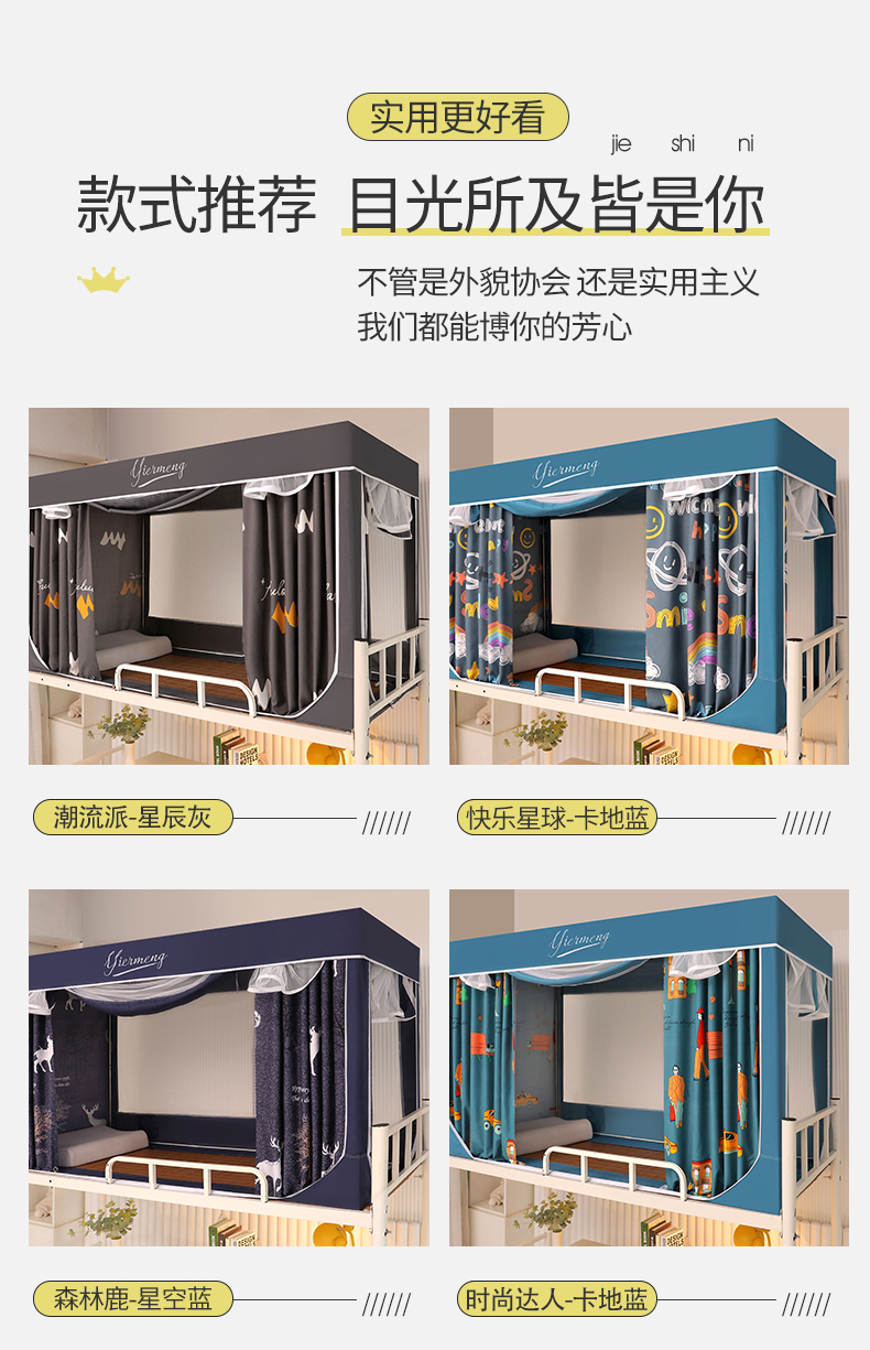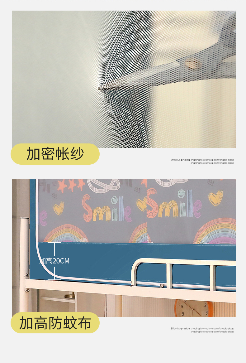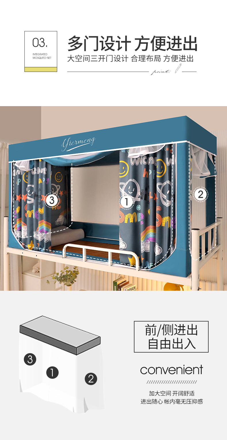商品名称:伊而梦蚊帐 2025新款学生上下铺床帘一体式坐床蚊帐 快乐星球 卡地蓝