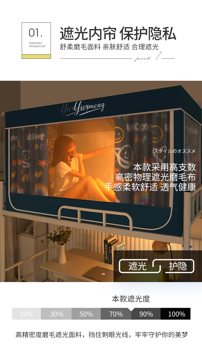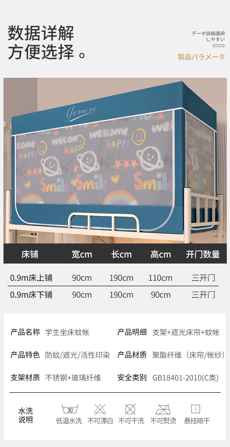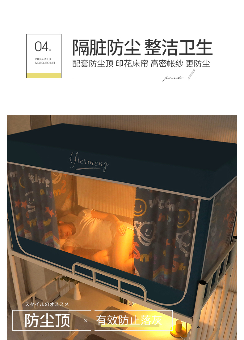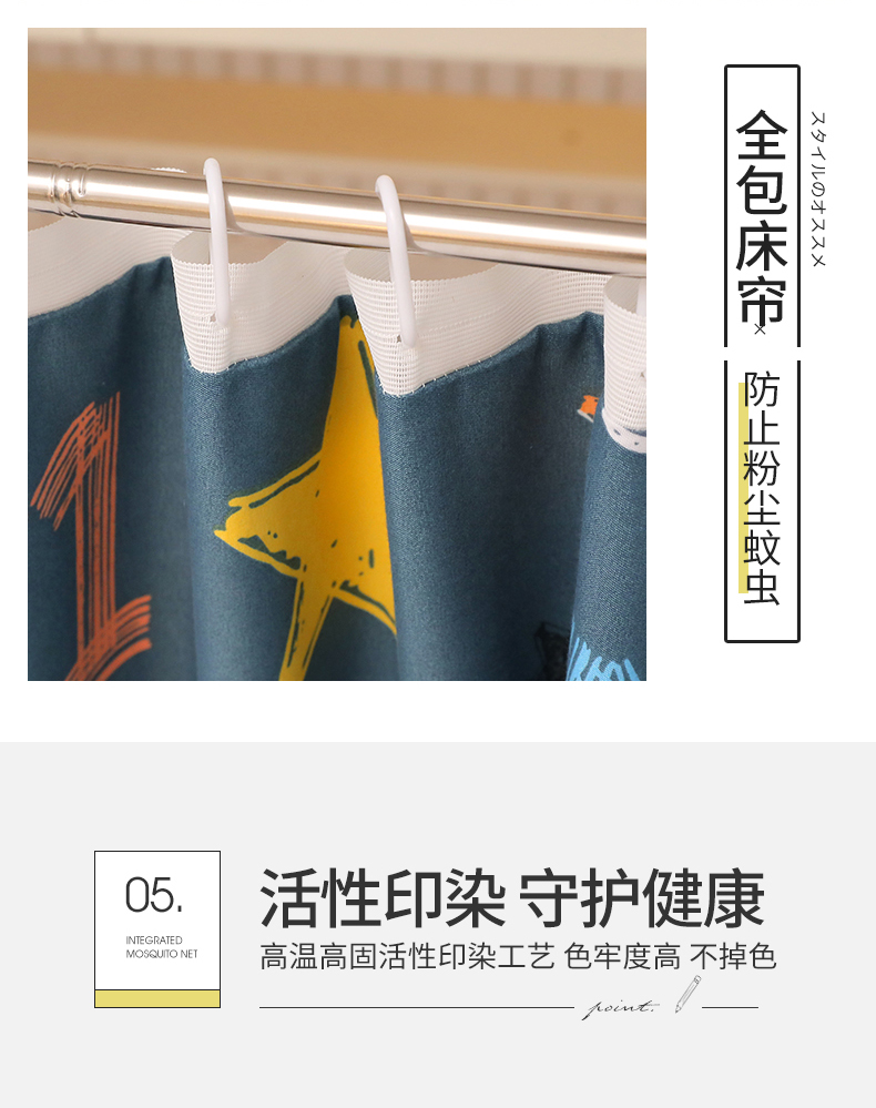 商品名称:伊而梦蚊帐 2025新款学生上下铺床帘一体式坐床蚊帐 快乐星球 卡地蓝