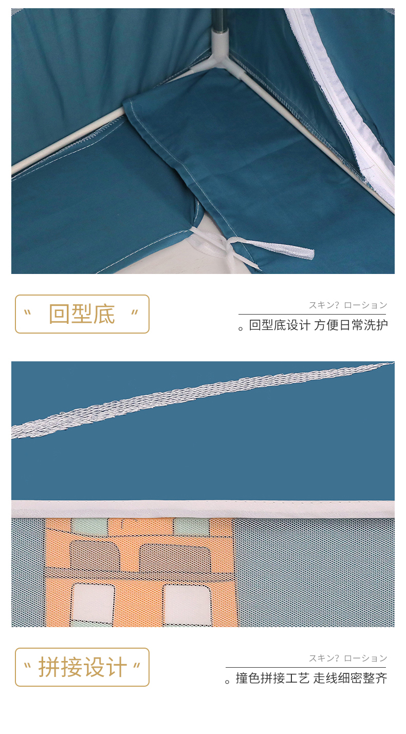 (总)伊而梦蚊帐 2025新款三开门印花款U型门A类母婴级加高坐床款蚊帐升级版围栏款防摔支架906款 ,熊猫-粉,熊猫-蓝,熊猫-杏