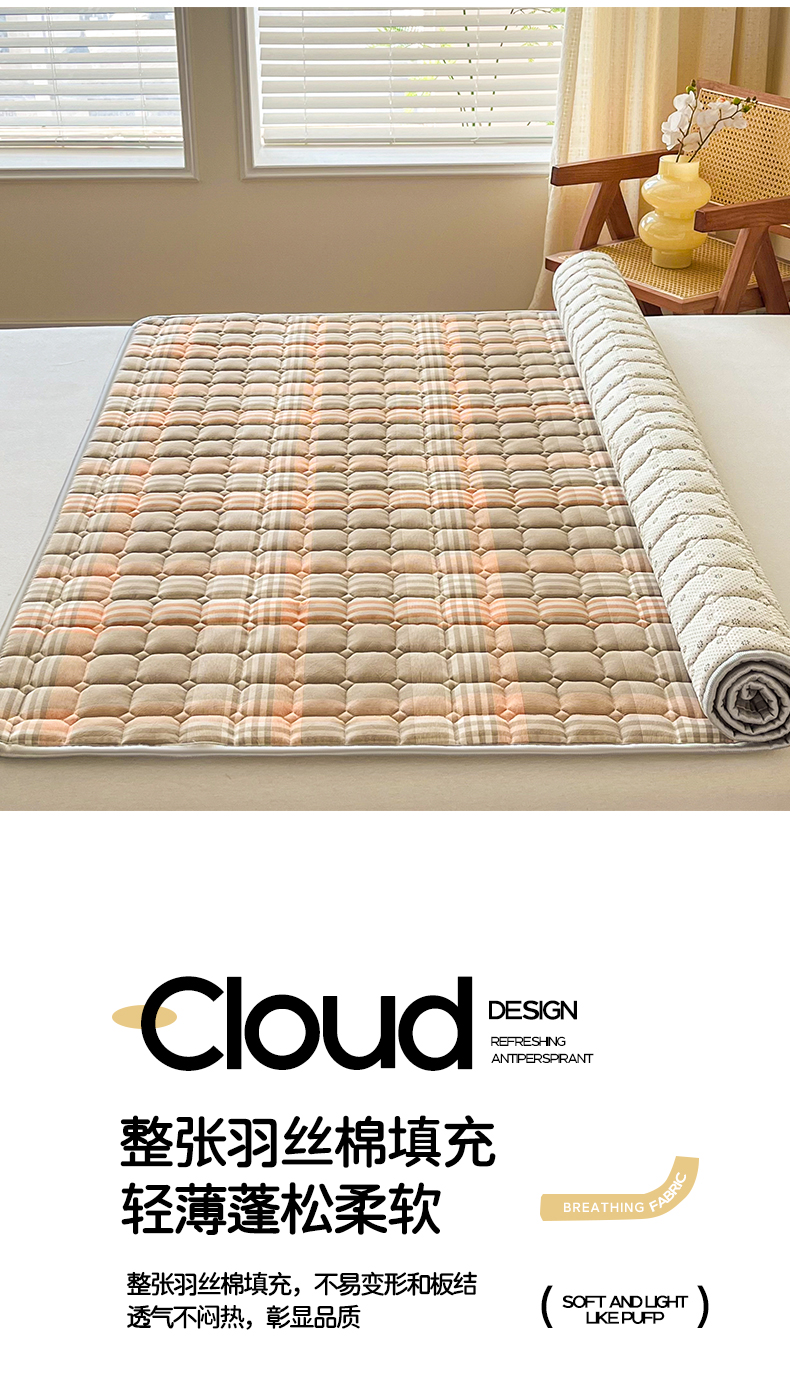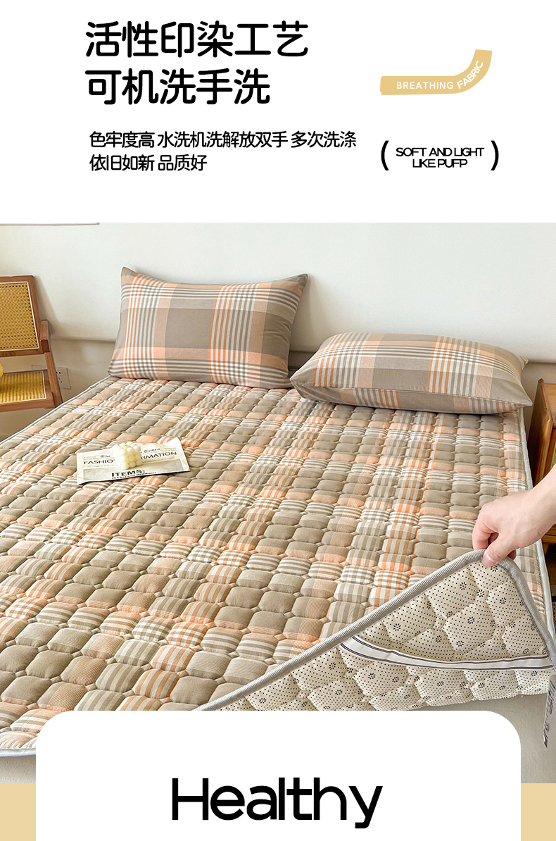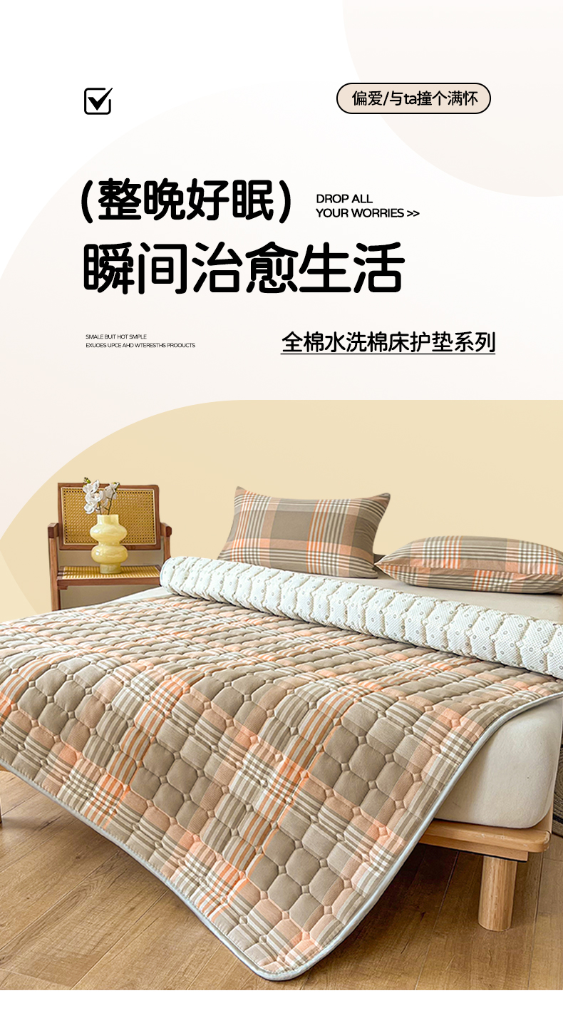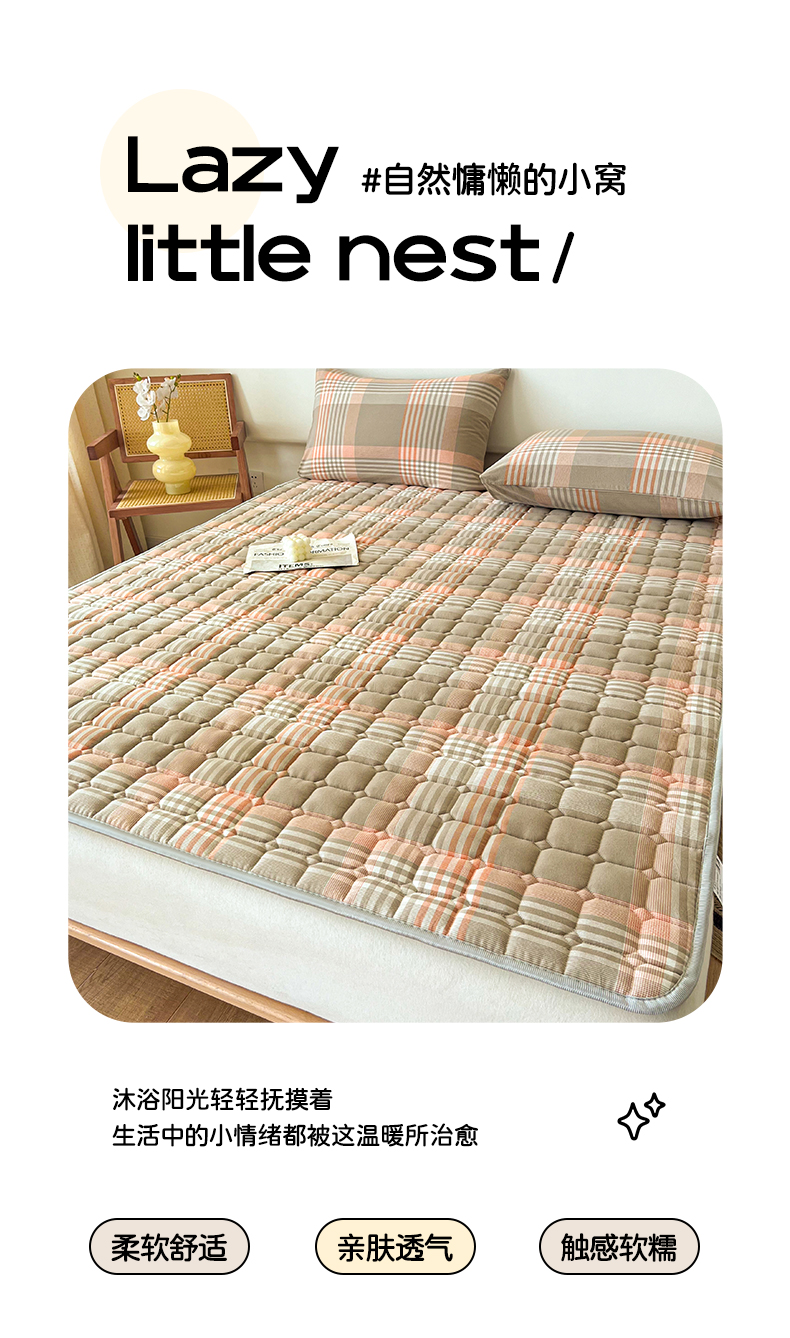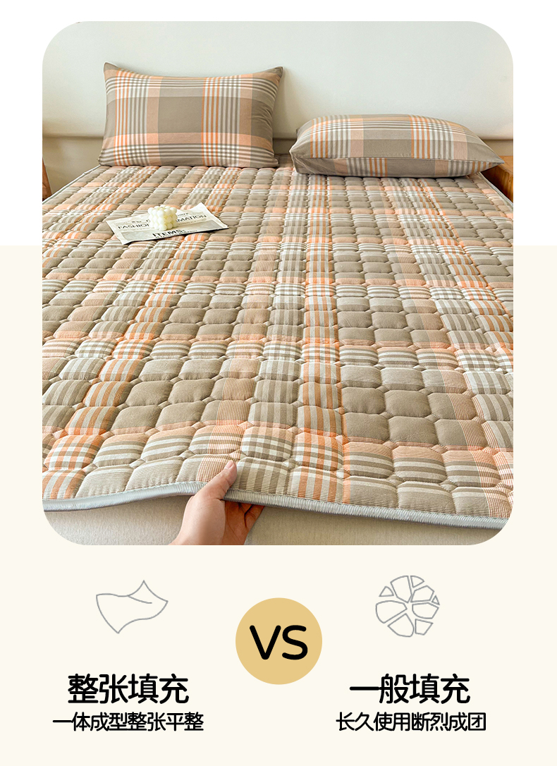 当前位置: 91家纺网 > 商品网购 > 床垫/床褥 > 普通床垫 > 卡伦家纺 2025新款全棉色织水洗棉夹棉床垫席梦思保护垫 错格咖