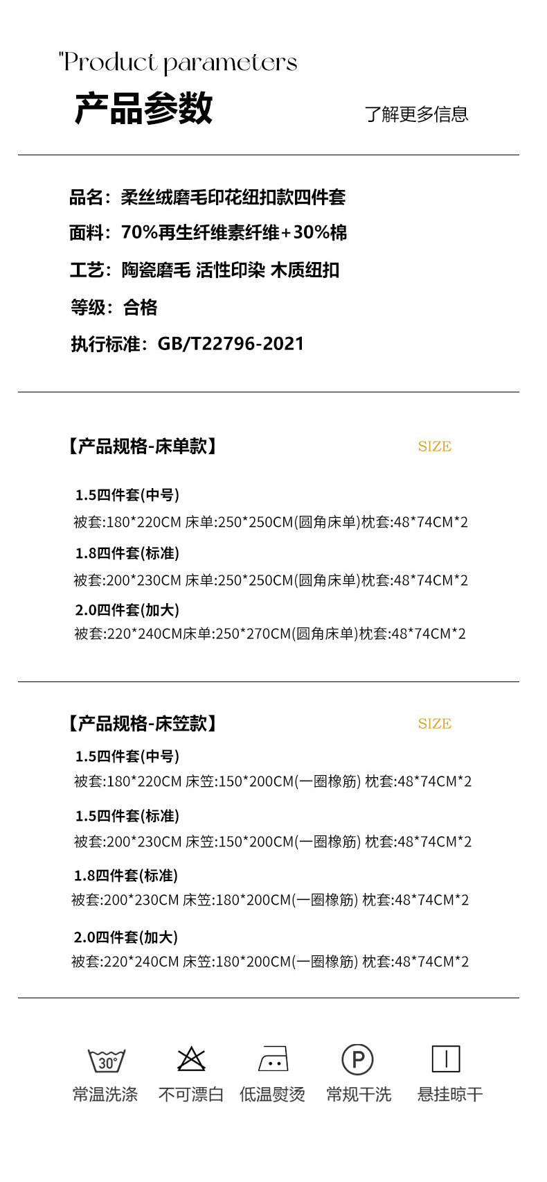 1.5米床单款四件套(被套180*220 床单250*250) | ¥195.00 |