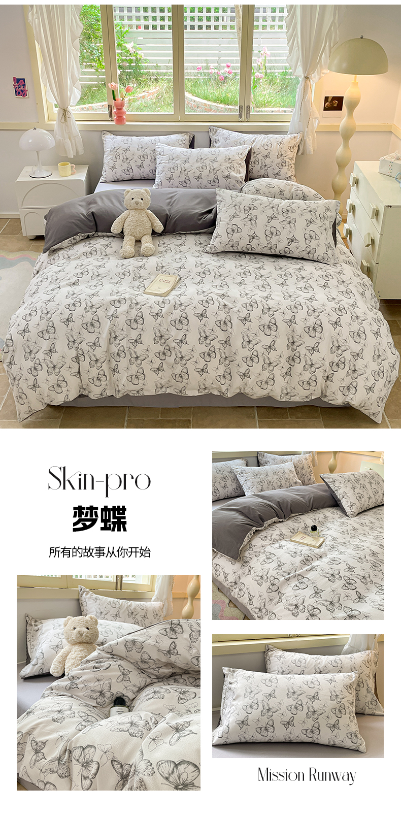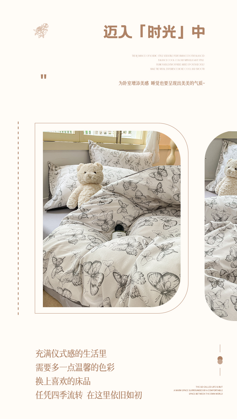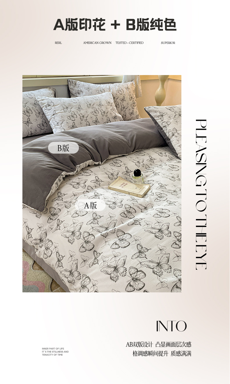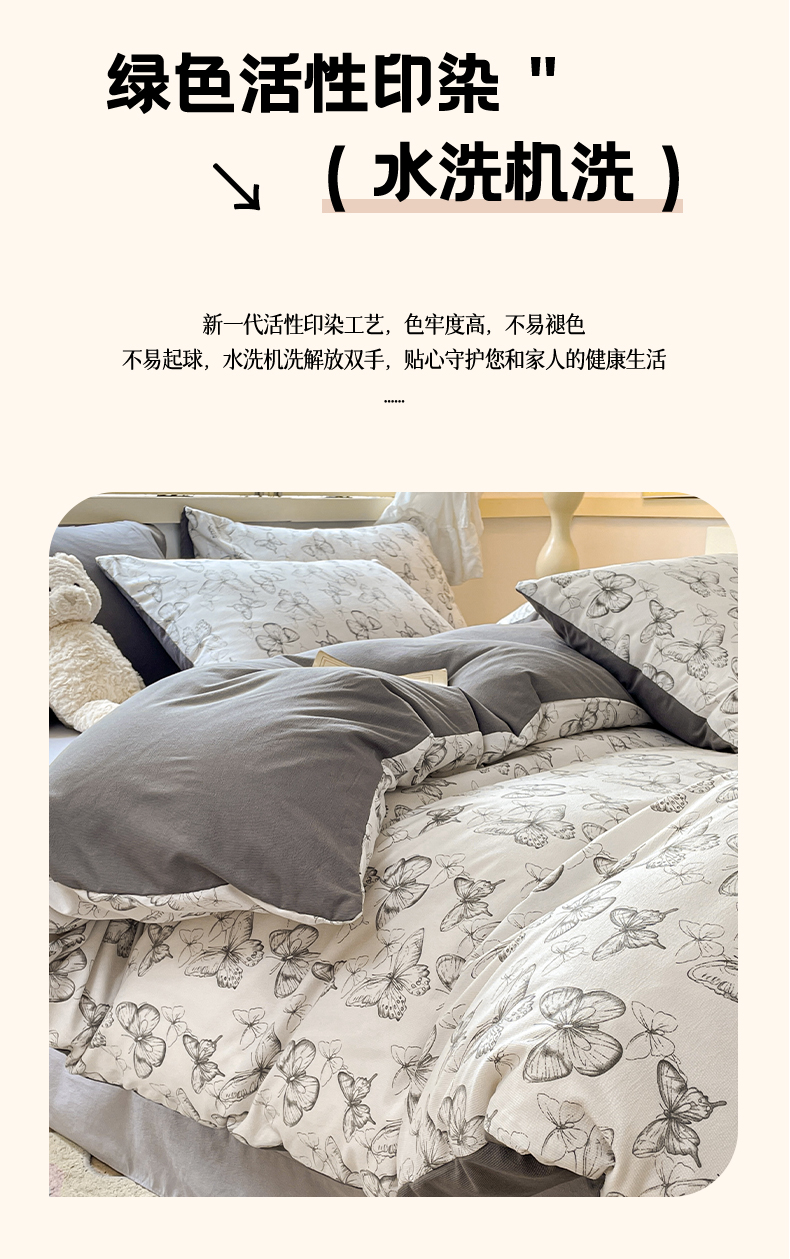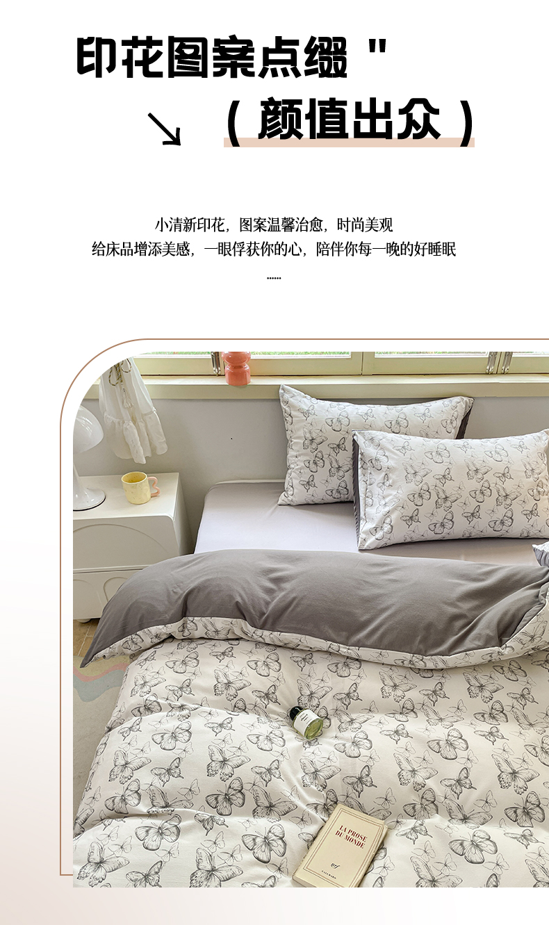 当前位置: 91家纺网 > 商品网购 > 床品套件 > 四件套 > 全棉普通四件套 > 玉海棠 2024新款AB版软糯针织棉印花四件套 梦蝶-