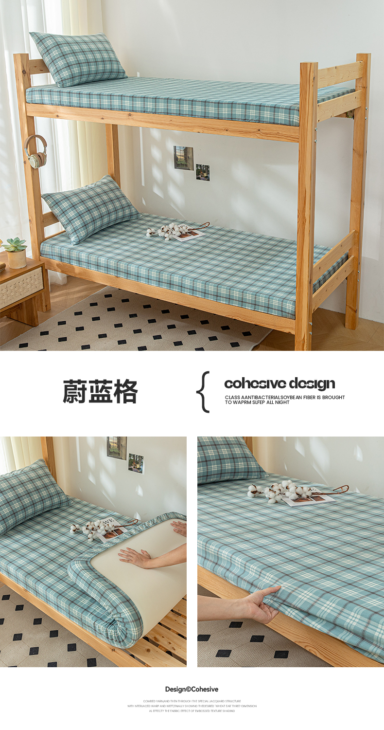 商品名称:寐眠 2024新款A类全棉水洗棉学生床笠系列 蔚蓝格