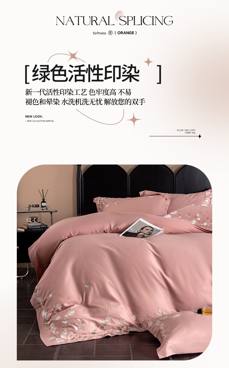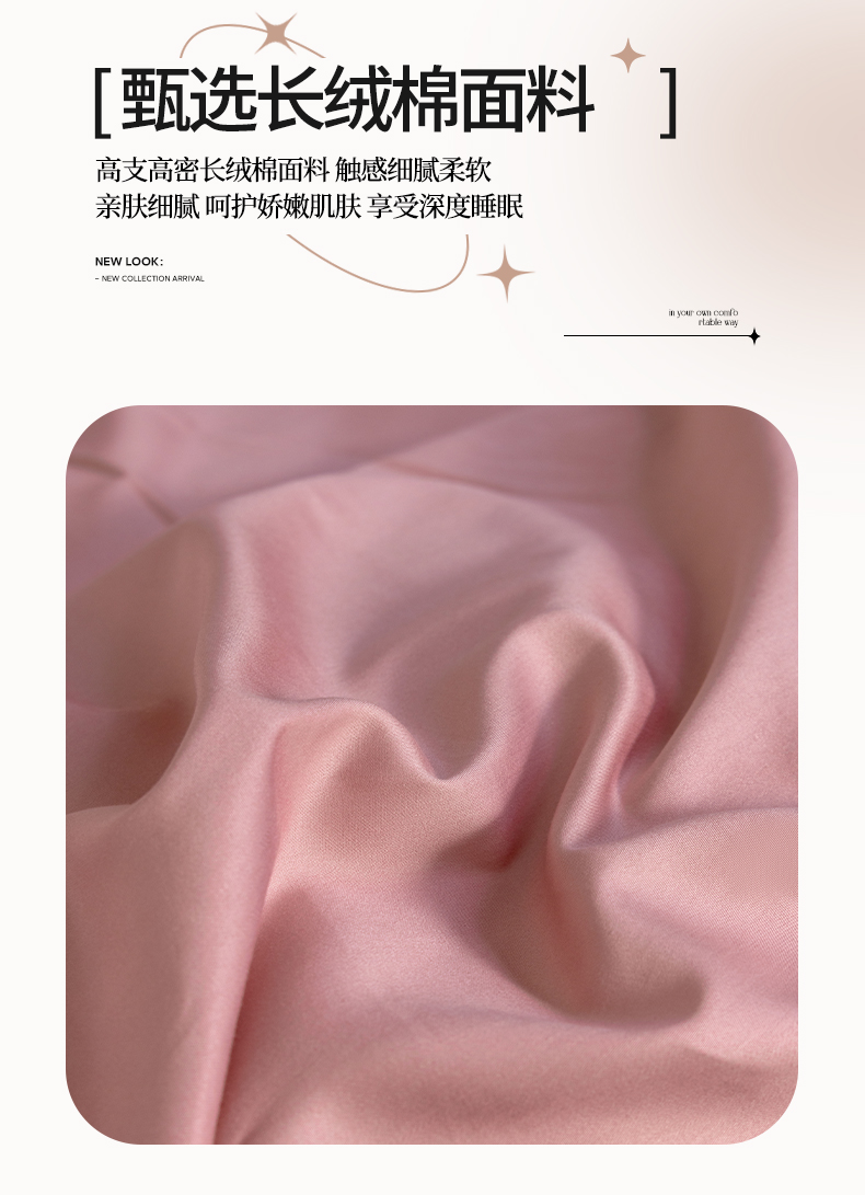商品名称:心悦家纺 2024新款高支高密120支长绒棉刺绣四件套 豆沙粉