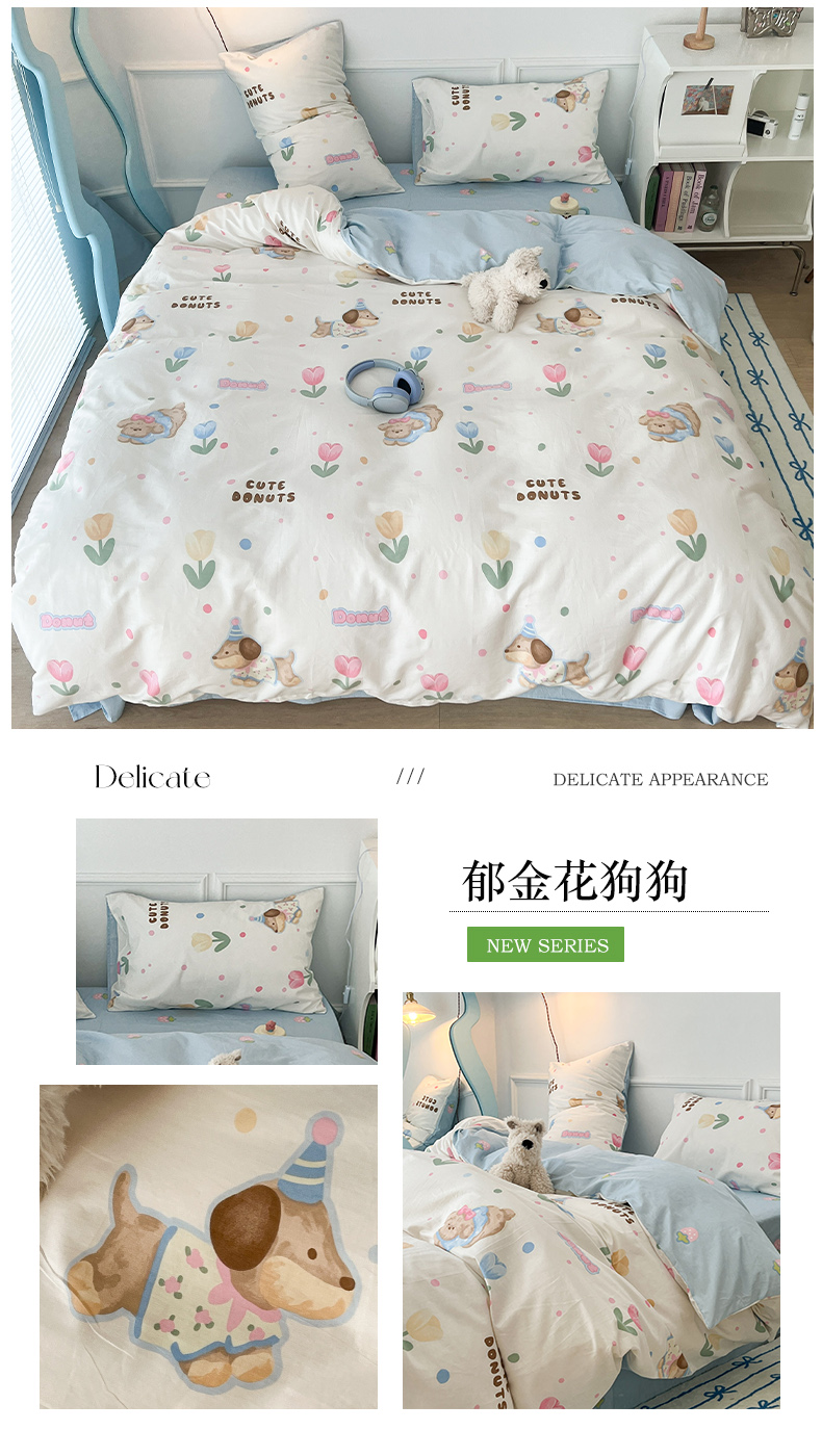 2024新款13070跑量款全棉四件套--卡通系列 郁金花狗狗
