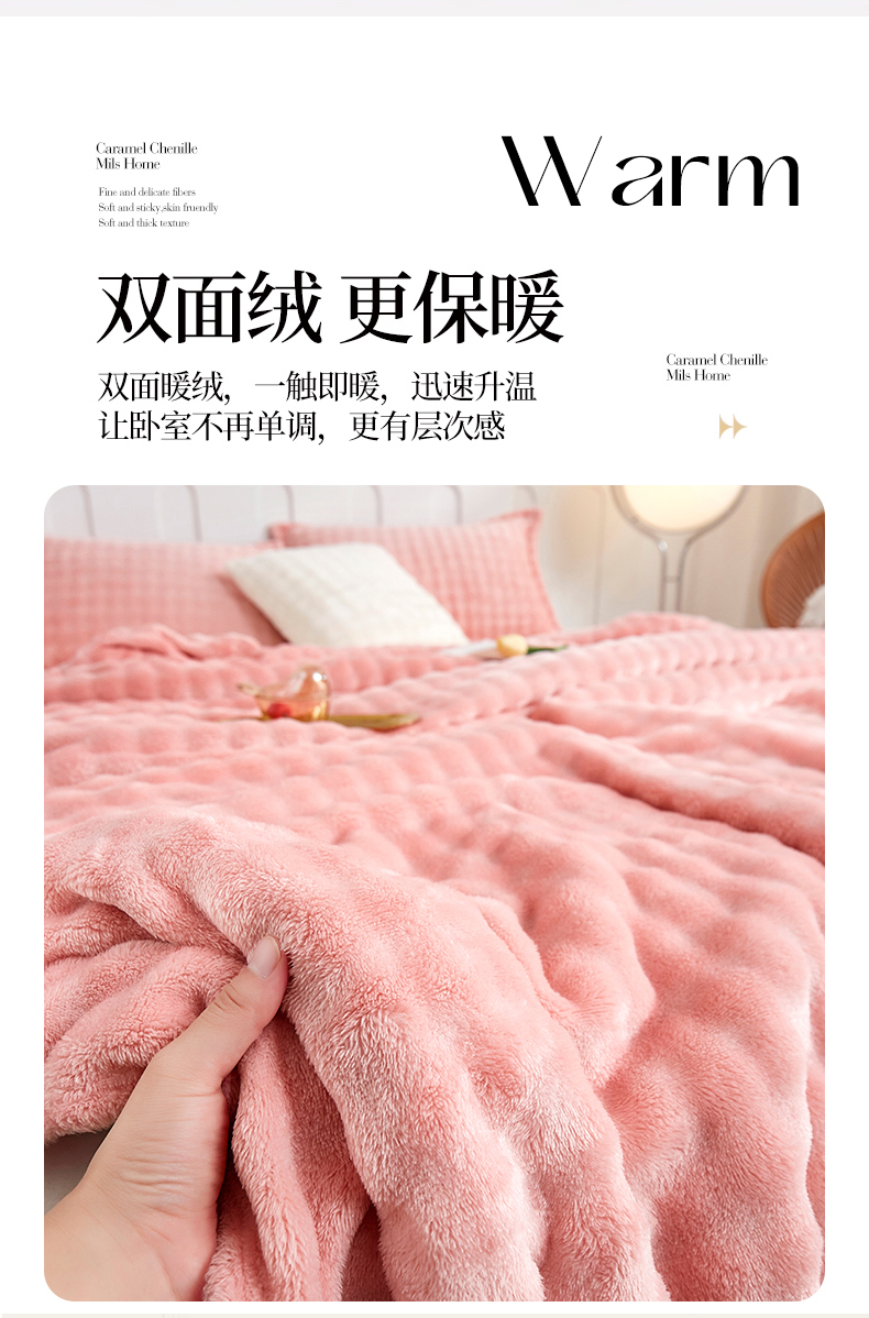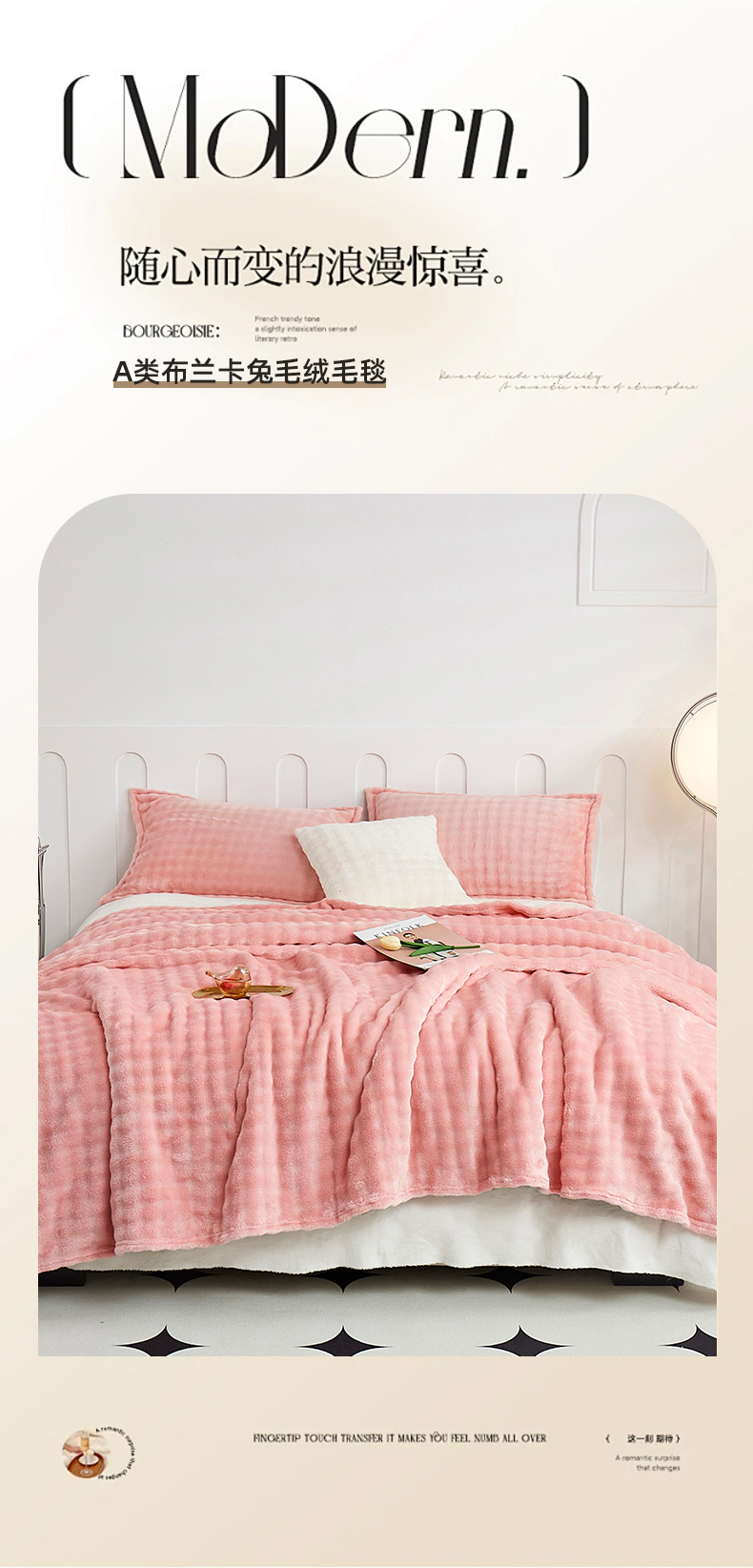 商品名称:肖恩毯业 2025新款小泡泡兔毛毯--布兰卡系列 布兰卡-樱花粉