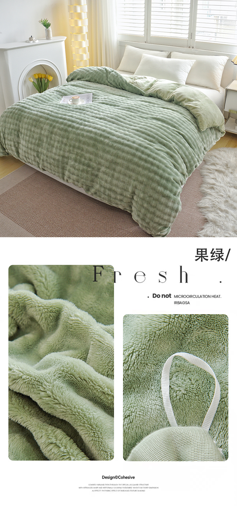 商品名称:启优家纺 2024新款简约兔兔绒活性印染单被套 果绿