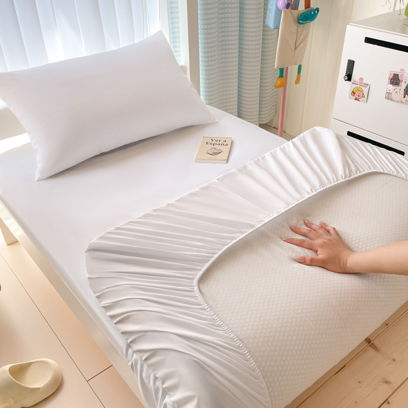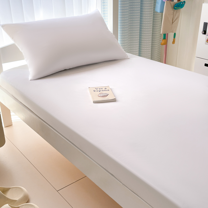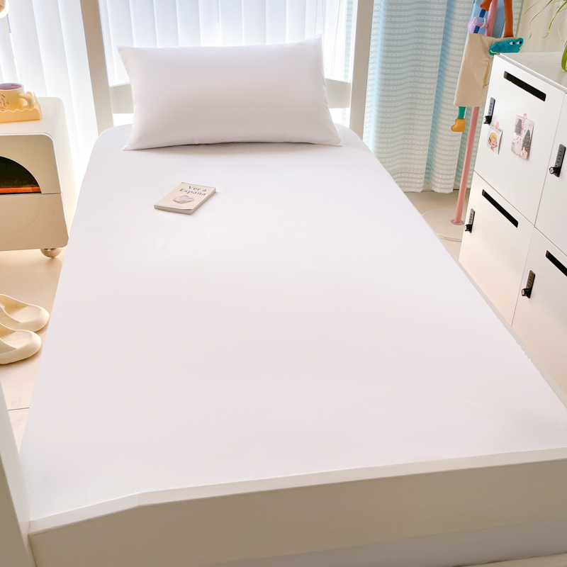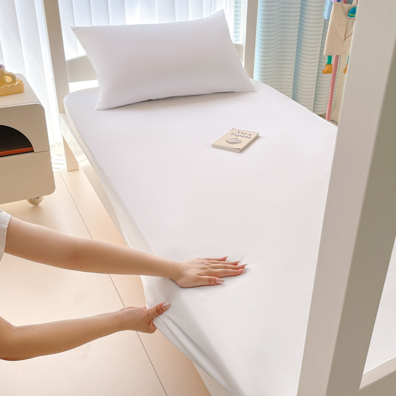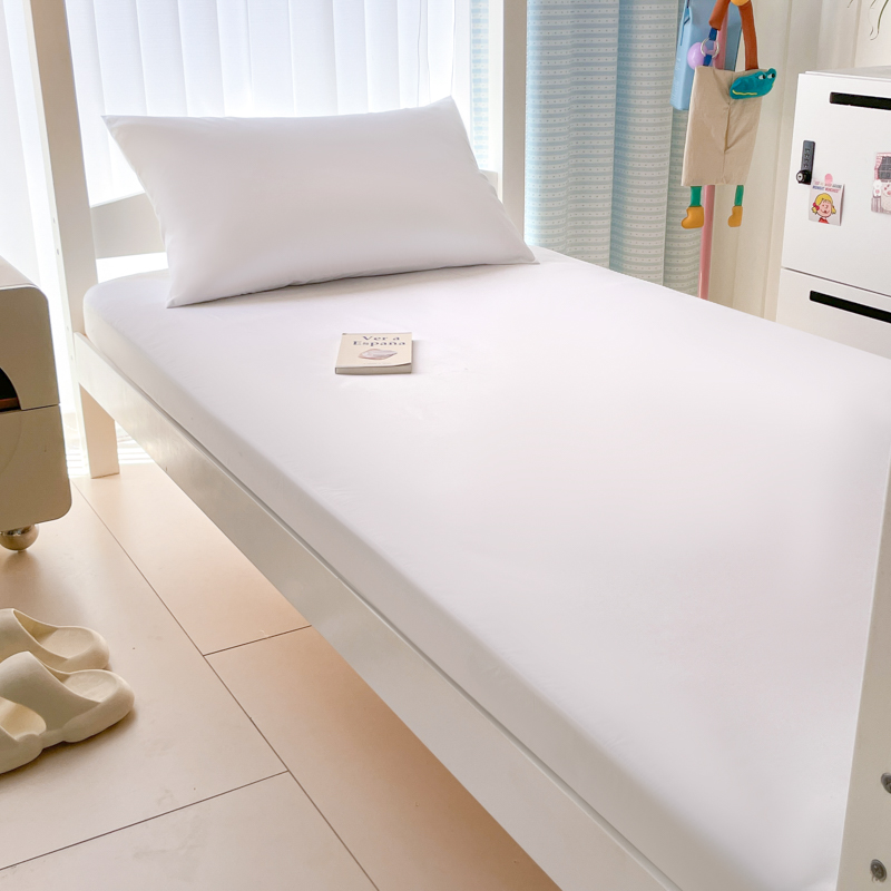 商品名称:老帅的工厂店 2025新款亲肤磨毛防水纯色学生床笠-小床图 白色