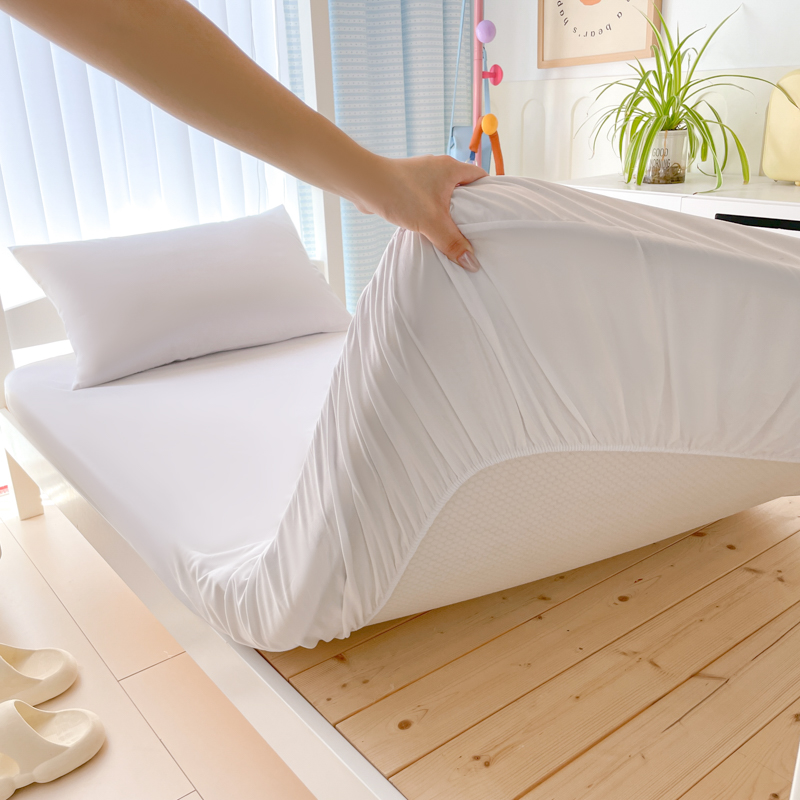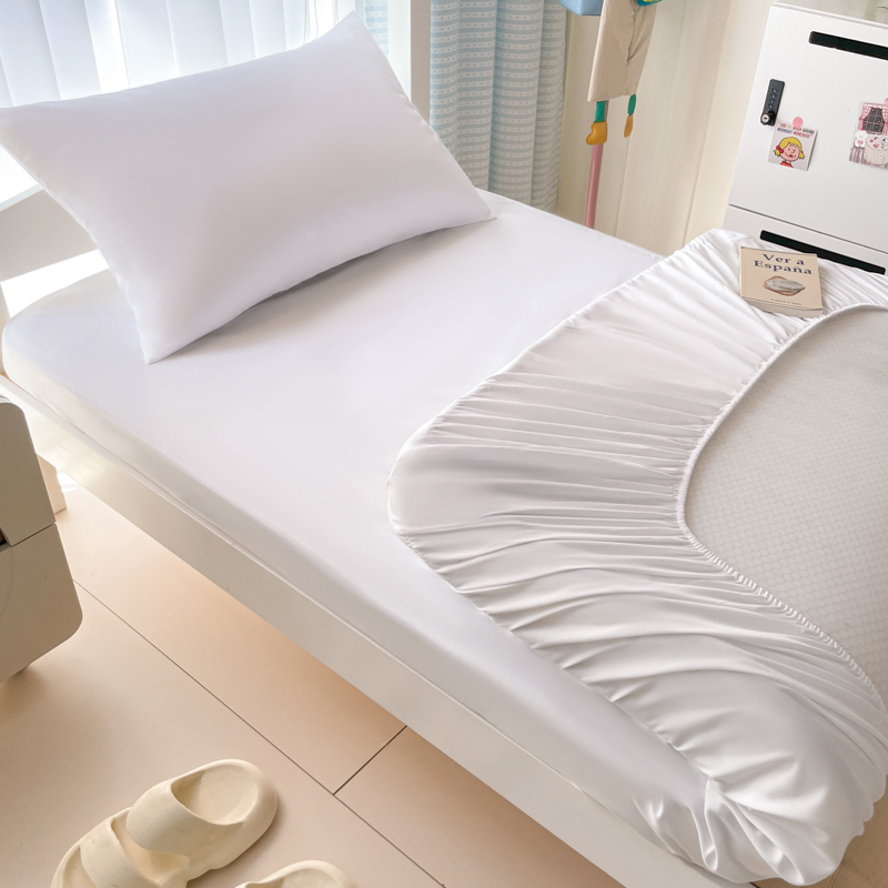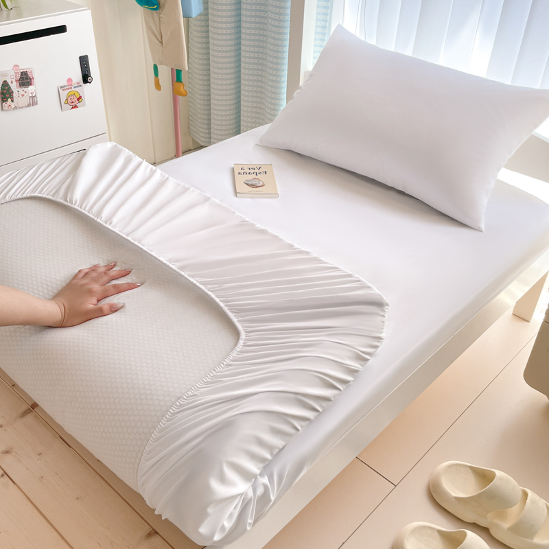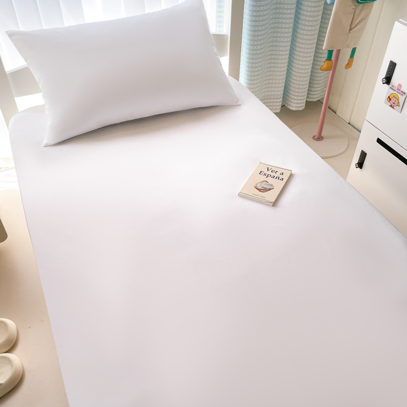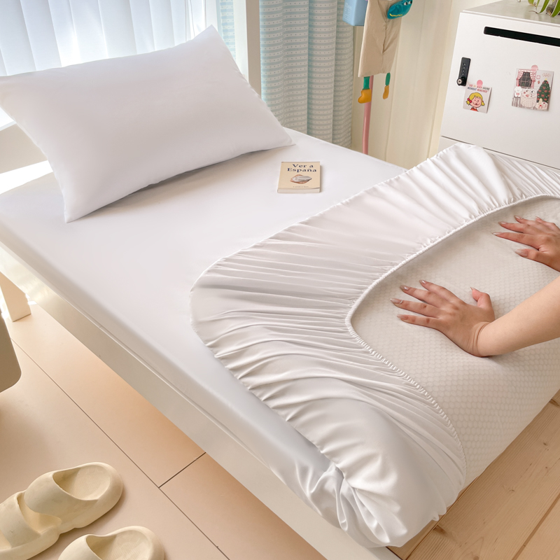 商品名称:老帅的工厂店 2025新款亲肤磨毛防水纯色学生床笠-小床图 白色