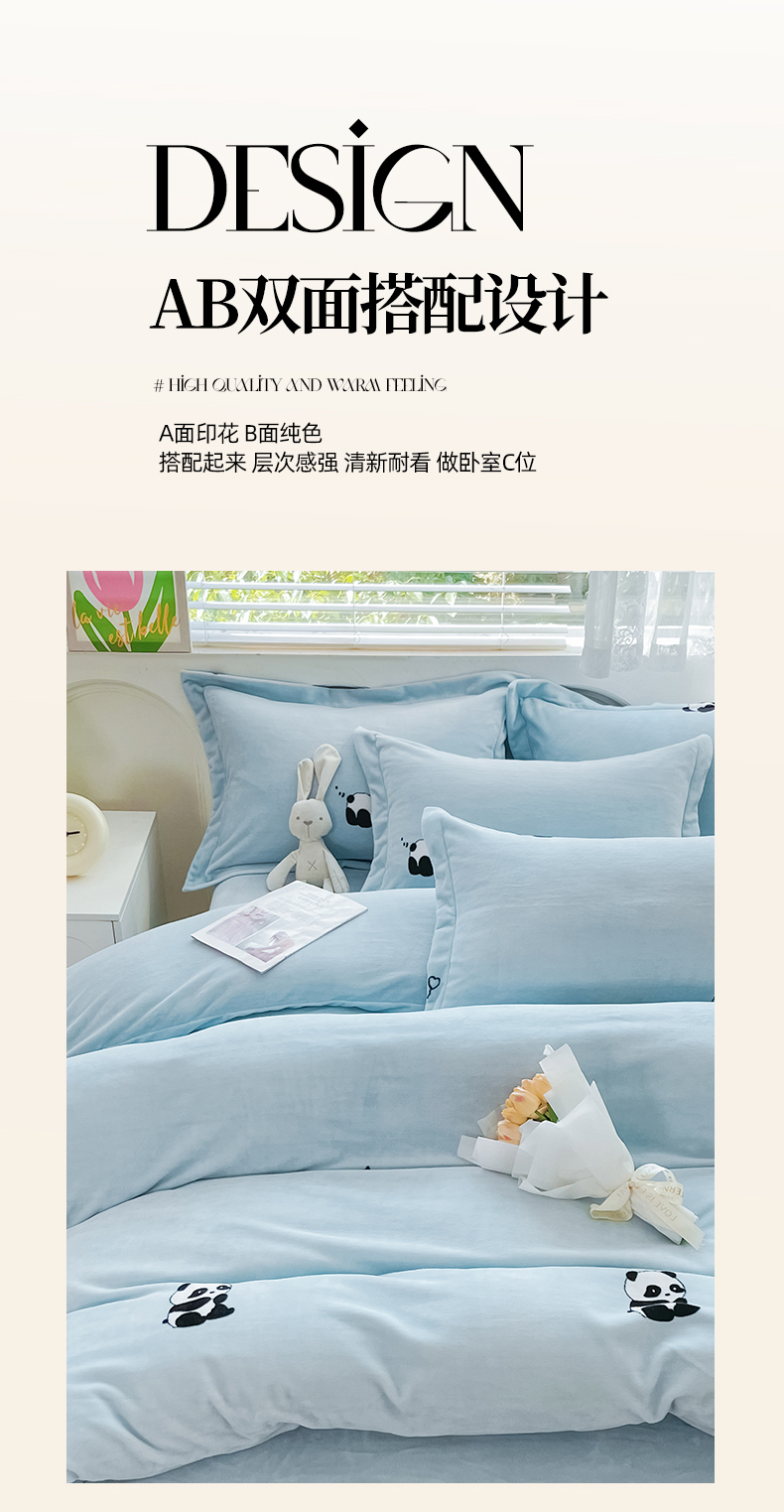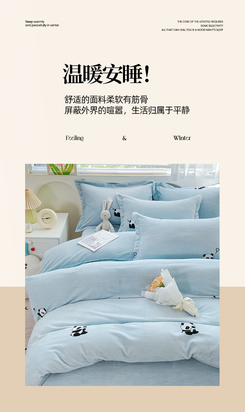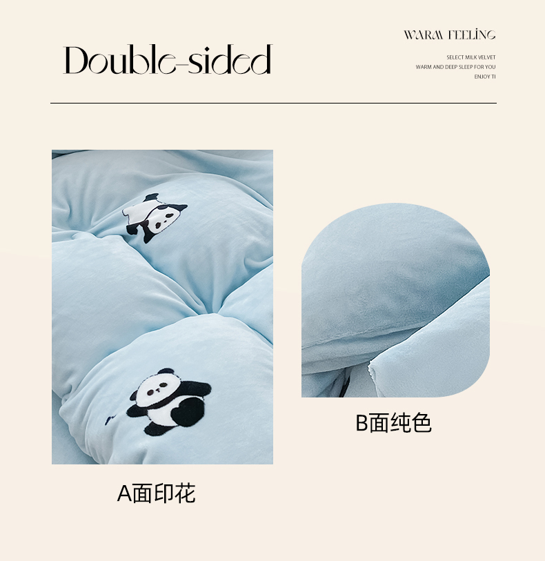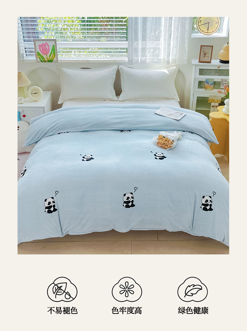 • 91家纺网 家纺一手货源 找家纺 锦罗绣 2024新款A类高克重牛奶绒印花单被套 熊猫崽崽