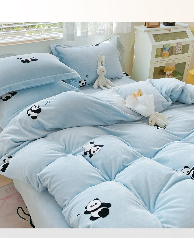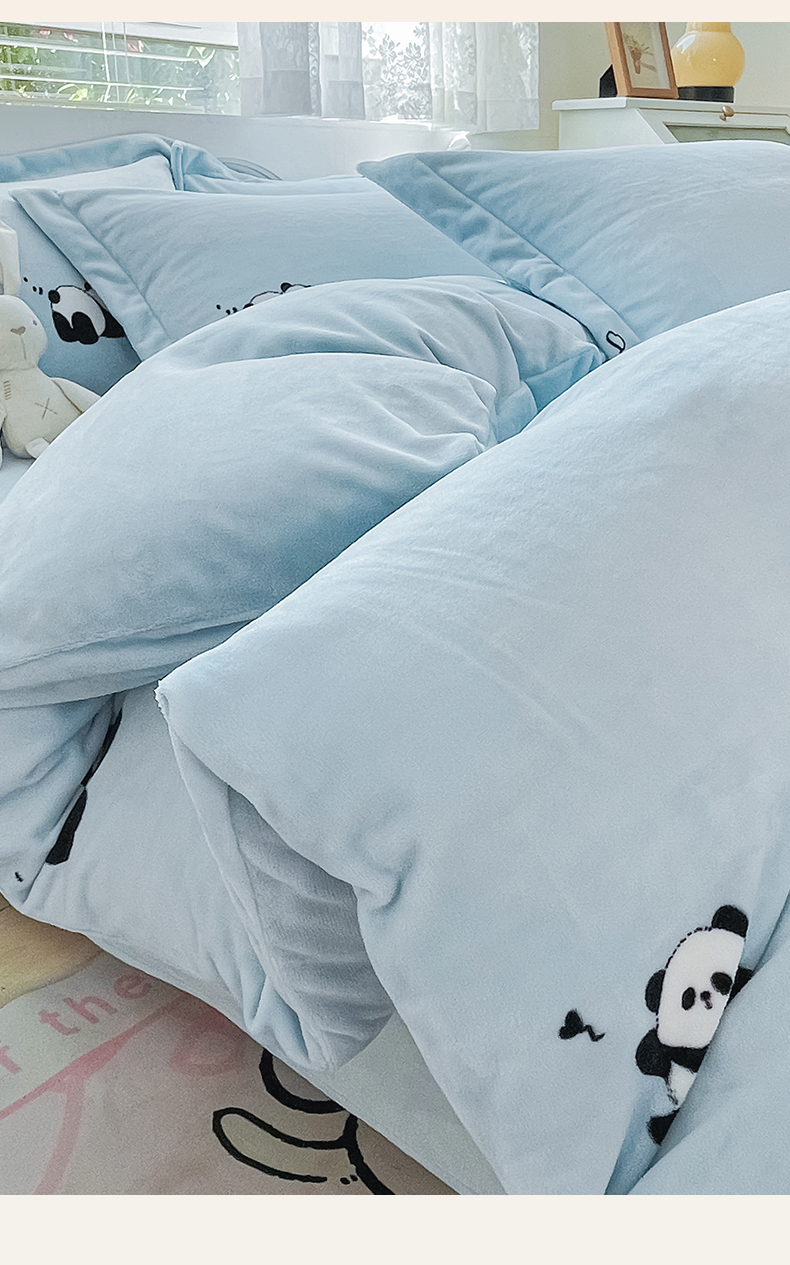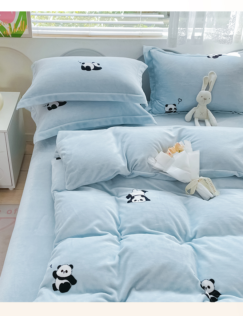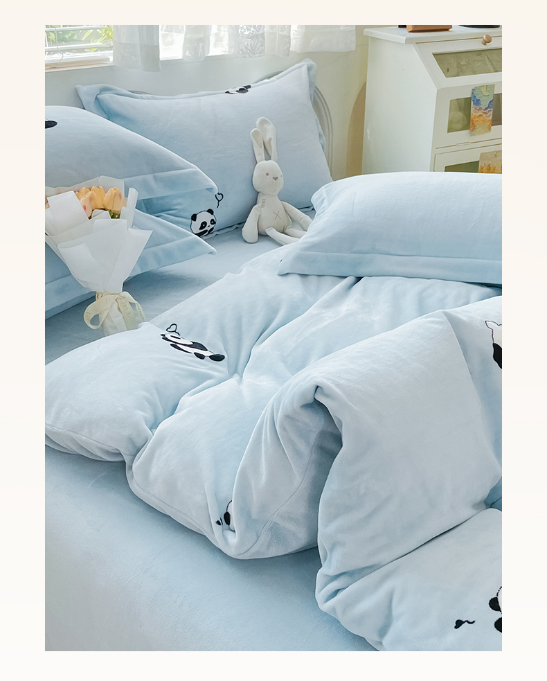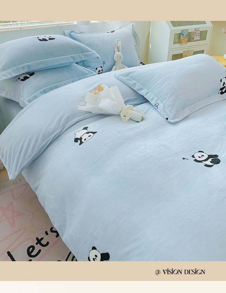 • 91家纺网 家纺一手货源 找家纺 锦罗绣 2024新款A类高克重牛奶绒印花单被套 熊猫崽崽