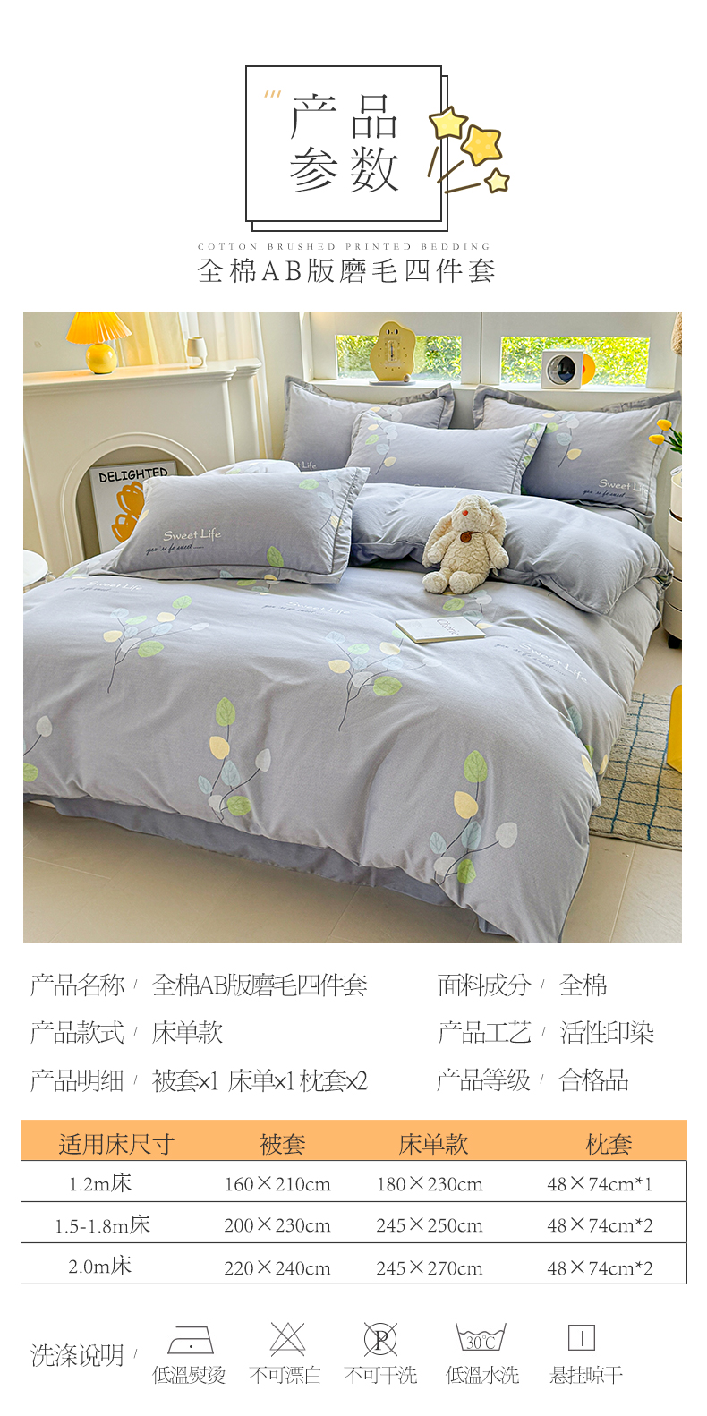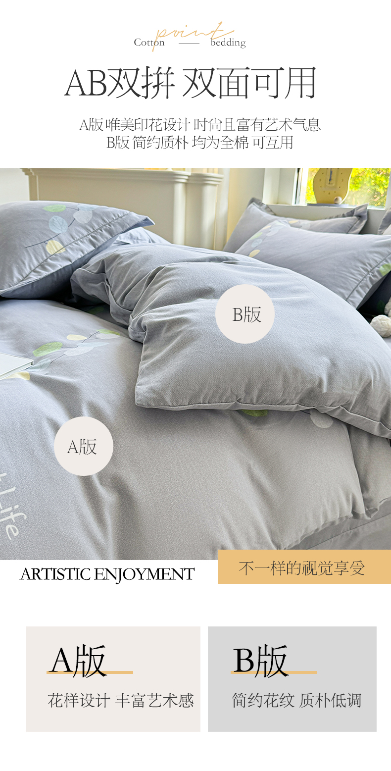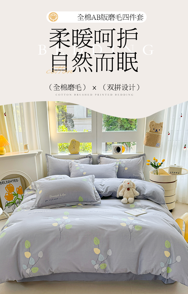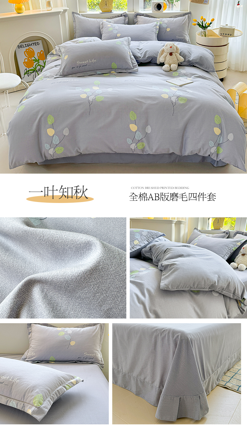 当前位置: 91家纺网 > 商品网购 > 床品套件 > 四件套 > 普通磨毛四件套 > 韩后家纺 2025新款全棉AB版磨毛印花四件套 一叶知秋