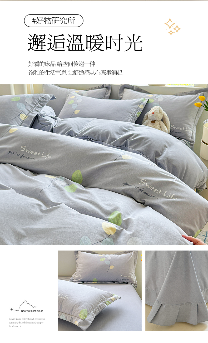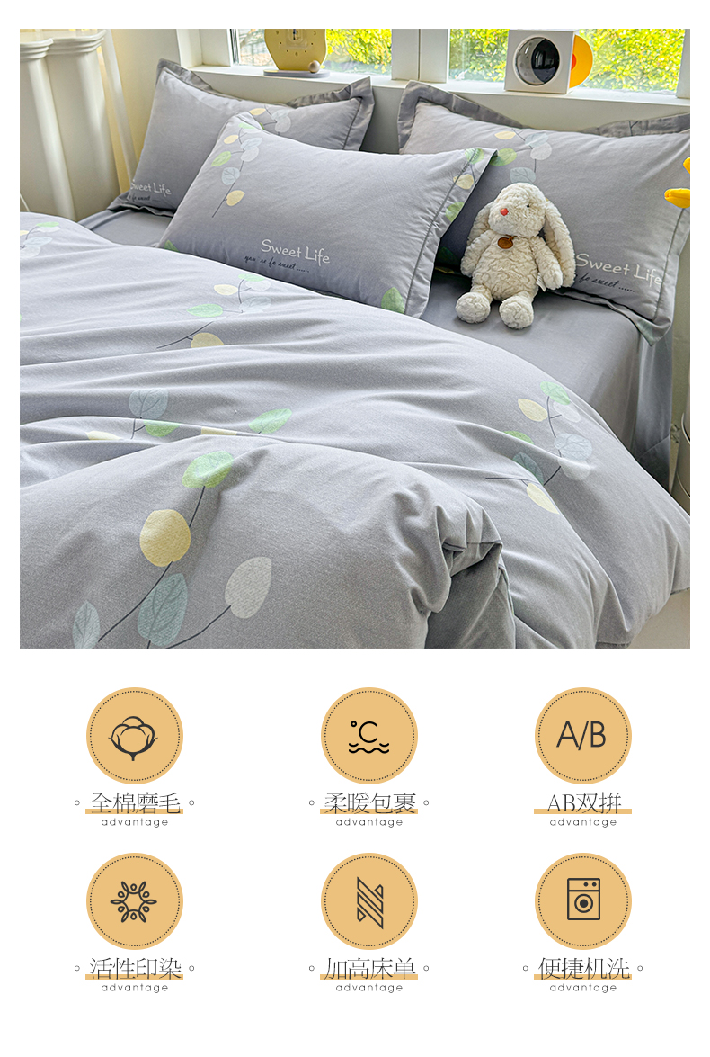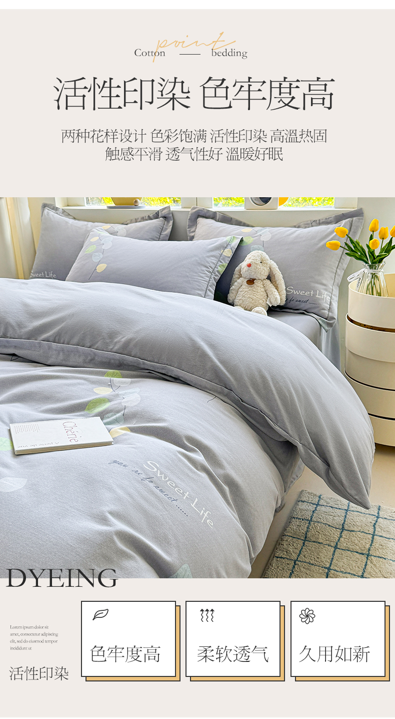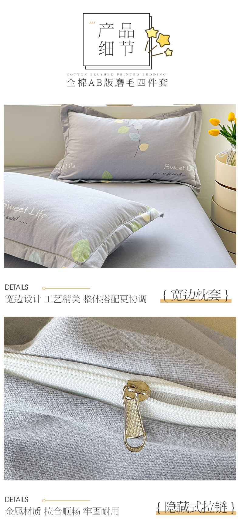 当前位置: 91家纺网 > 商品网购 > 床品套件 > 四件套 > 普通磨毛四件套 > 韩后家纺 2025新款全棉AB版磨毛印花四件套 一叶知秋