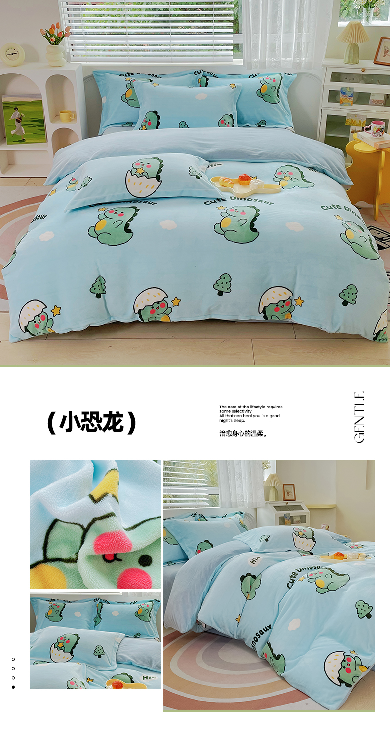 当前位置: 91家纺网 > 商品网购 > 床品套件 > 四件套 > 牛奶绒四件套 > 锦罗绣 2024新款A类高克重牛奶绒印花四件套 小恐龙
