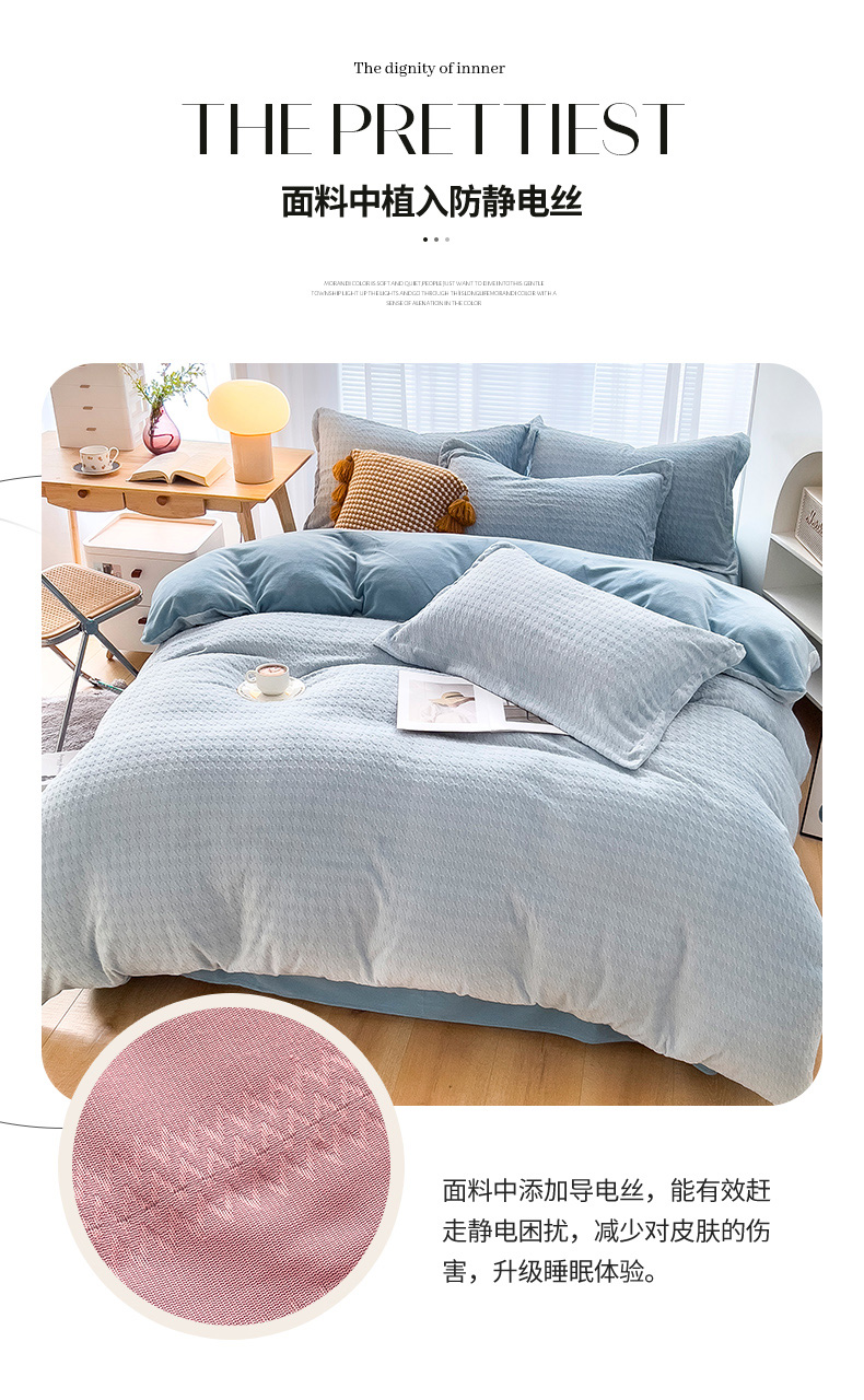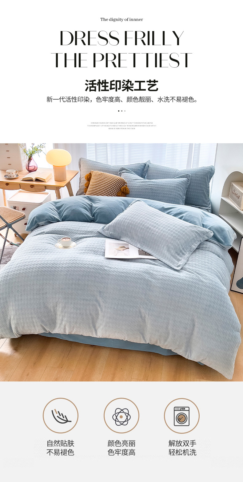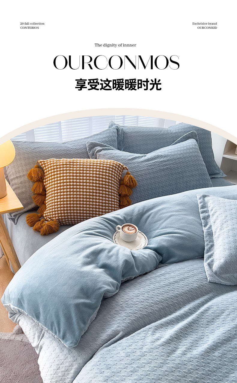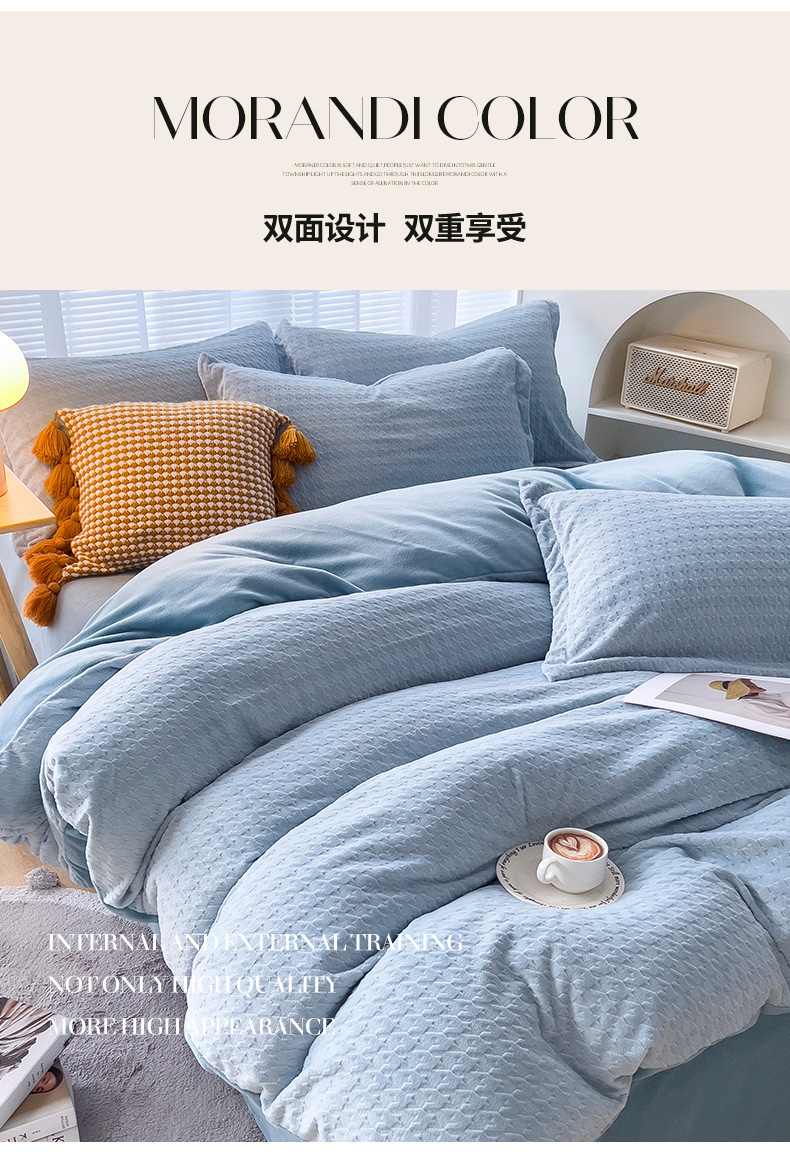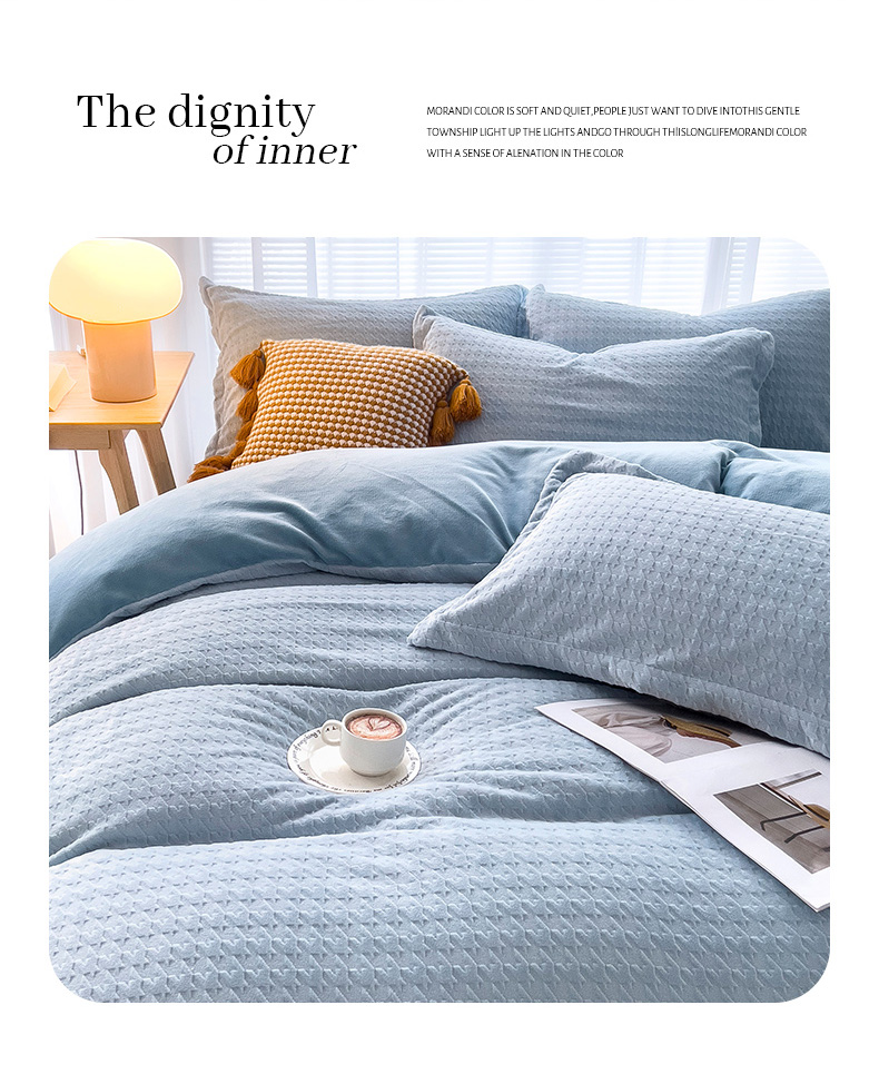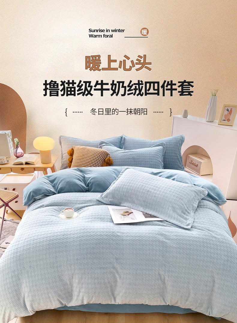 当前位置: 91家纺网 > 商品网购 > 床品套件 > 四件套 > 牛奶绒四件套 > 锦罗绣 2024新款全消光230克牛奶绒烂花绒提花四件套 千鸟格-水蓝