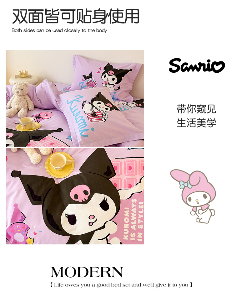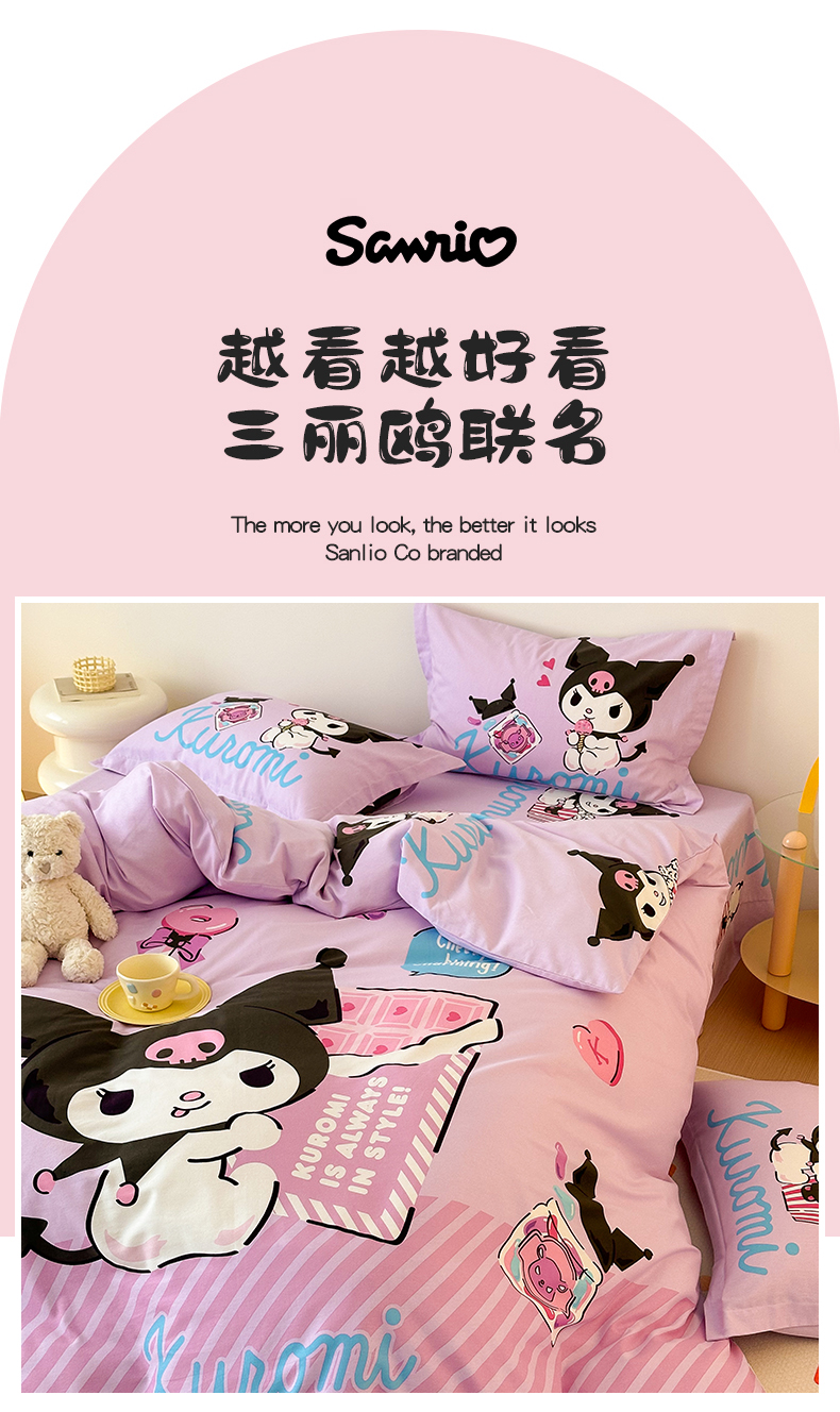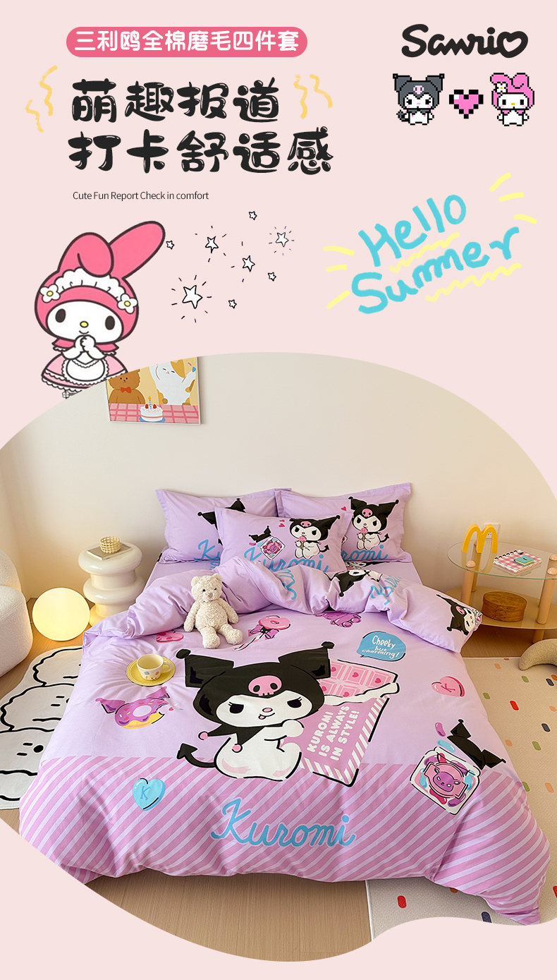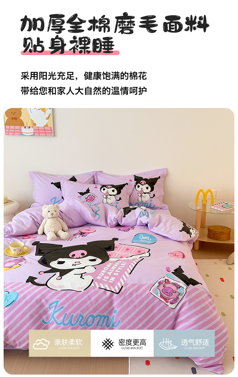 典曼家纺 2024秋冬新品三丽鸥磨毛大版卡通四件套 库洛米