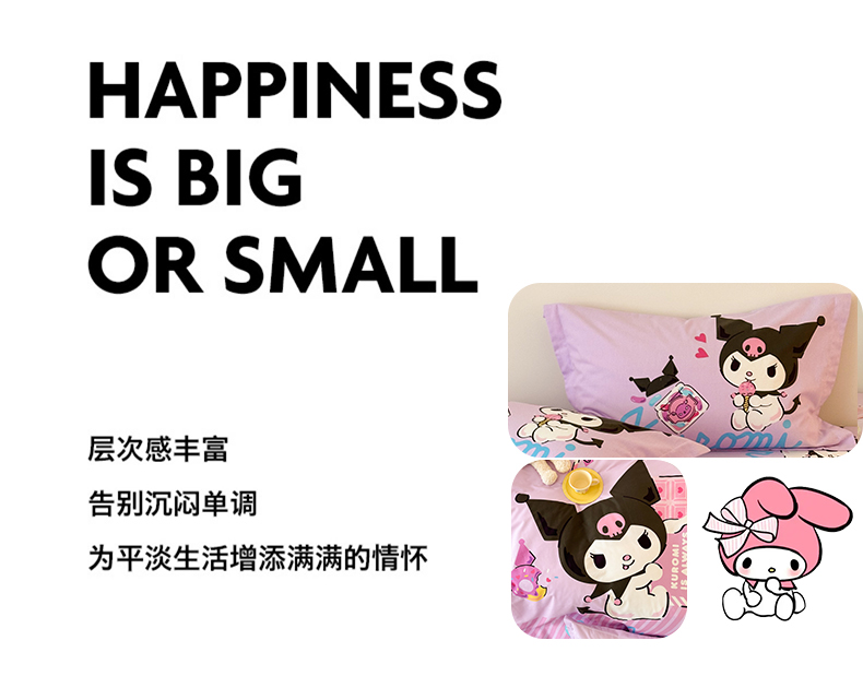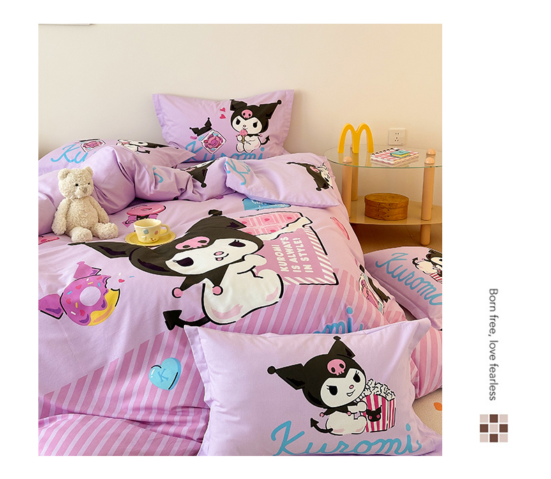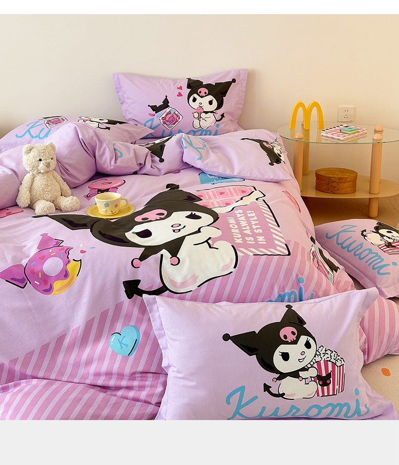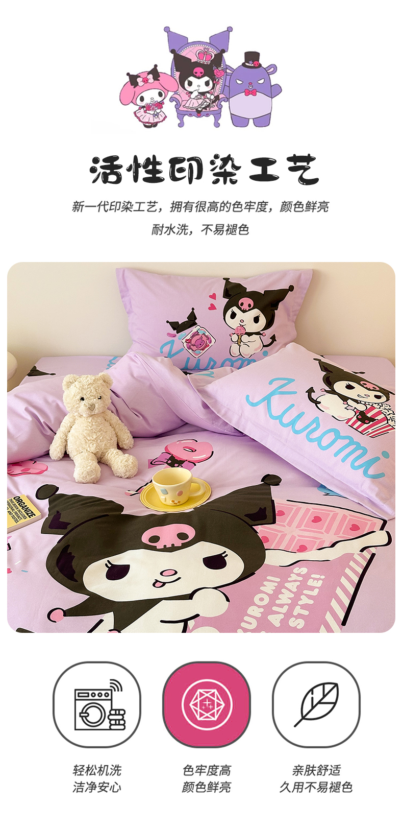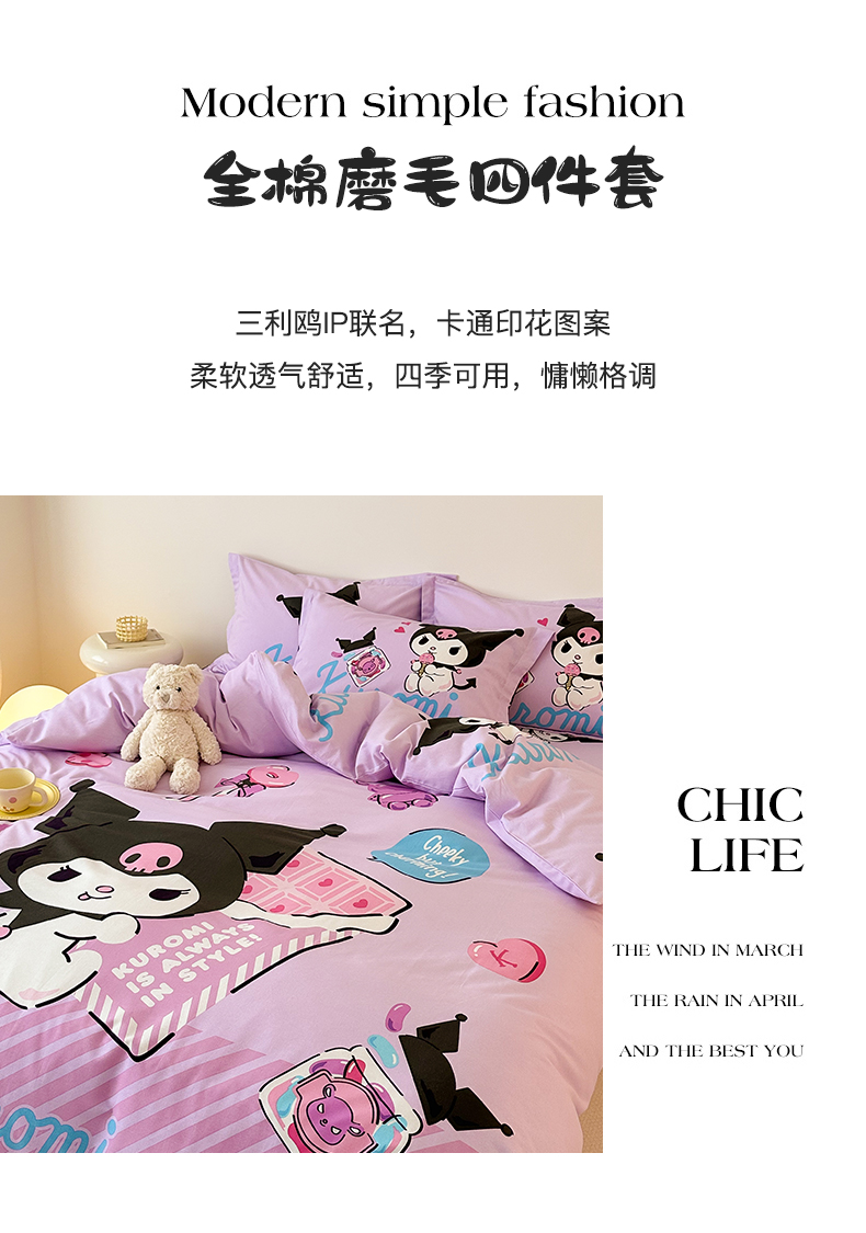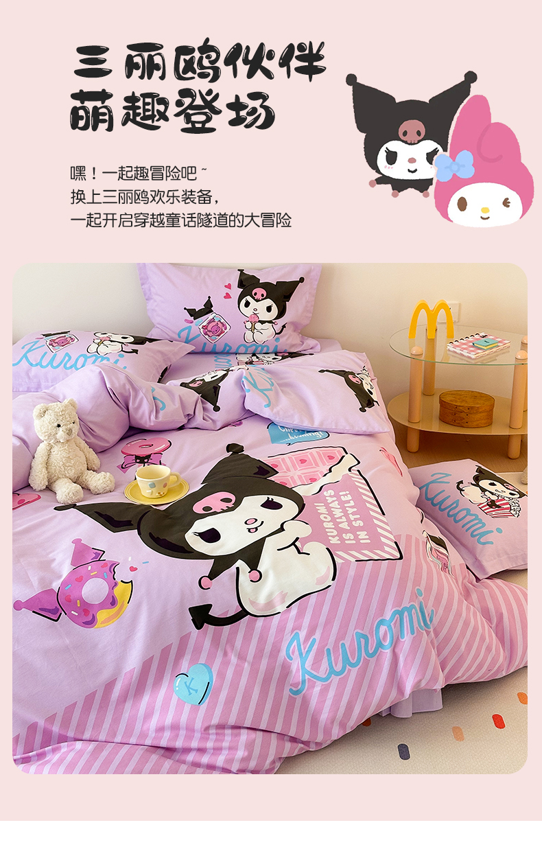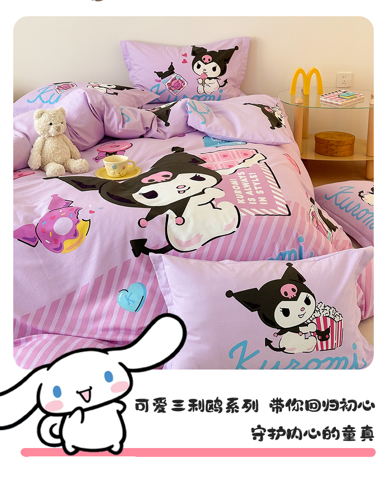 商品名称:典曼家纺 2024秋冬新品三丽鸥磨毛大版卡通四件套 库洛米