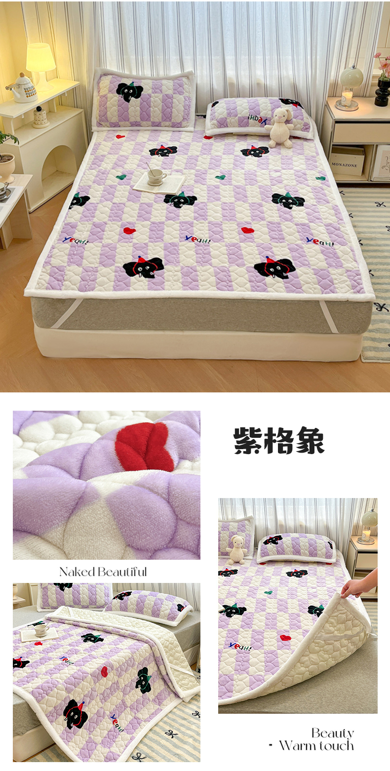 当前位置: 91家纺网 > 商品网购 > 床垫/床褥 > 普通床垫 > 启程家纺 2024新款A类印花牛奶绒床垫加厚绒保暖床护垫 紫格象