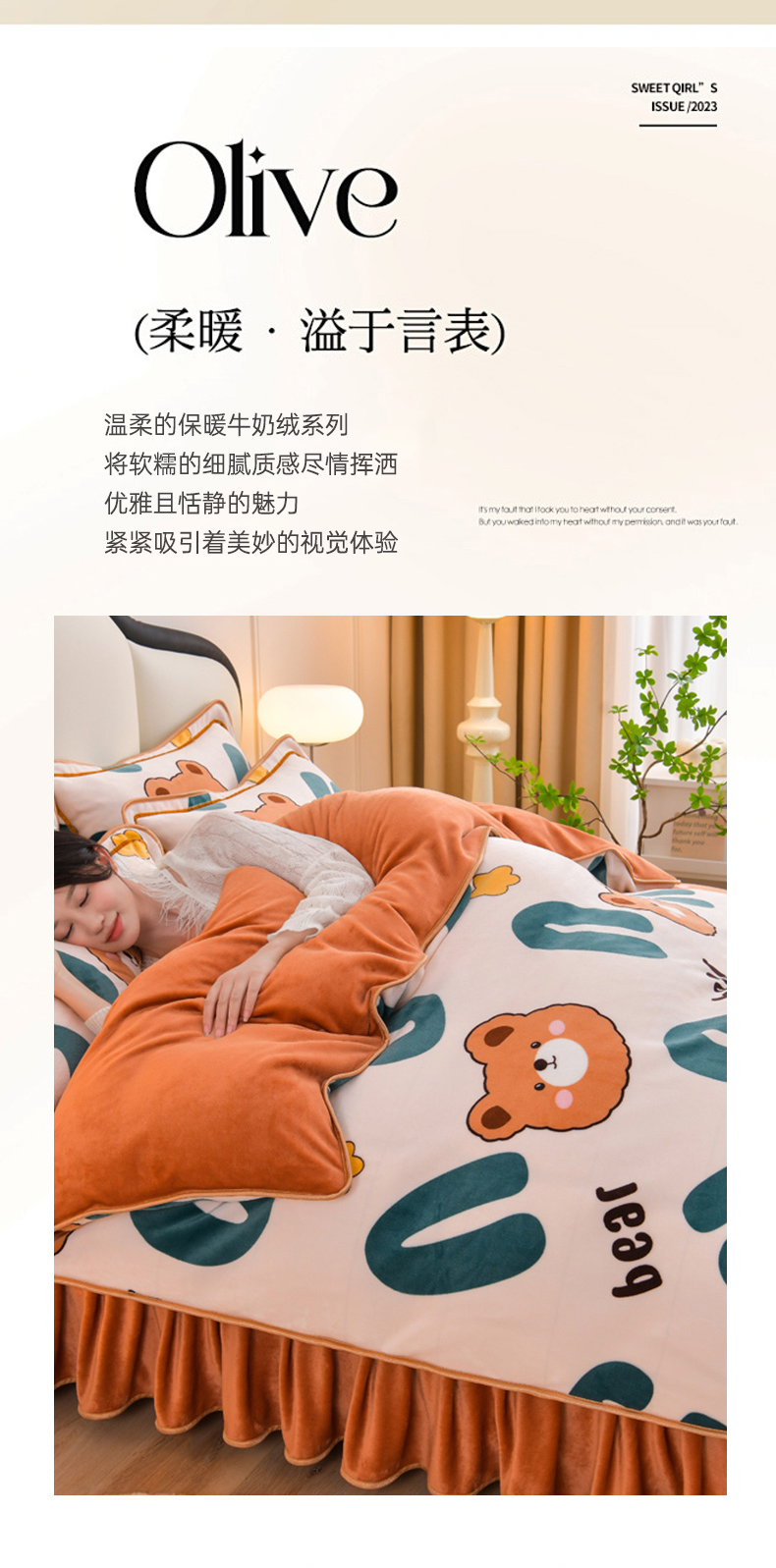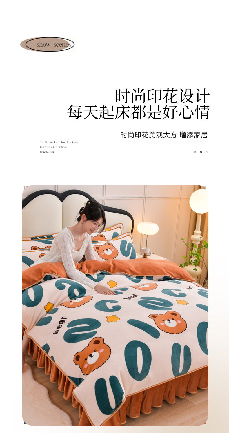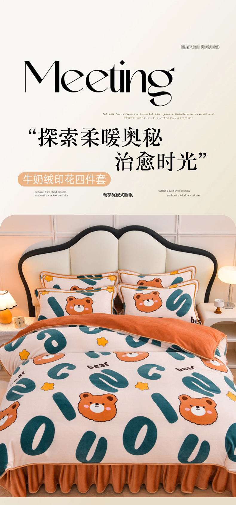 绒耀 2025新款高克重牛奶绒四件套保暖四件套直播爆款电商爆款 字母熊