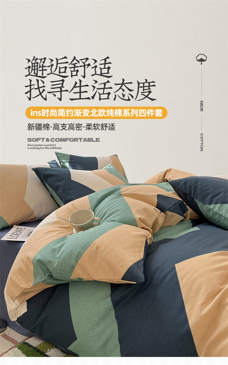 商品名称:2024新款ins时尚简约渐变北欧全棉系列四件套 棉-波尔多