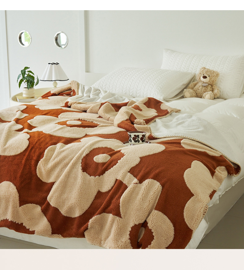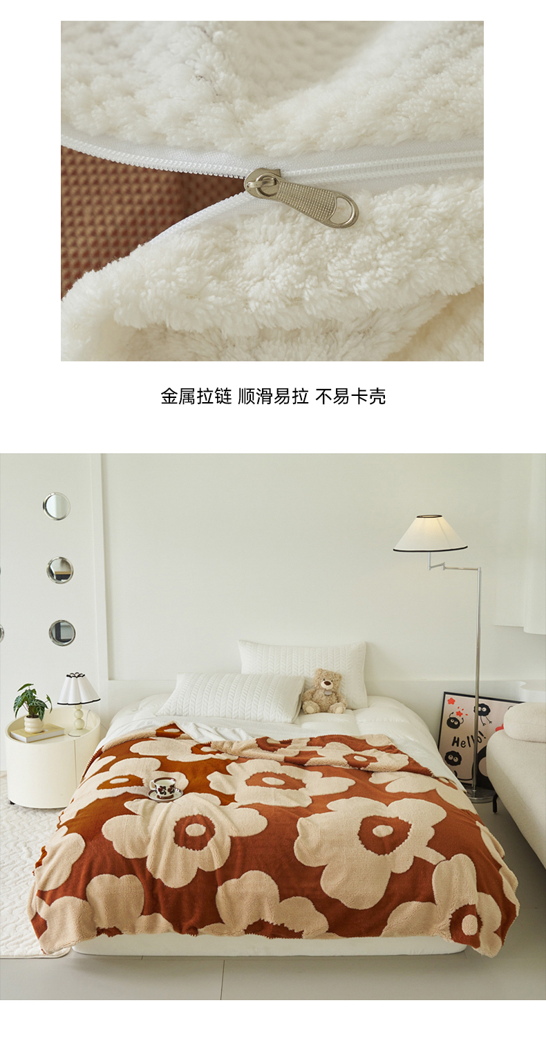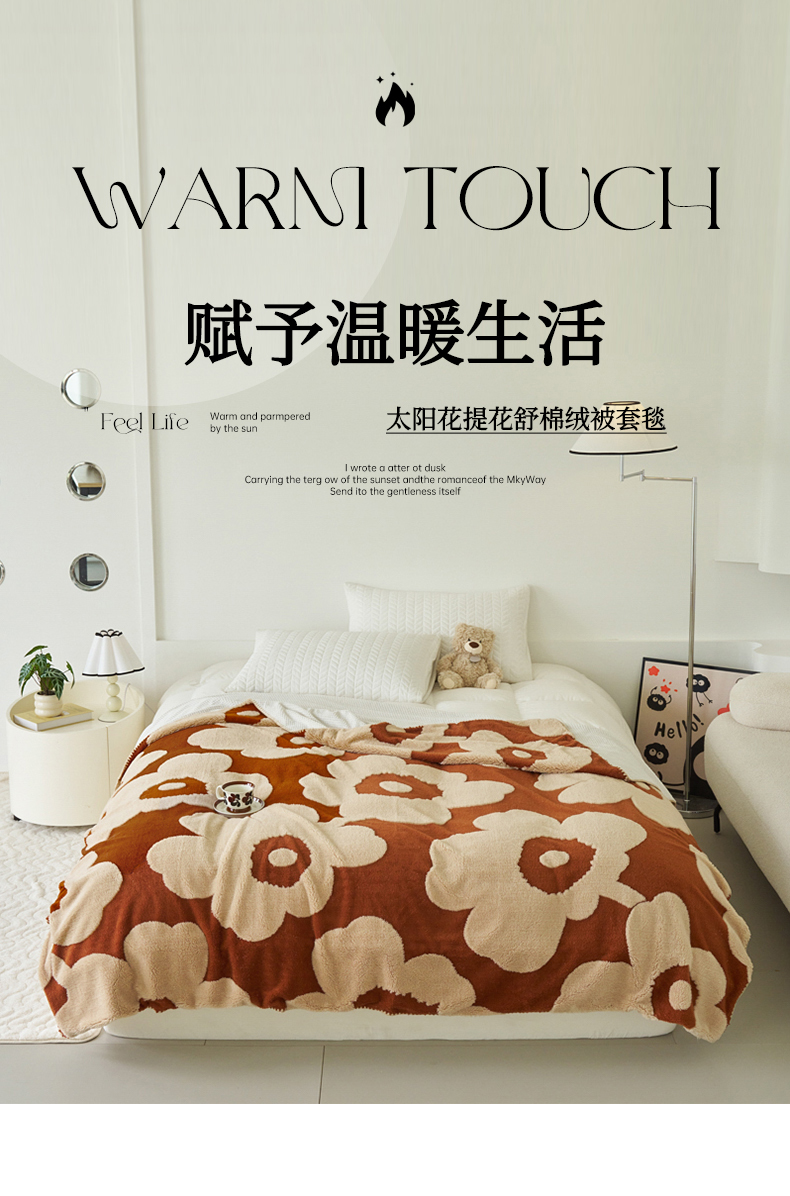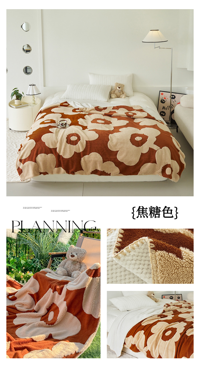 商品名称:恋佳居 2025新款太阳花舒棉绒被套毯 焦糖色