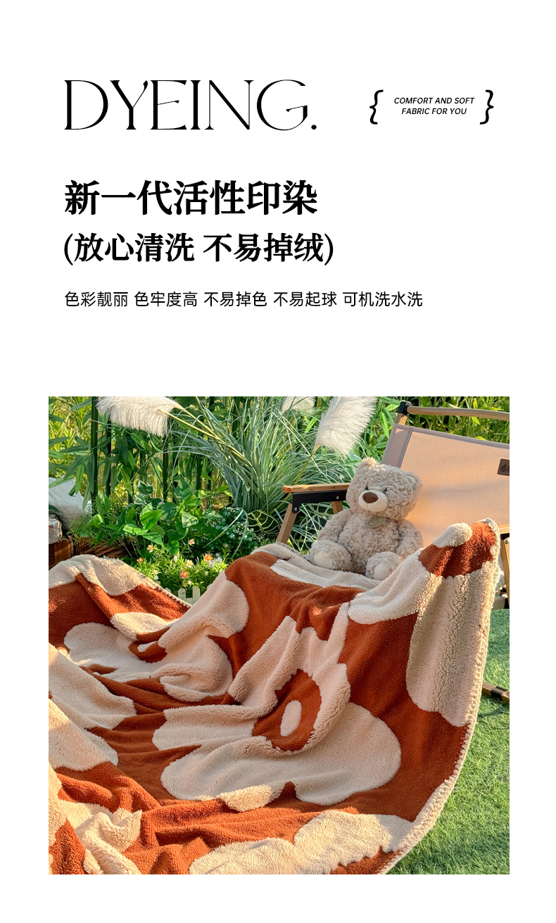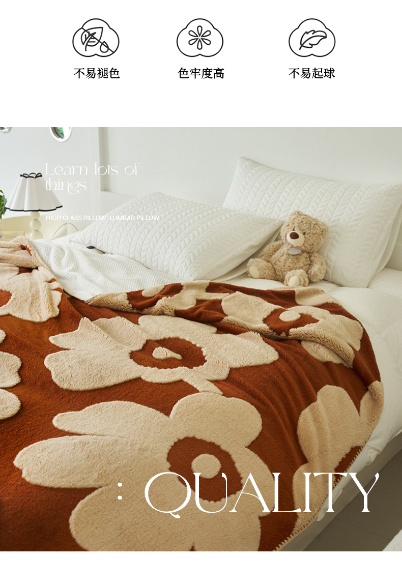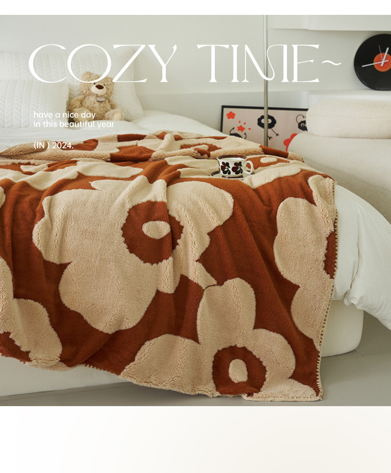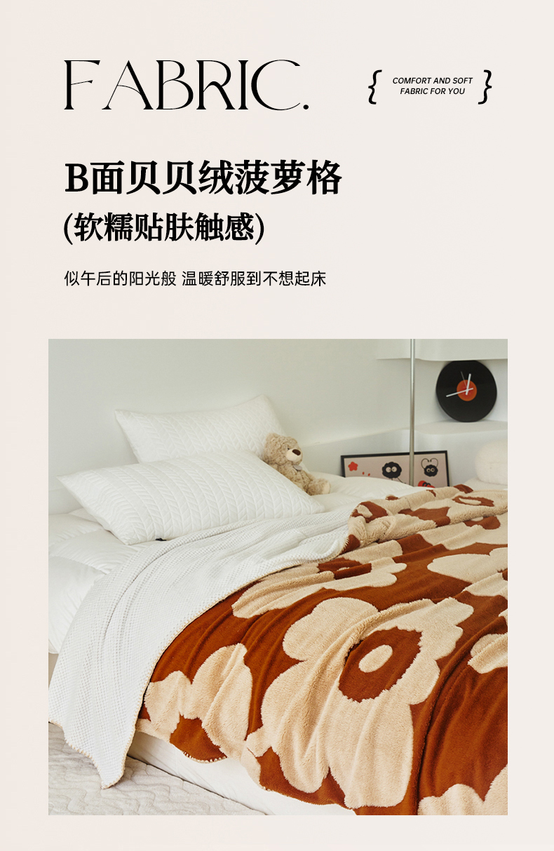 商品名称:恋佳居 2025新款太阳花舒棉绒被套毯 焦糖色